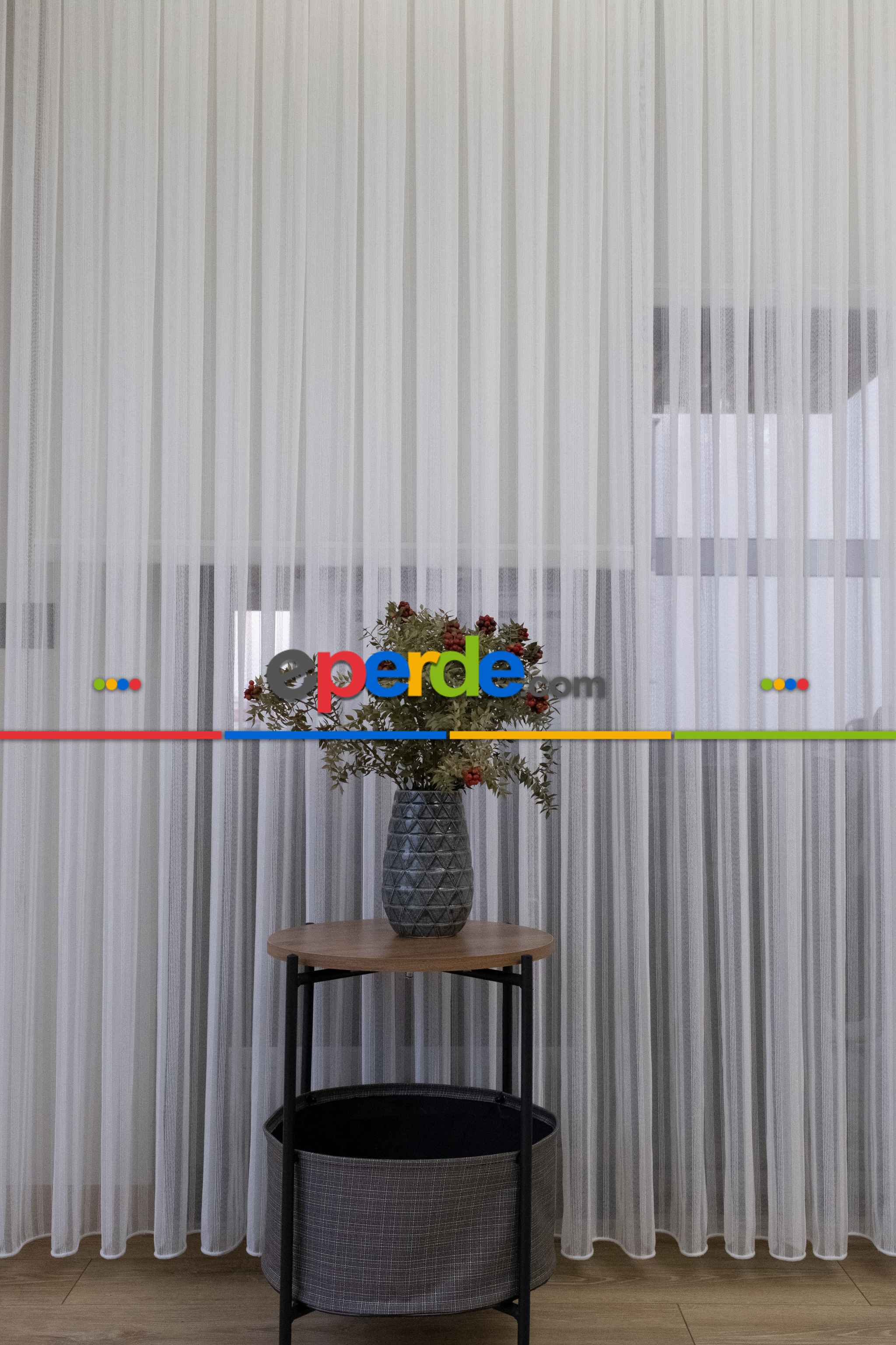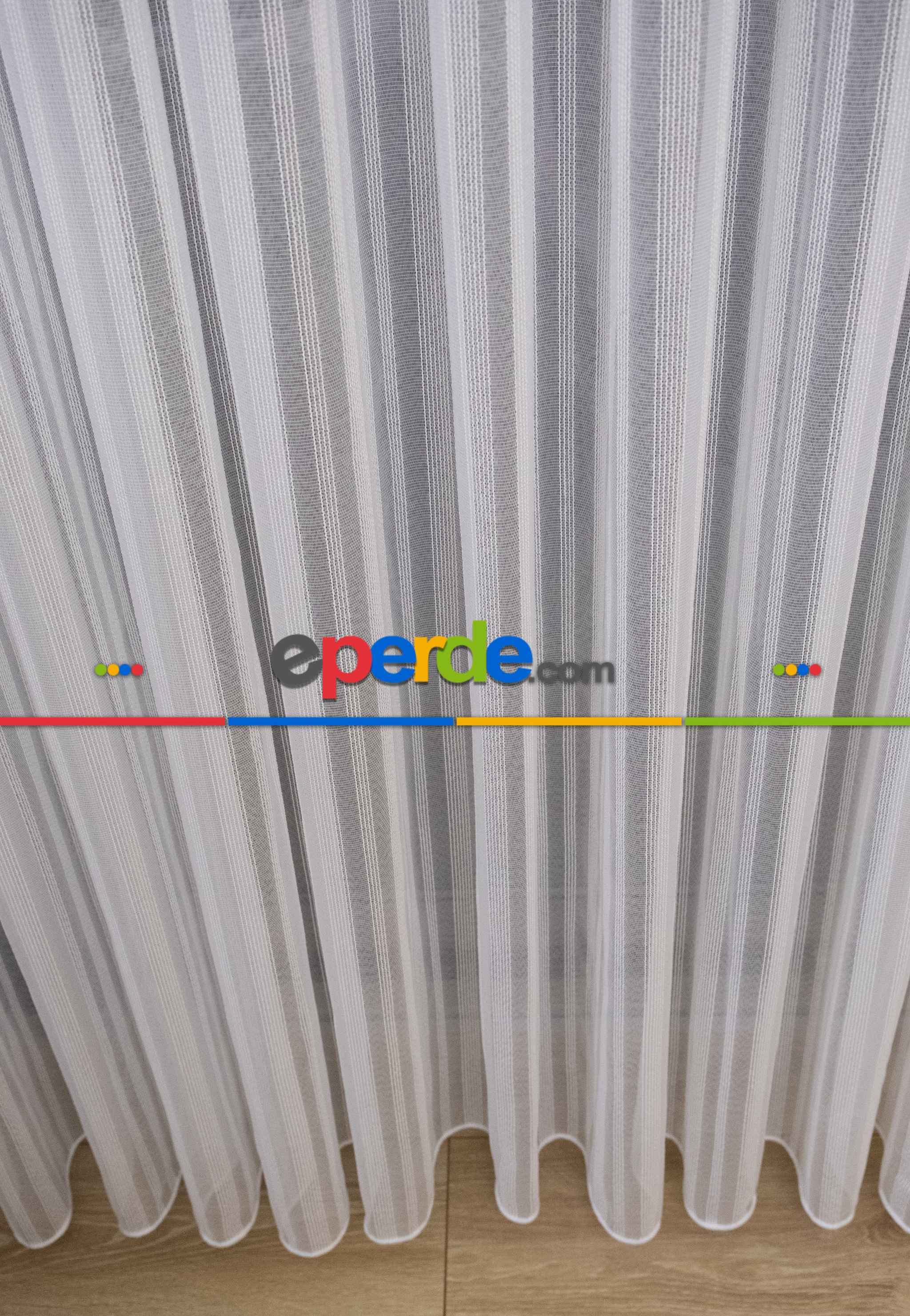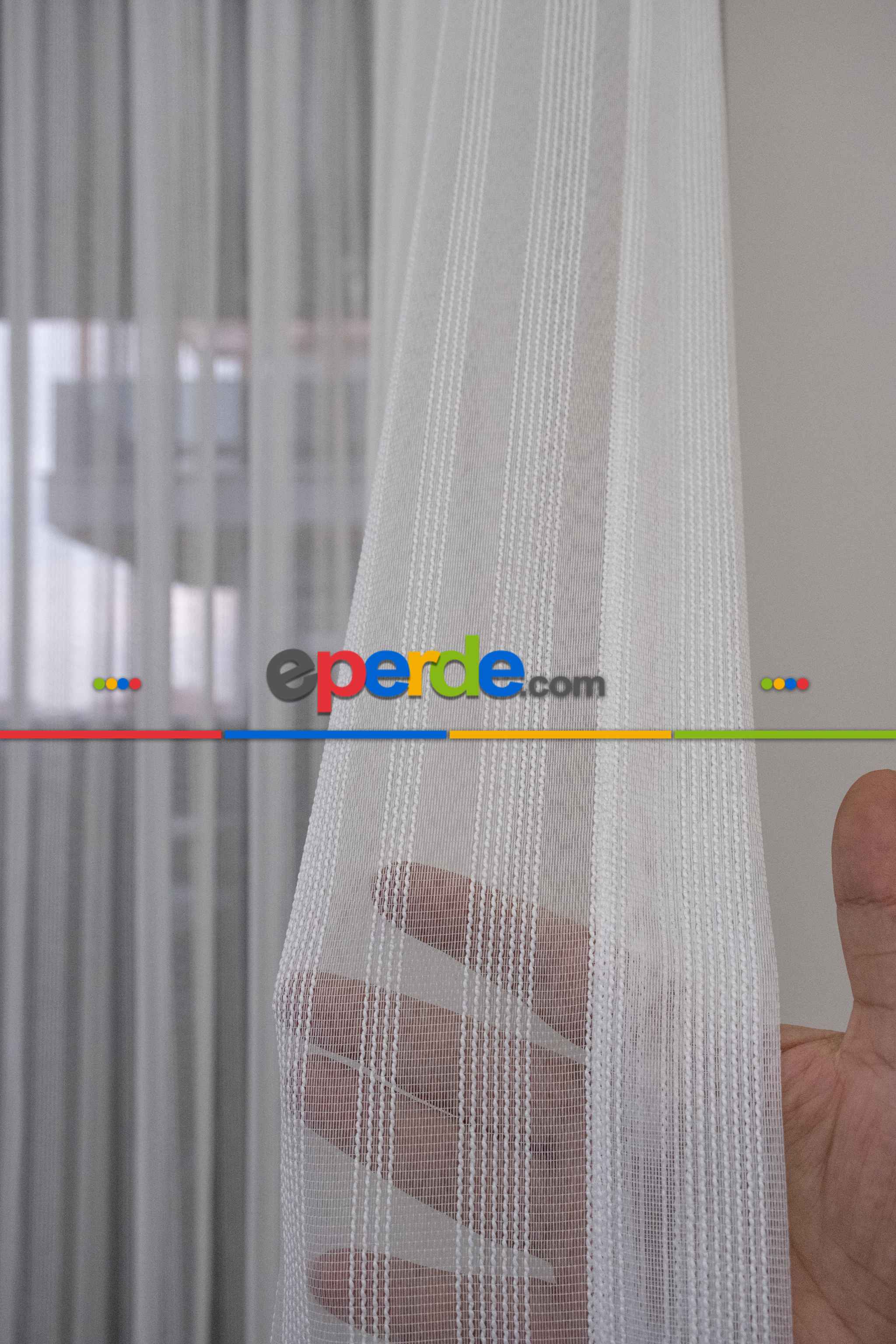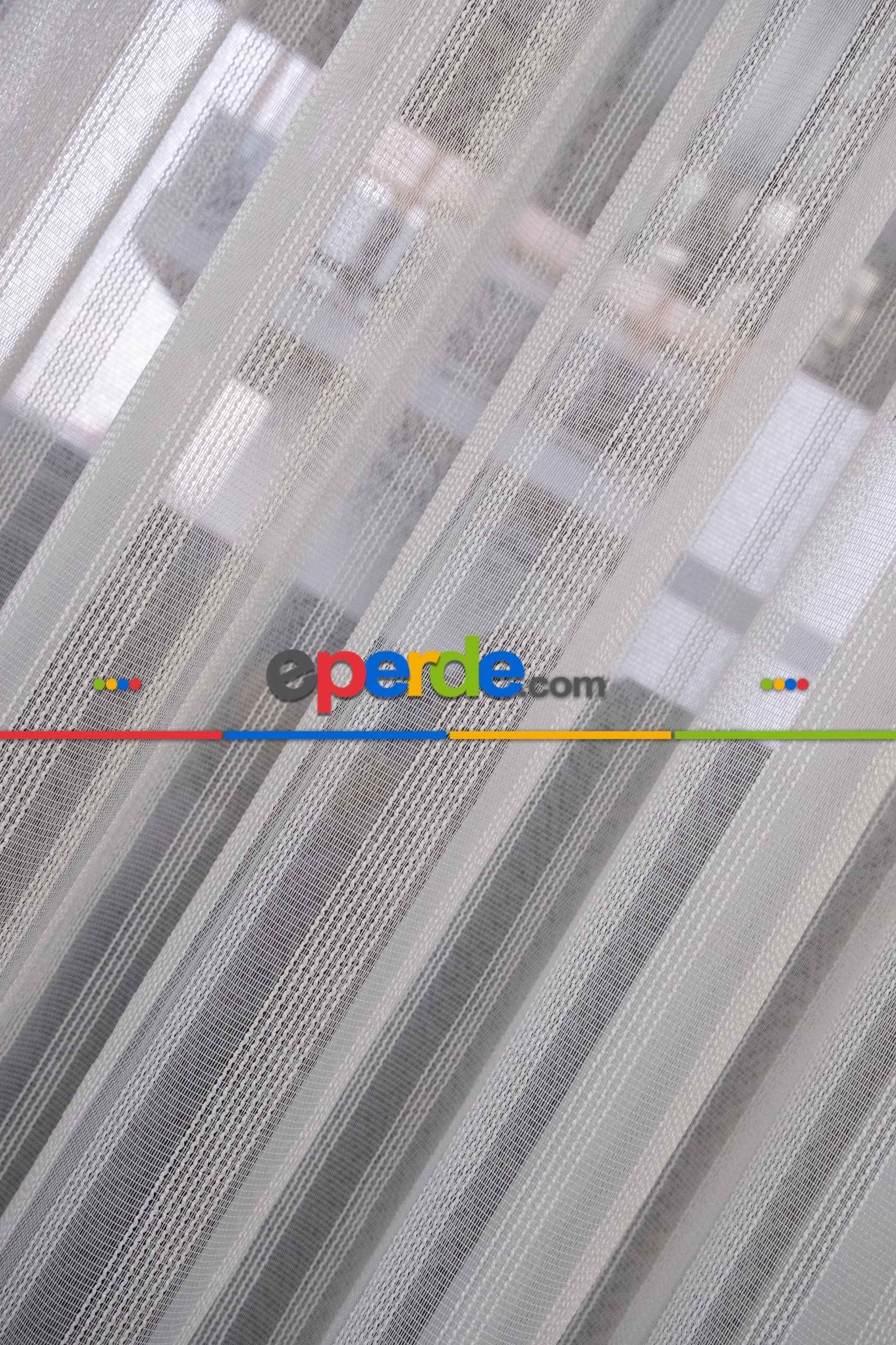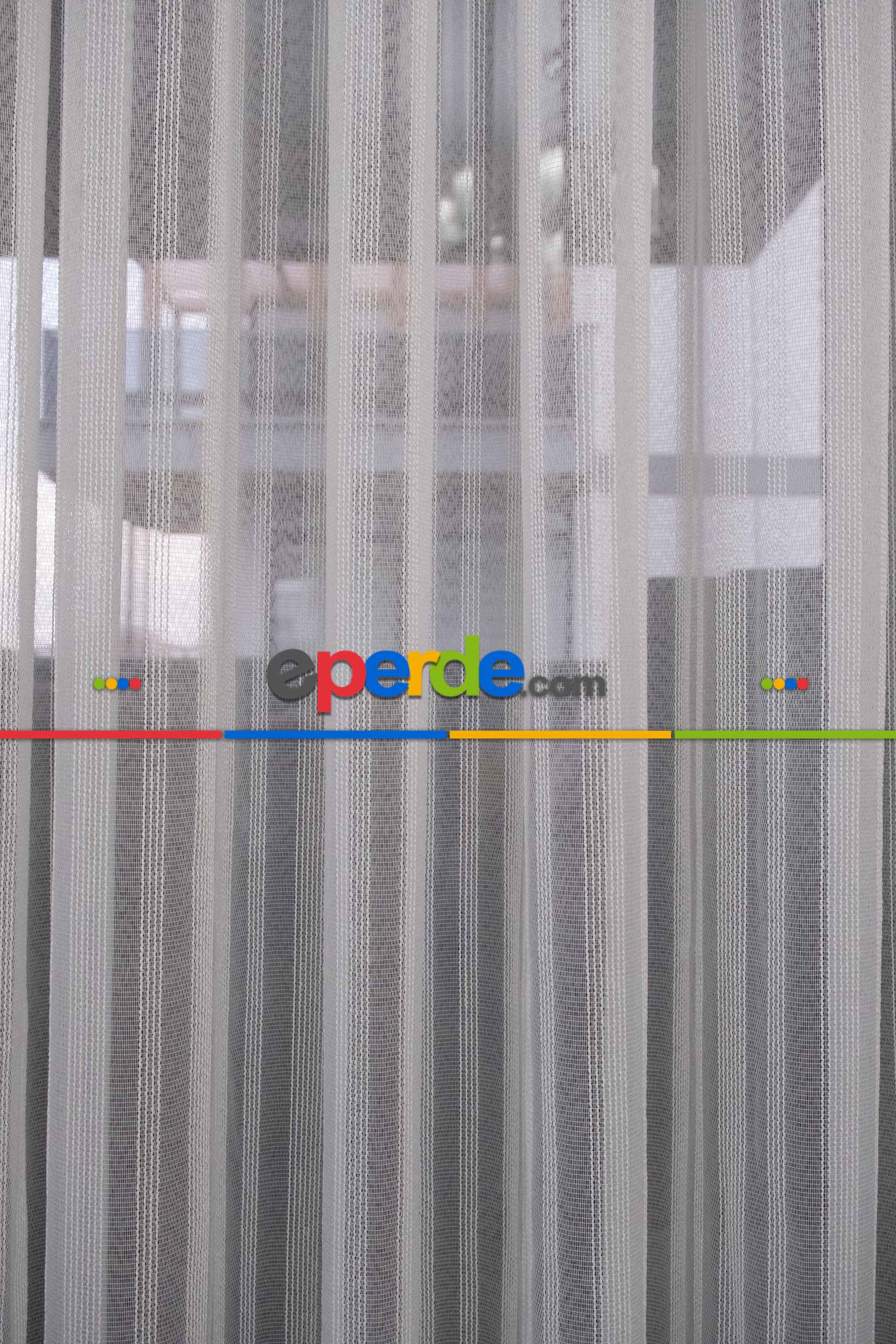 % 50 İndirimli Hazır Ölçü Düz Çizgili Tül - Ütü İstemez 761 H » Eperde