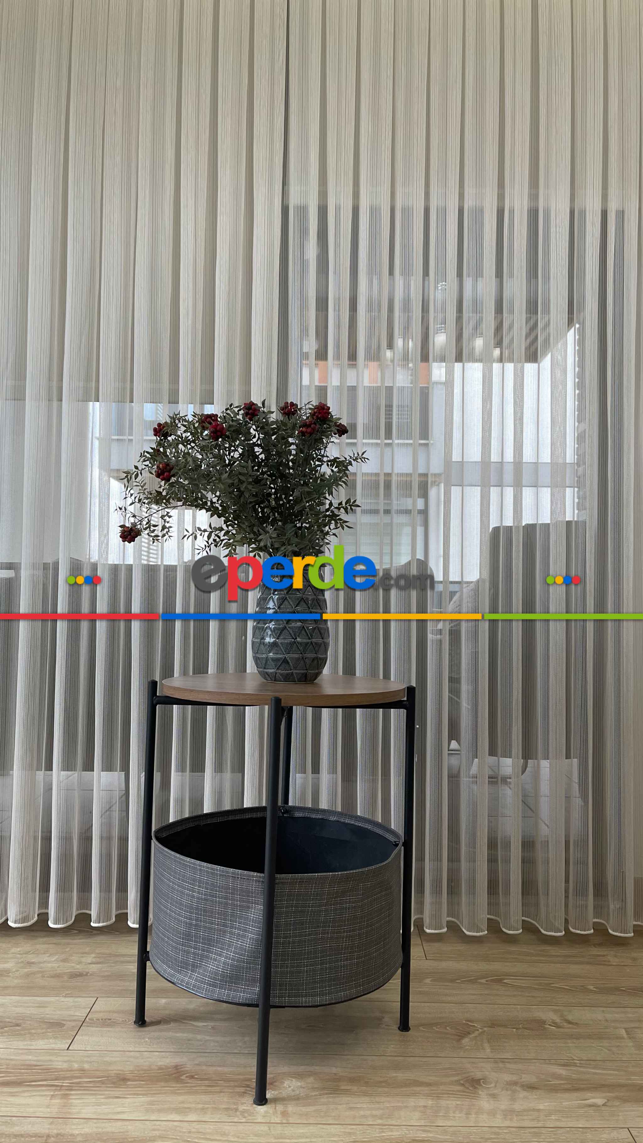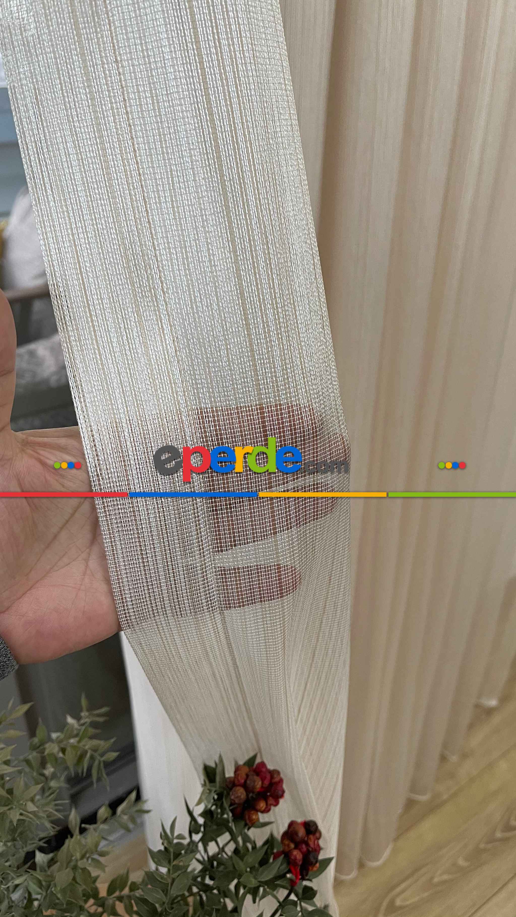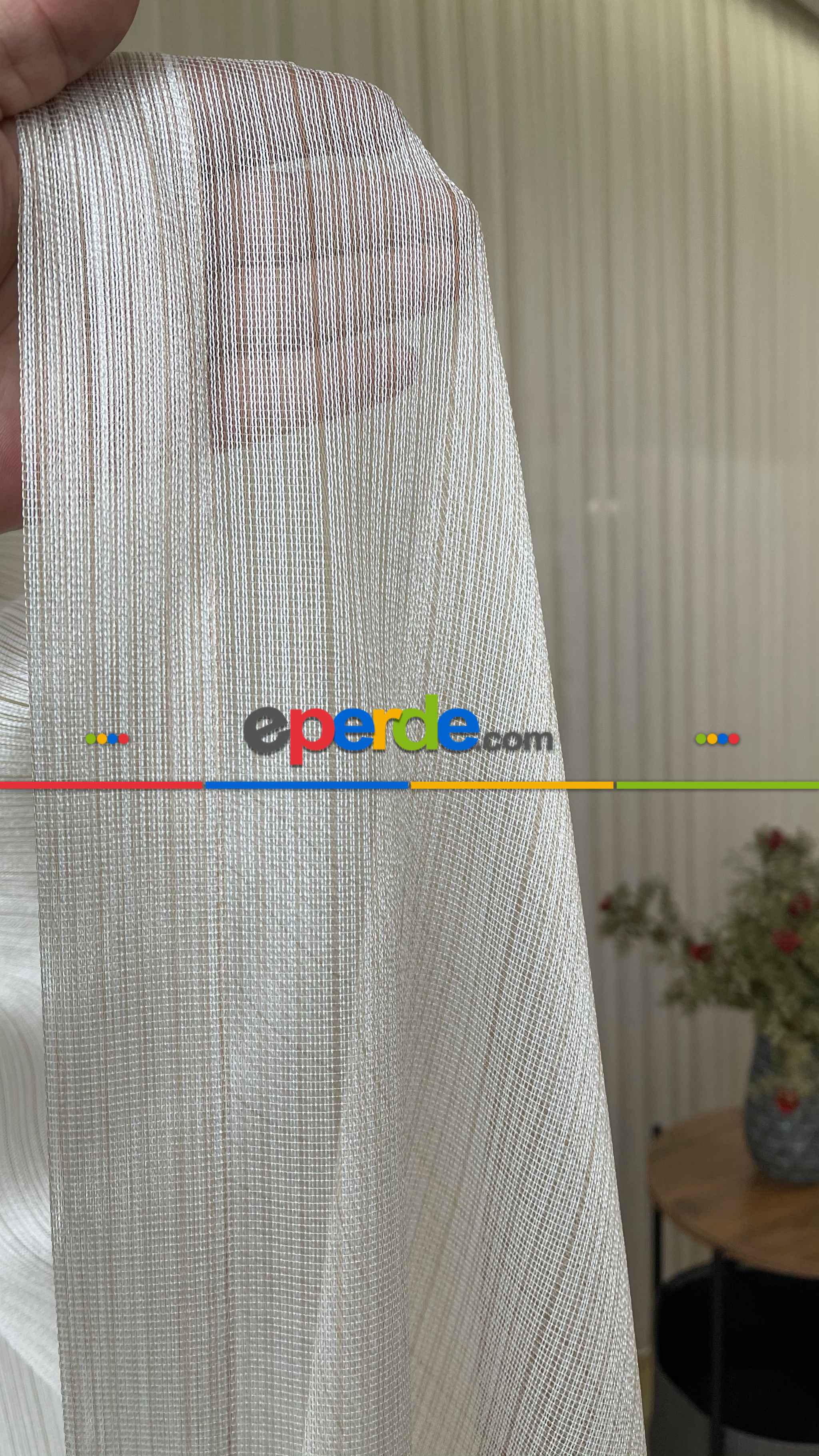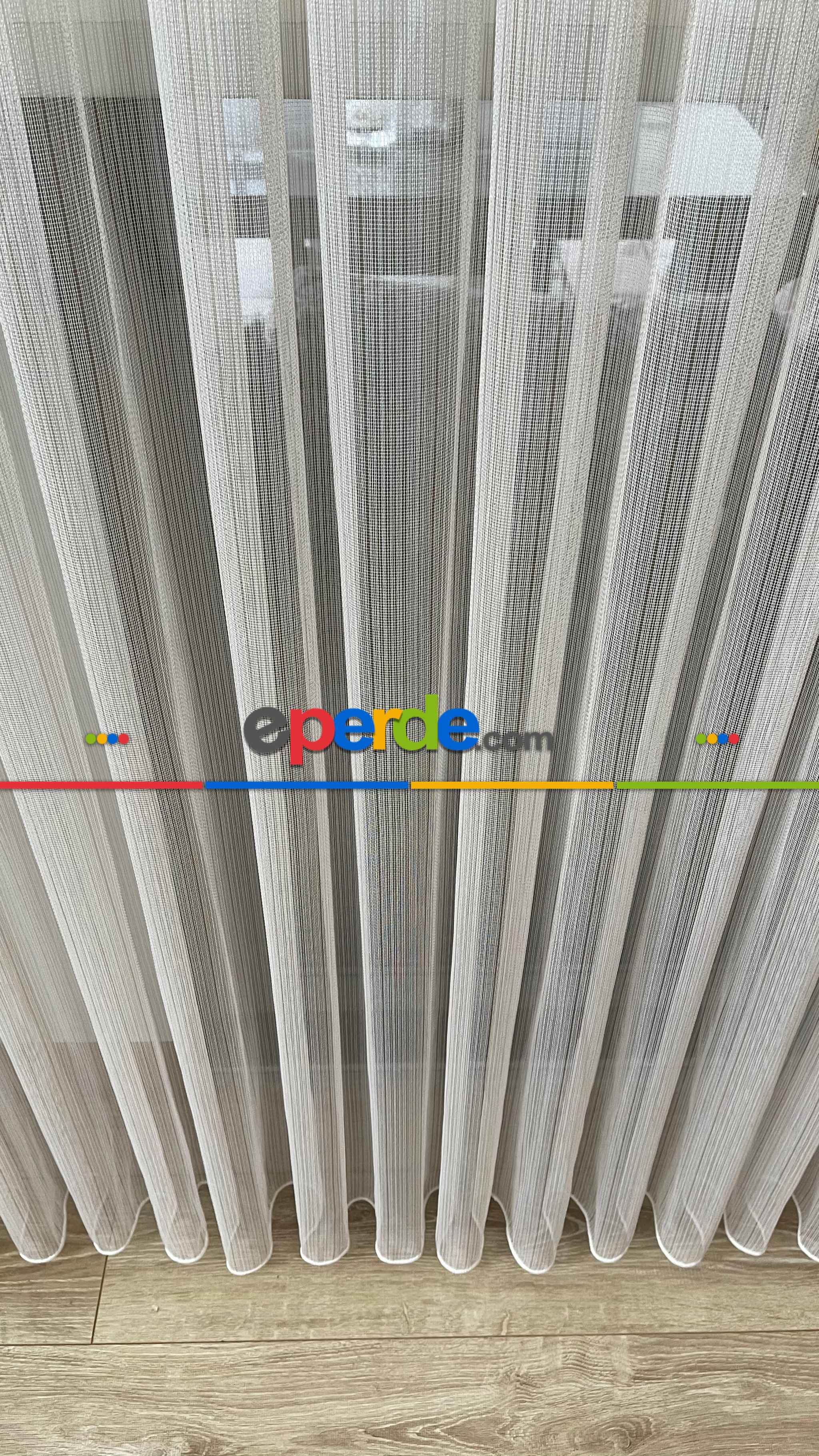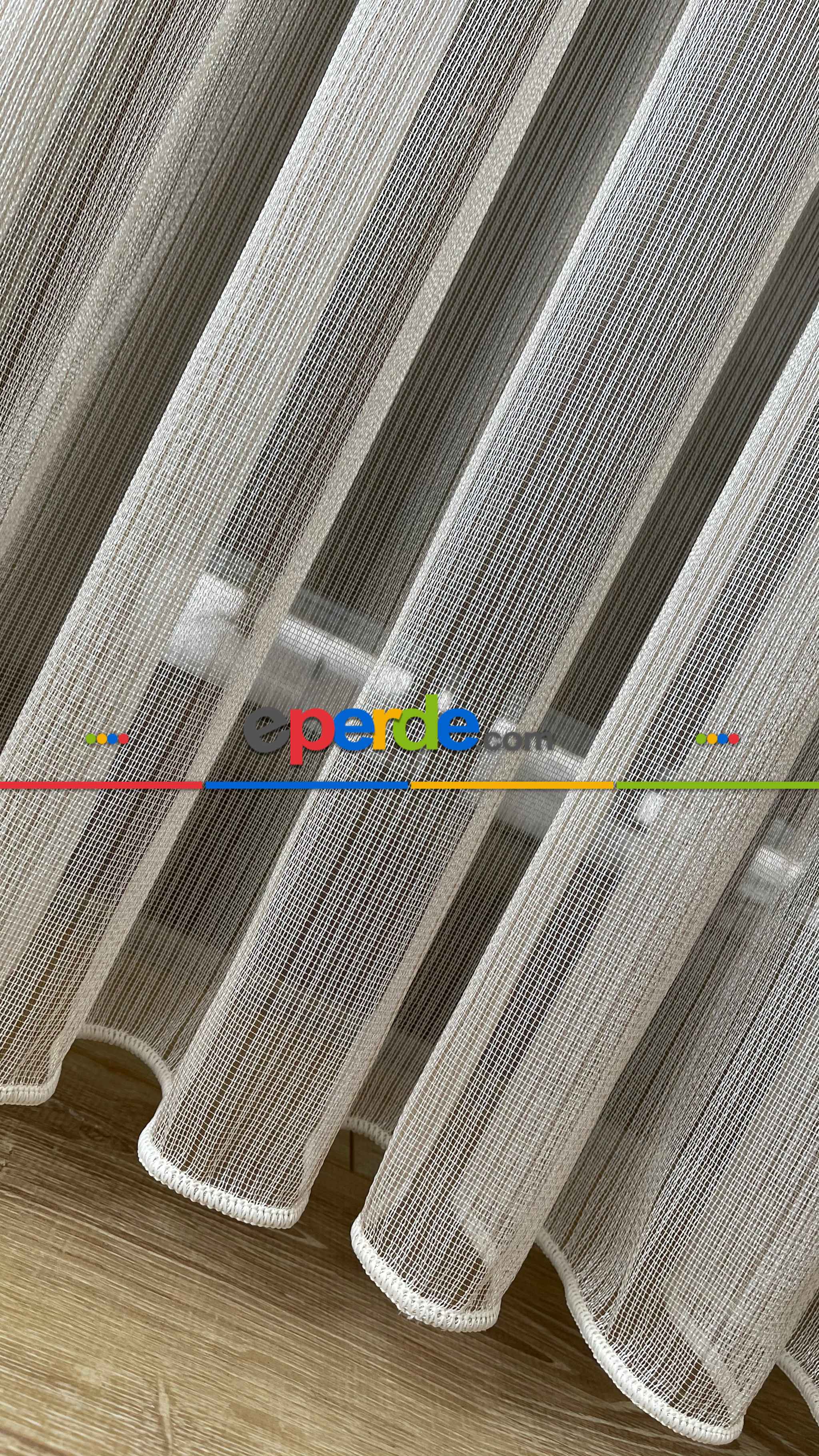 % 50 İndirimli Hazır Ürün -çizgili Düz Tül Perde - Krem Rengi - Ütü İstemez » Eperde