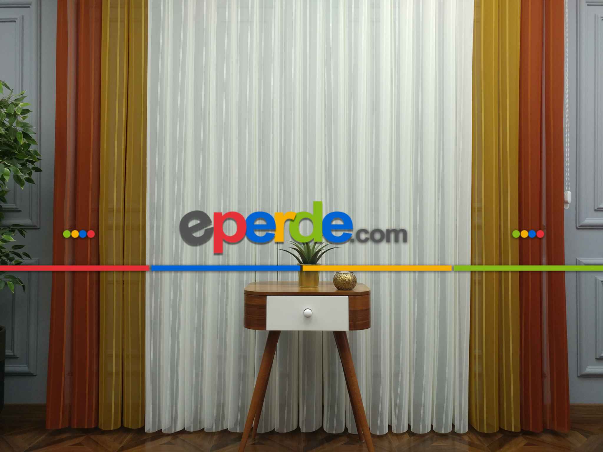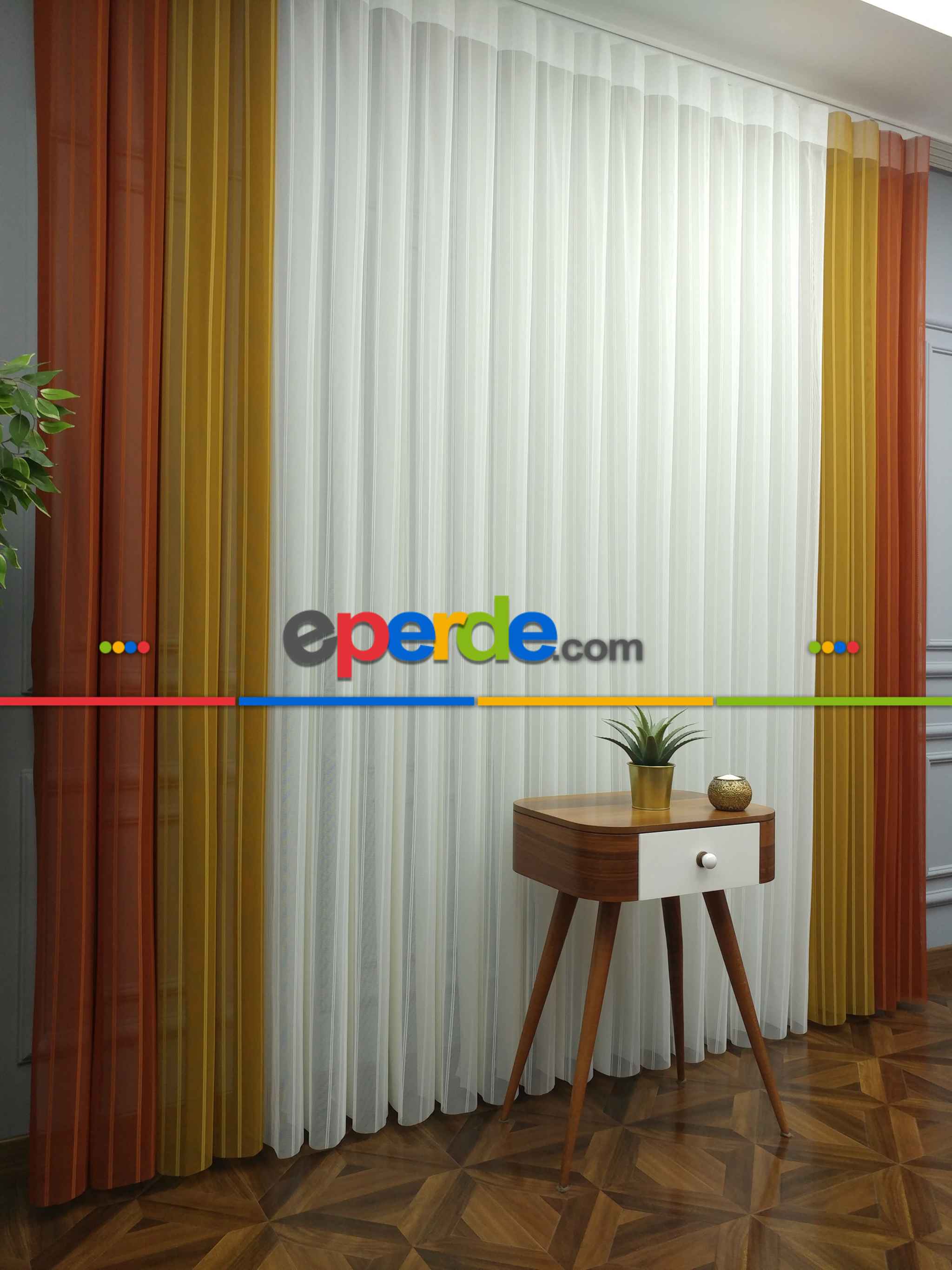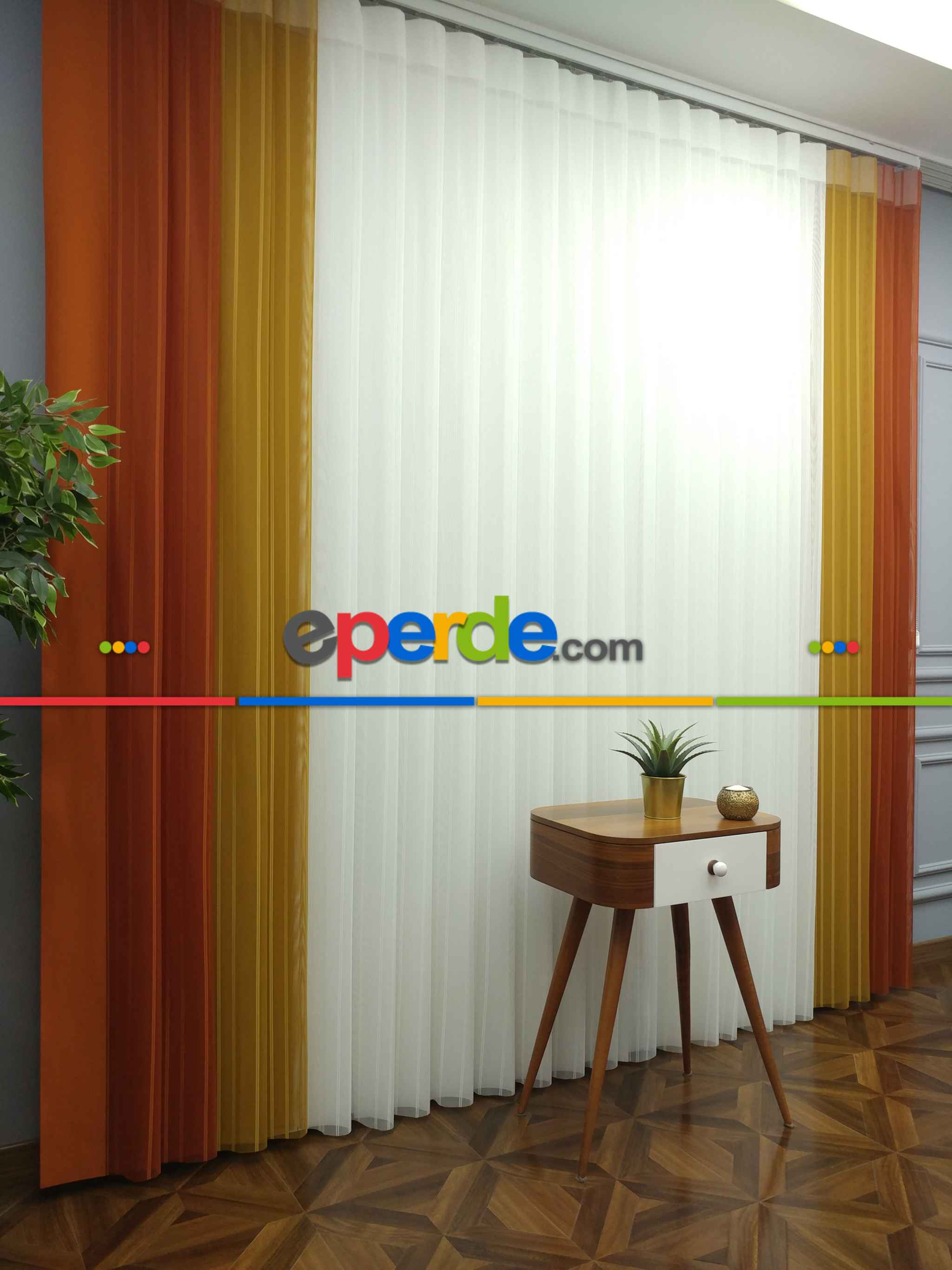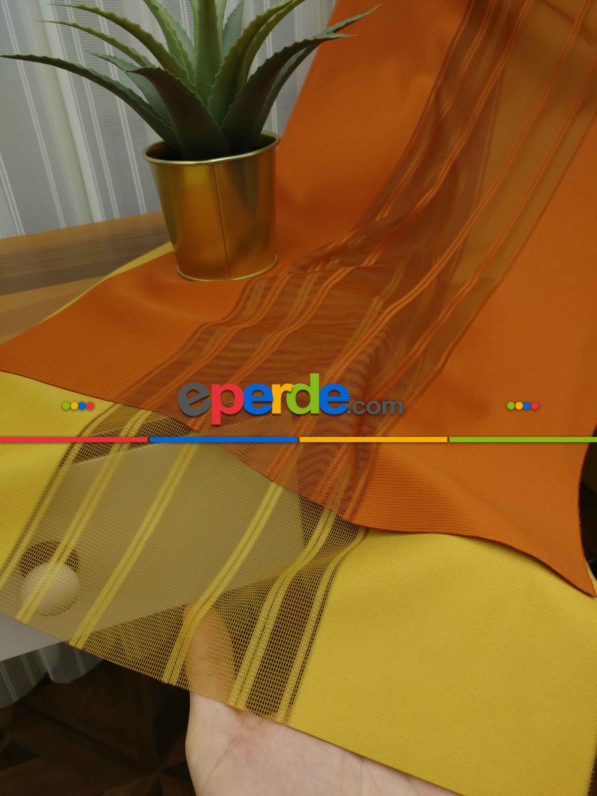 2021 Sezonu - Tül Dikey Zebra Perde - Stor Tül Perde Hepsi Birarada- Turuncu-ekru-hardal Sarısı