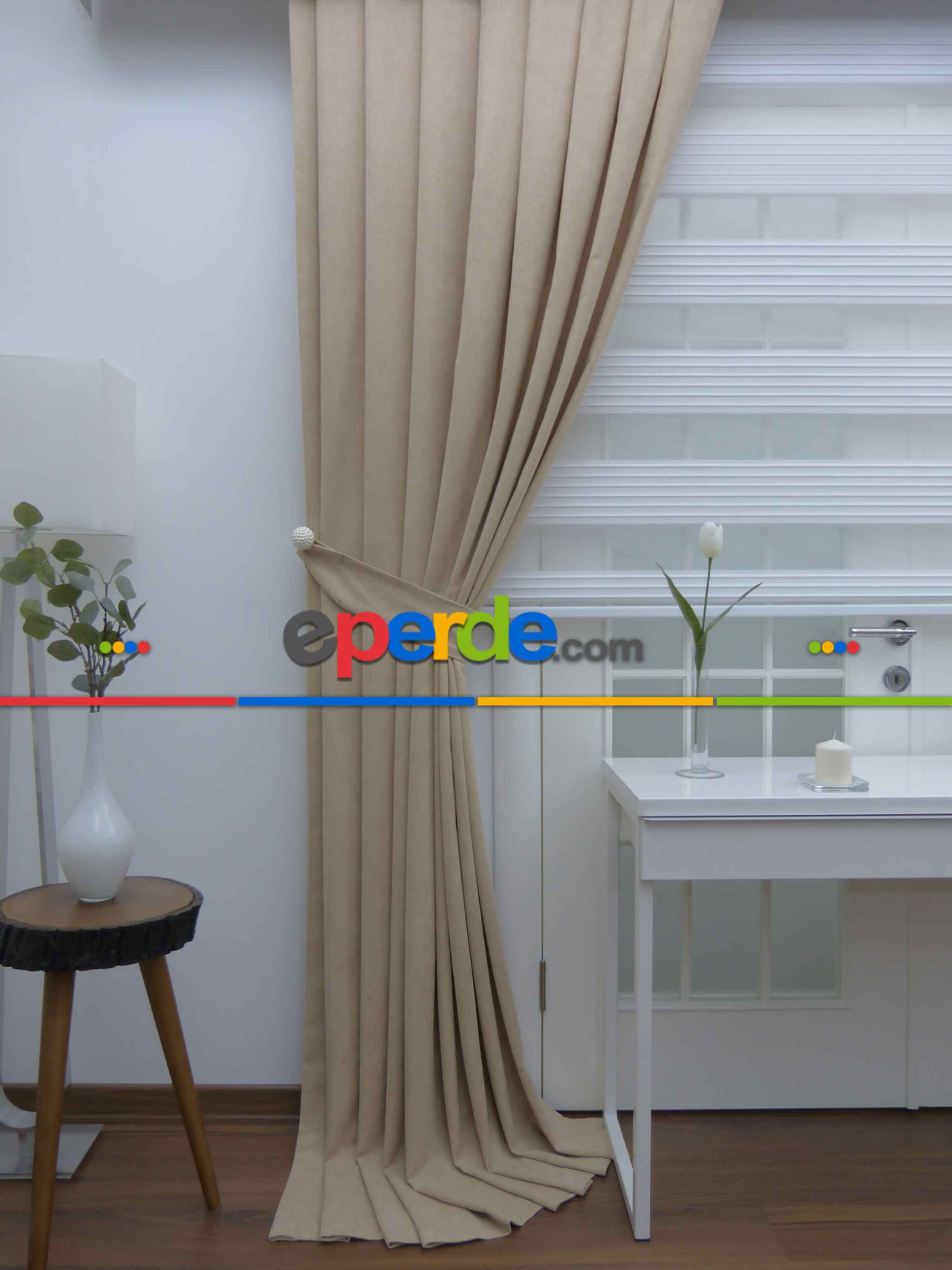 KKTC | %25 İndirimli!!! Kum Beji Rengi Düz Fon Perde (fon Demiri Hediyeli)- Kum Beji » Eperde