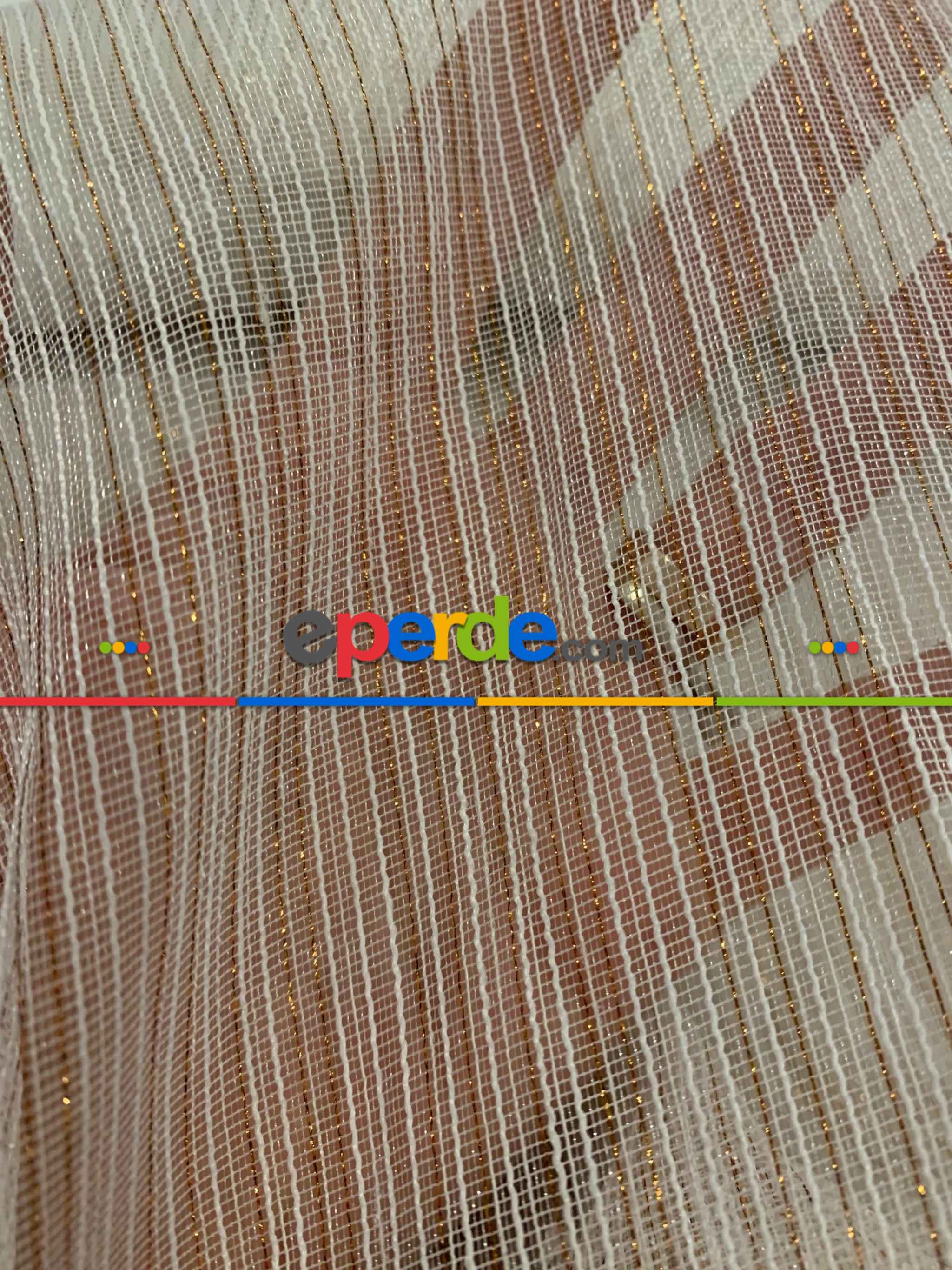 Macaristan | Arzenen Işıkta Doğal Parlama-ışıltı Efektli, Bakır Şerit Detaylı Tül Perde- Ekru - Kurşunlu Tül » Eperde