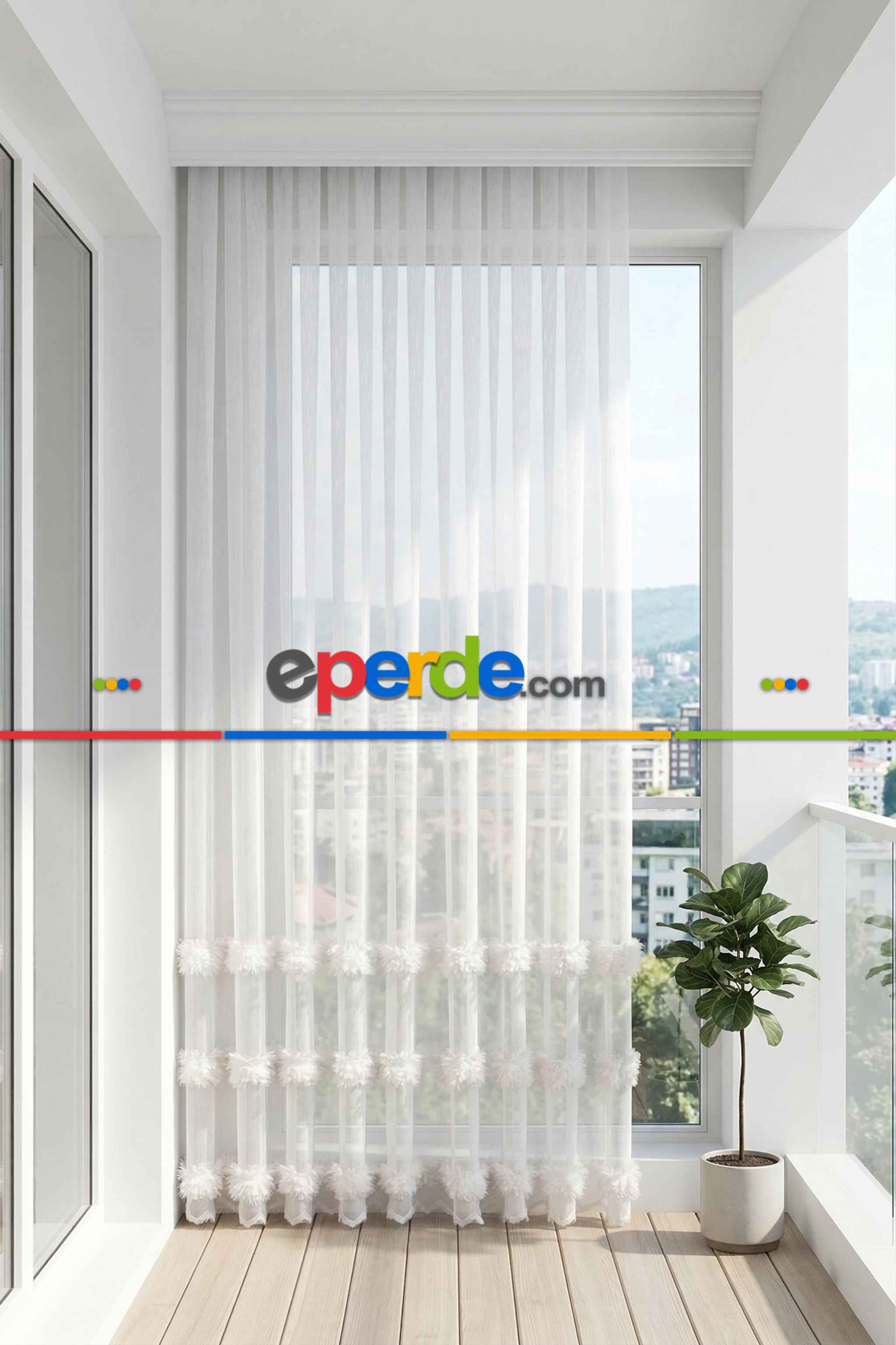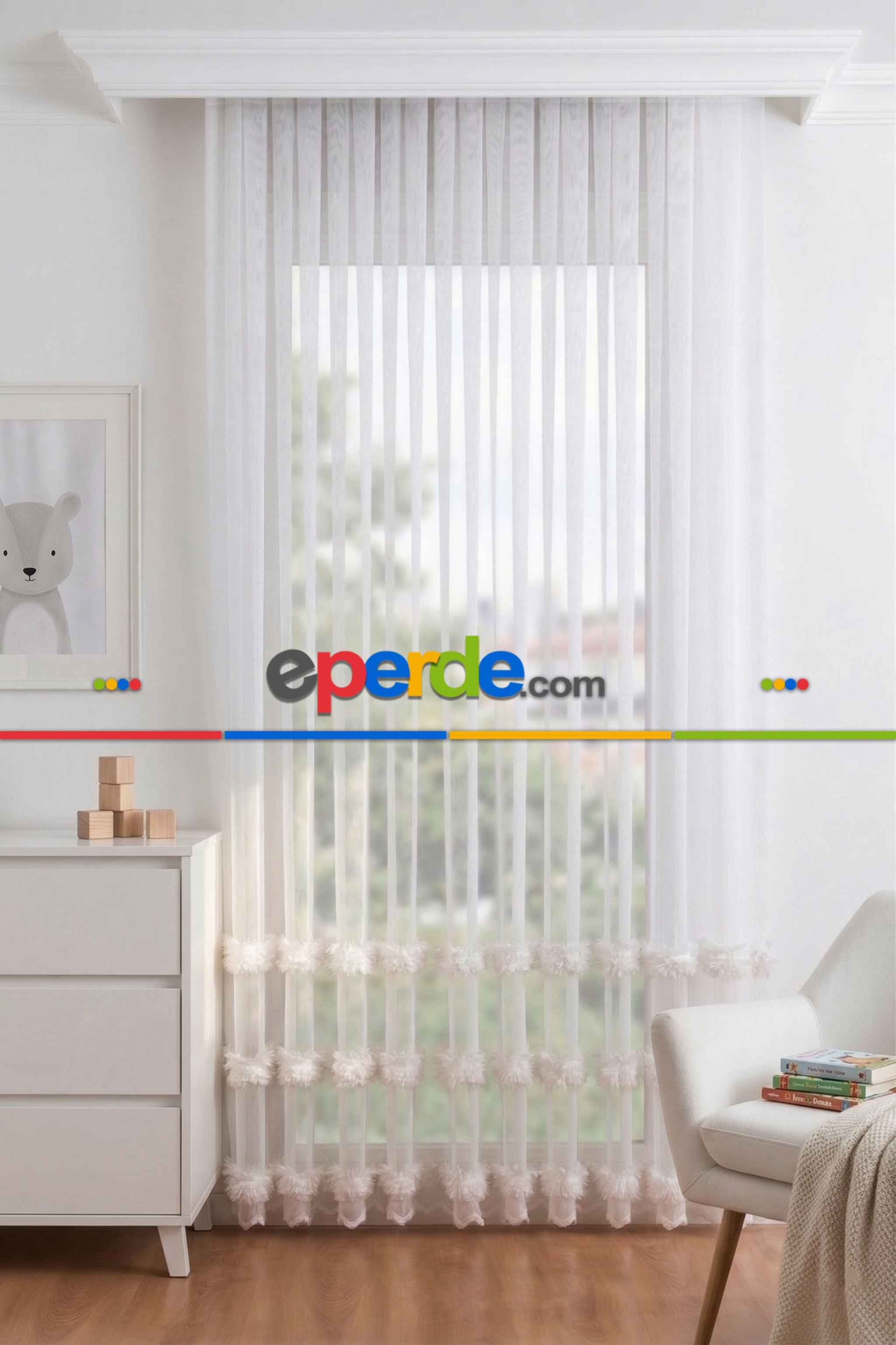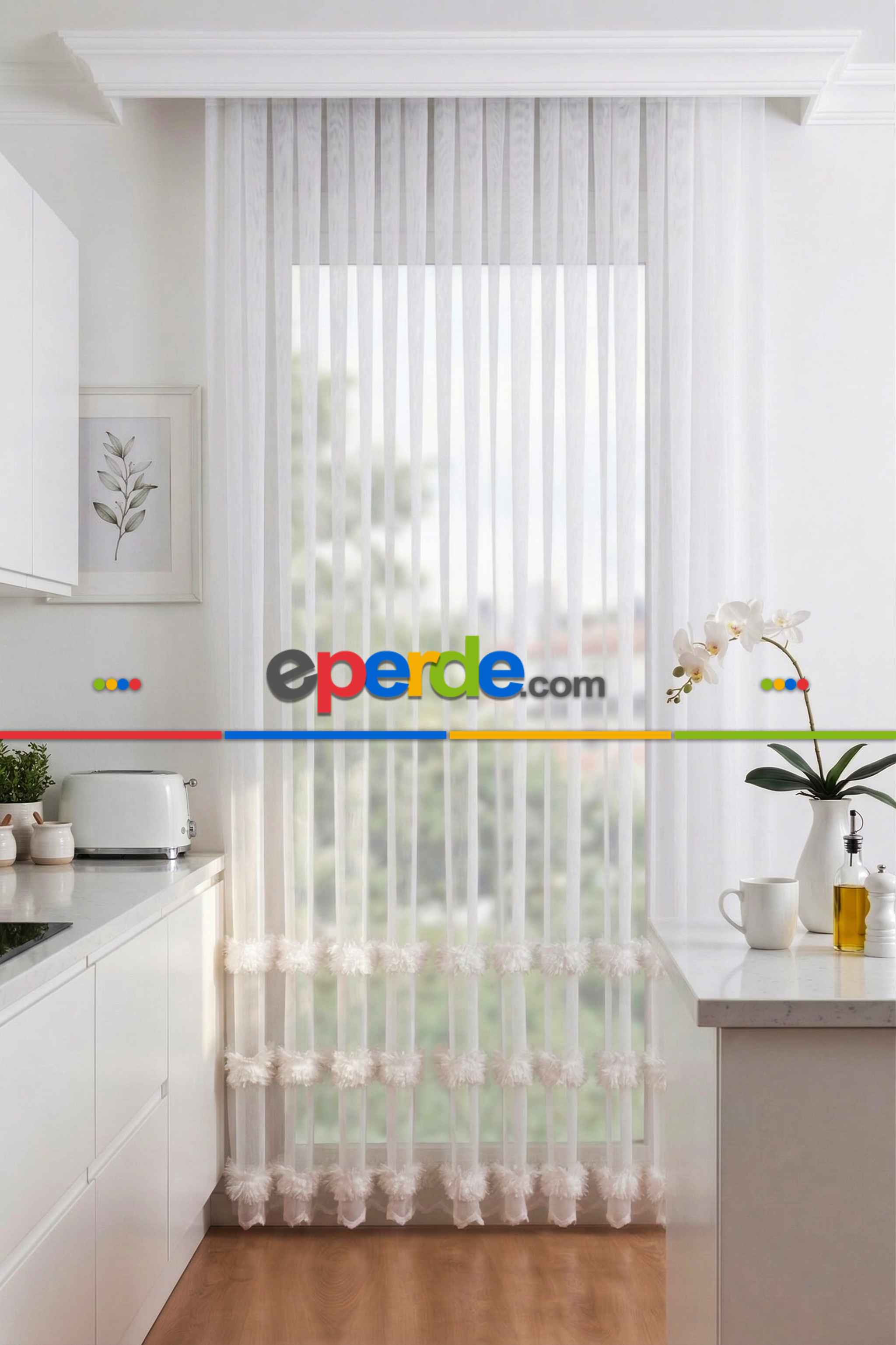 Bambu Zemin, Etek Püsküllü Tül Perde, Bambu Doğal Dokulu, Ekru Ürün Açıklaması