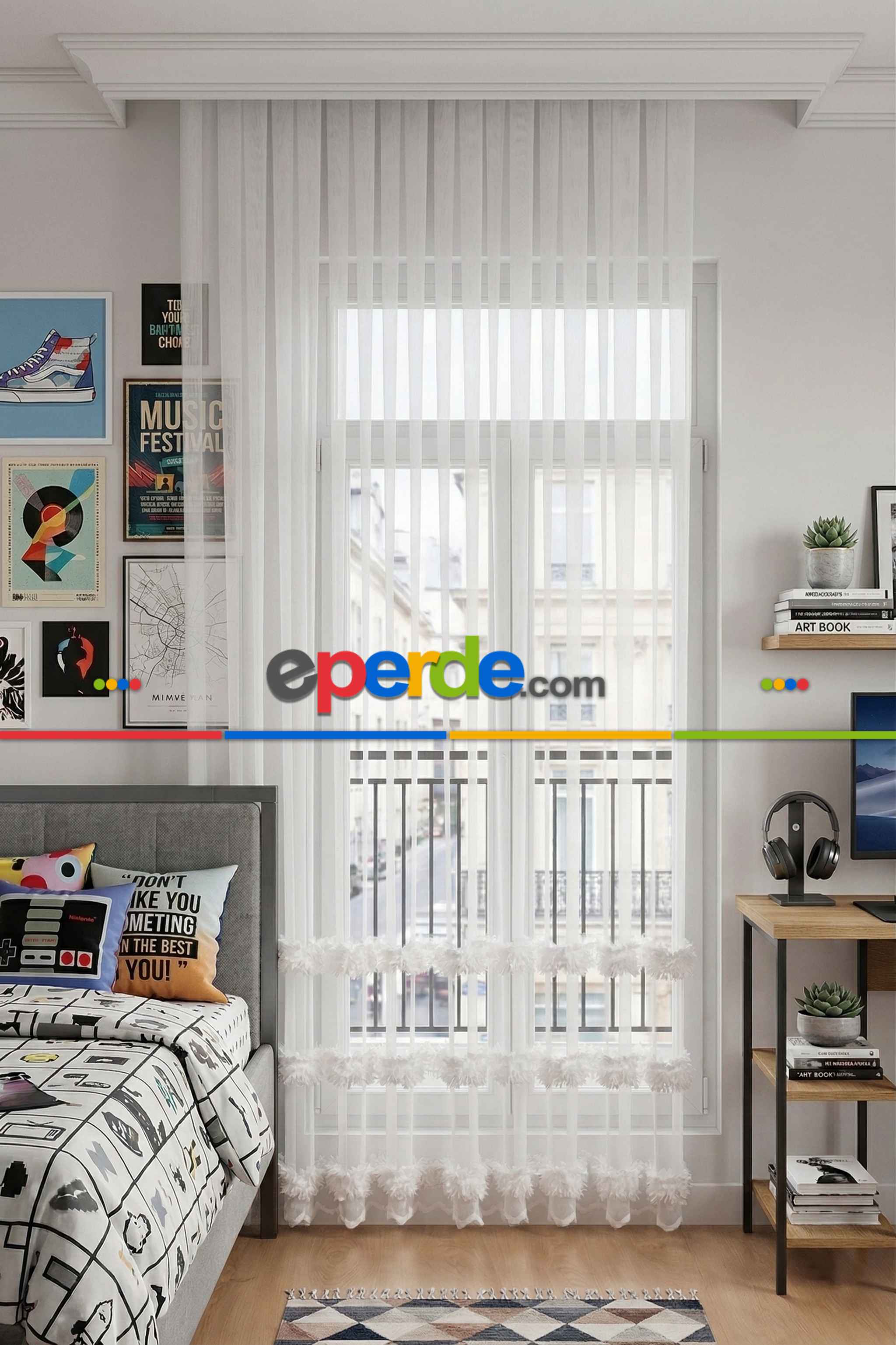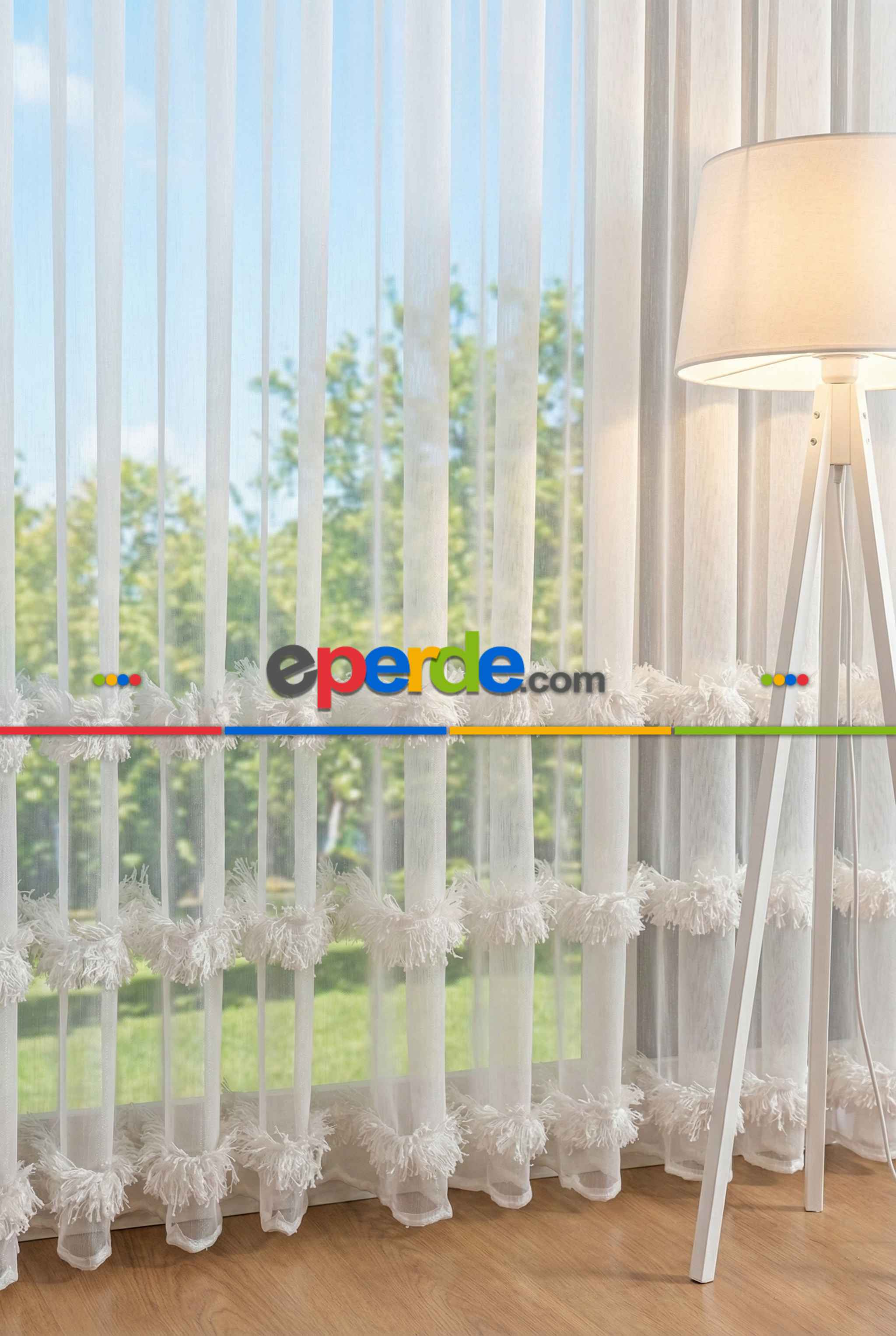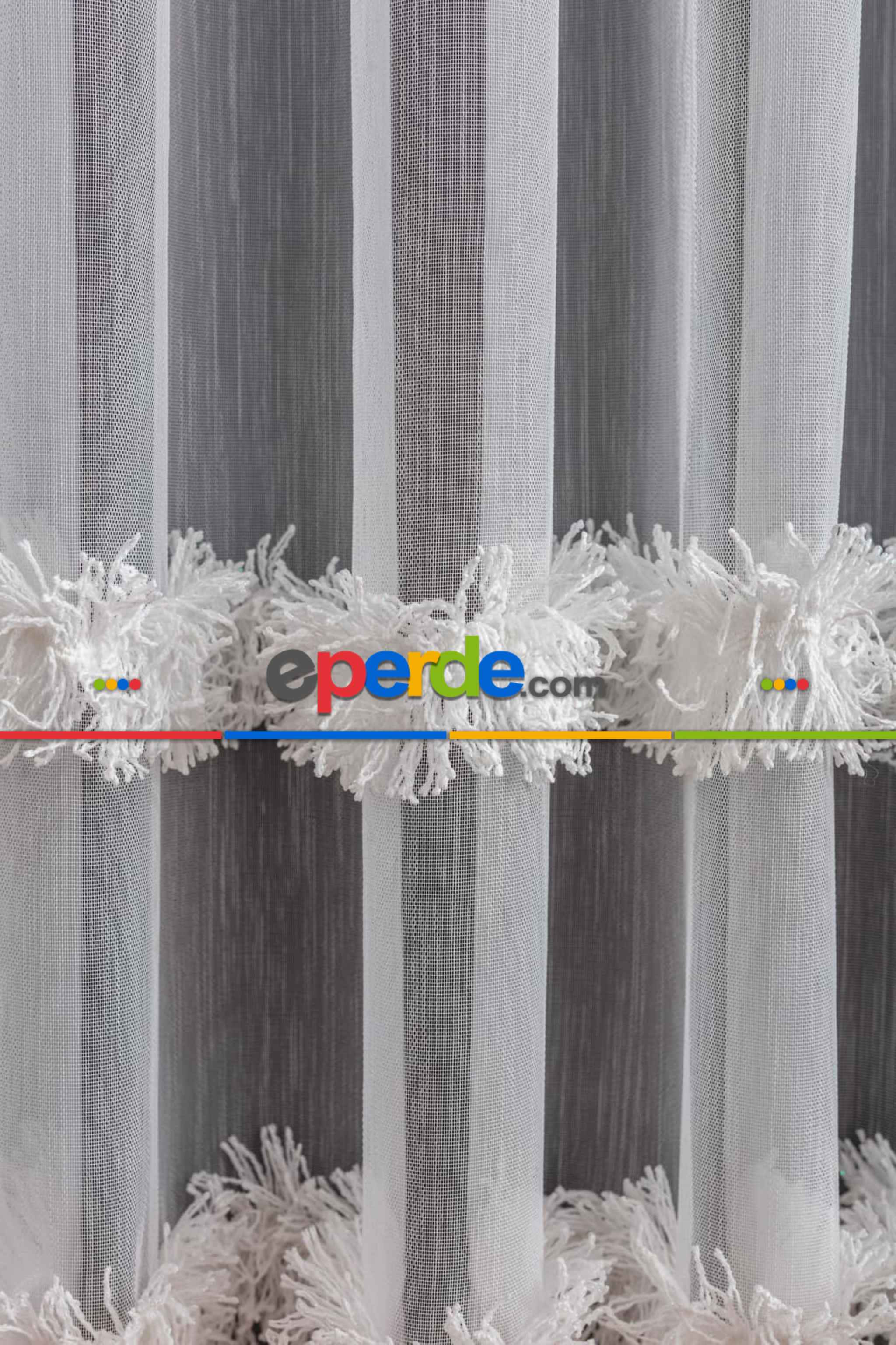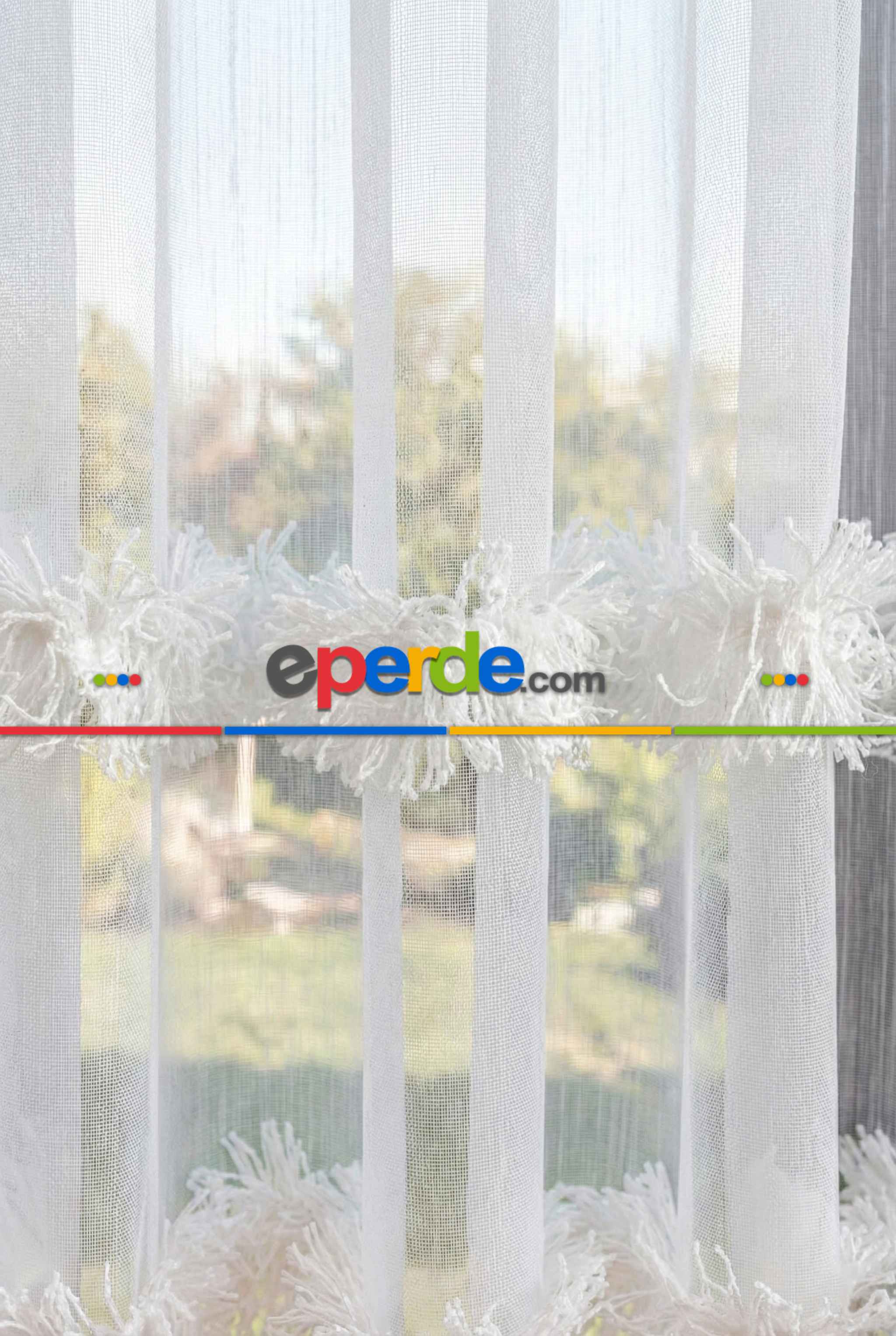 Fransa | Bambu Zemin, Etek Püsküllü Tül Perde, Bambu Doğal Dokulu, Ekru » Eperde