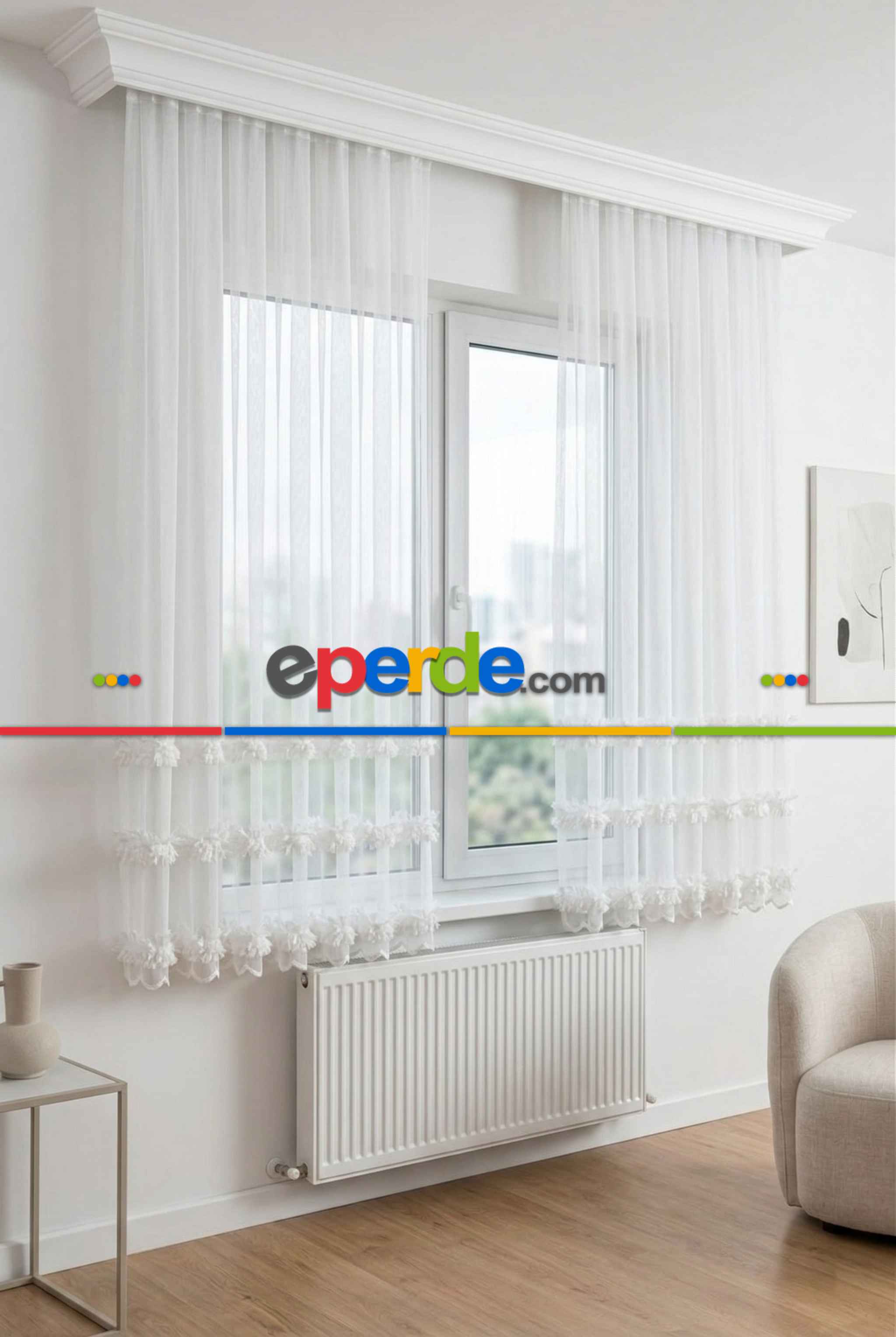 • Renk: Kırık Beyaz / Ekru Montaj: Kornişe uygun düğmeleri dikilmiş, kullanıma hazır olarak gönderilir.