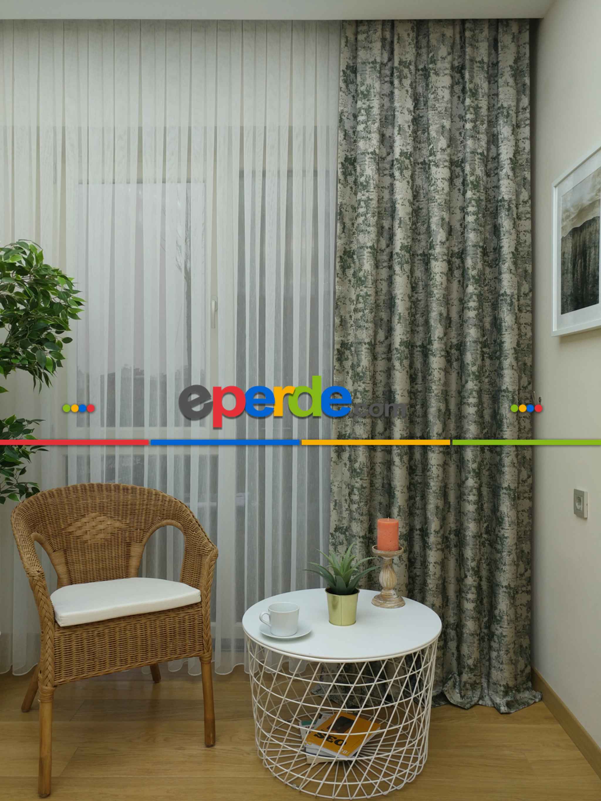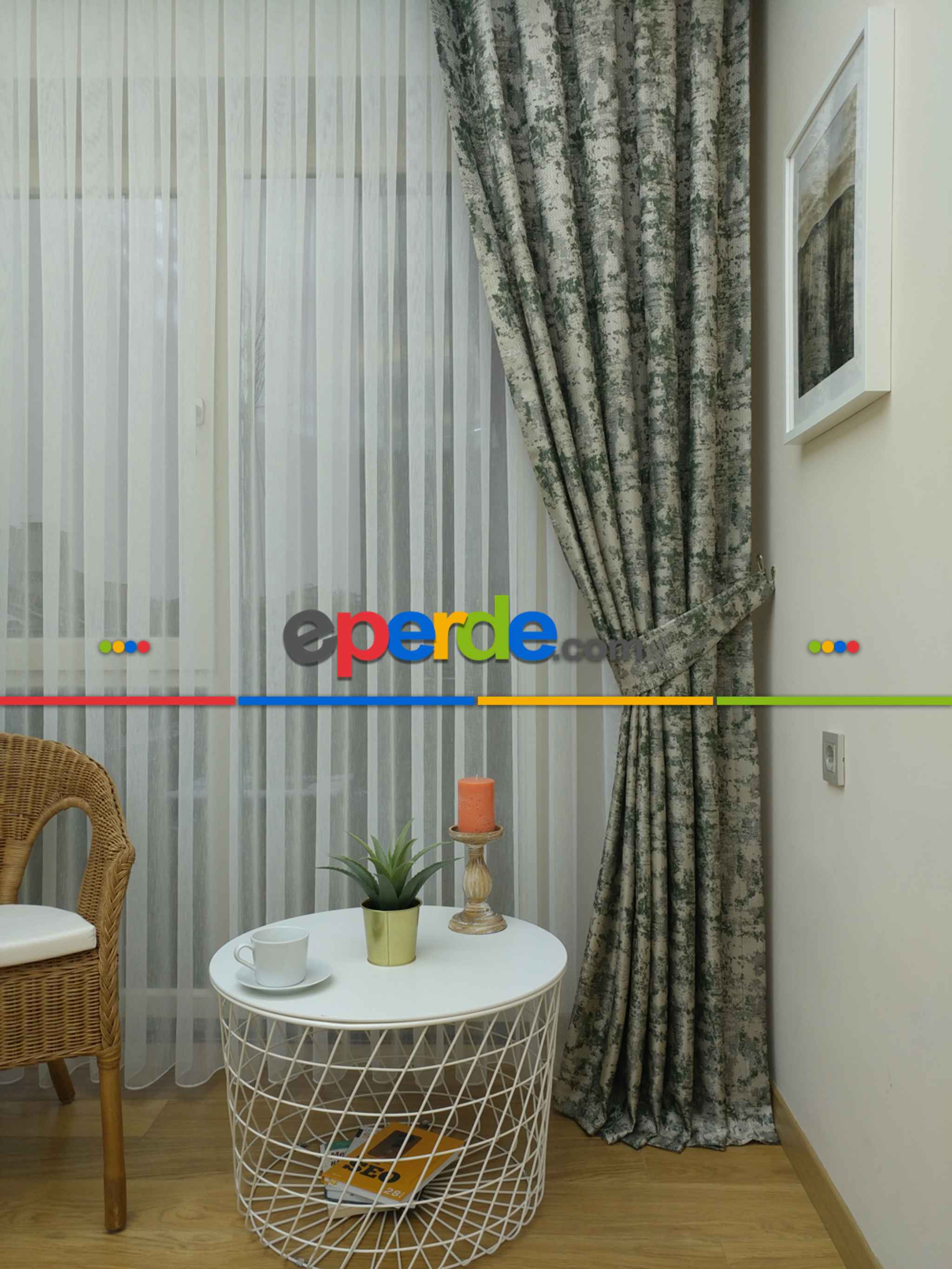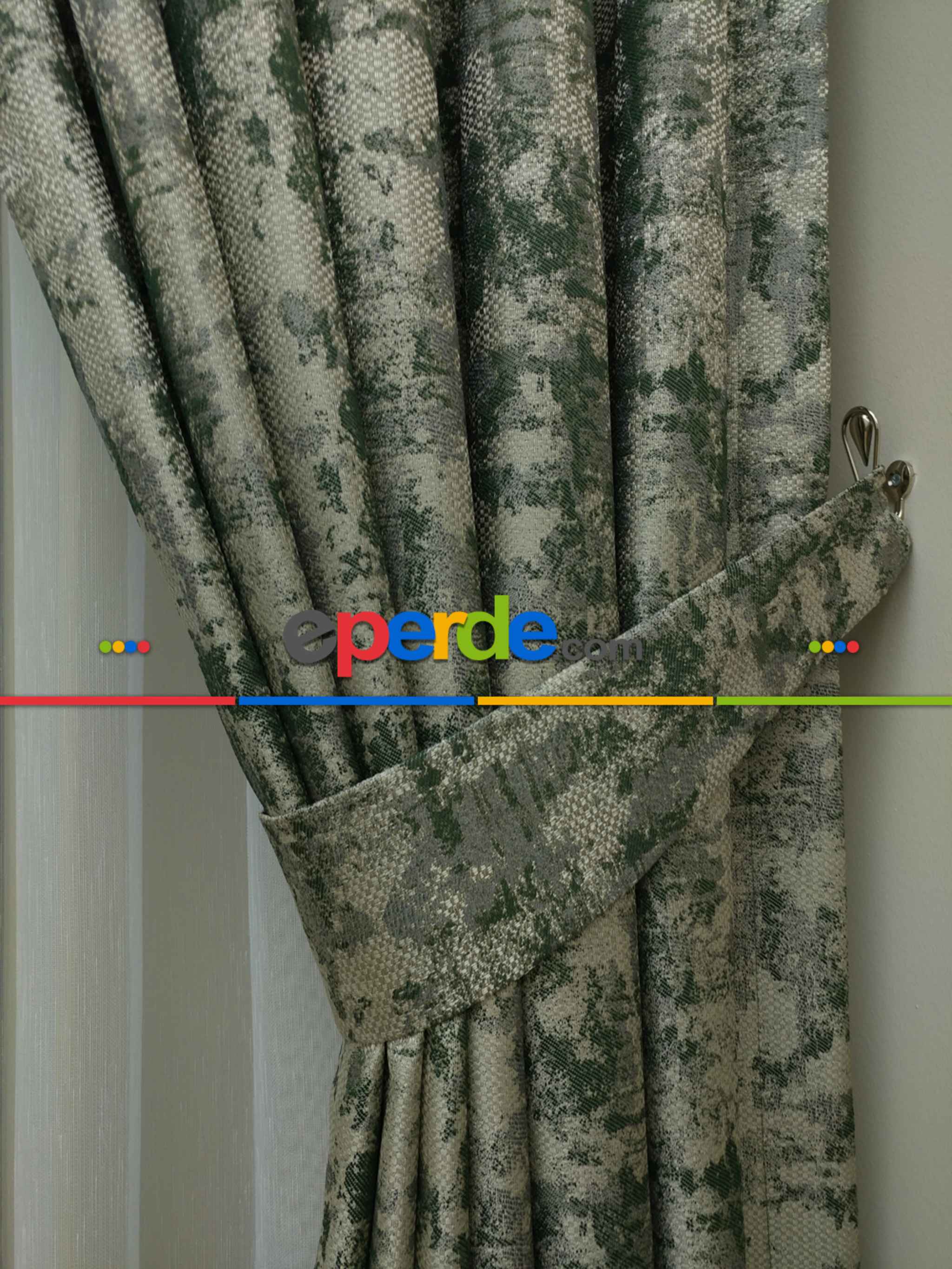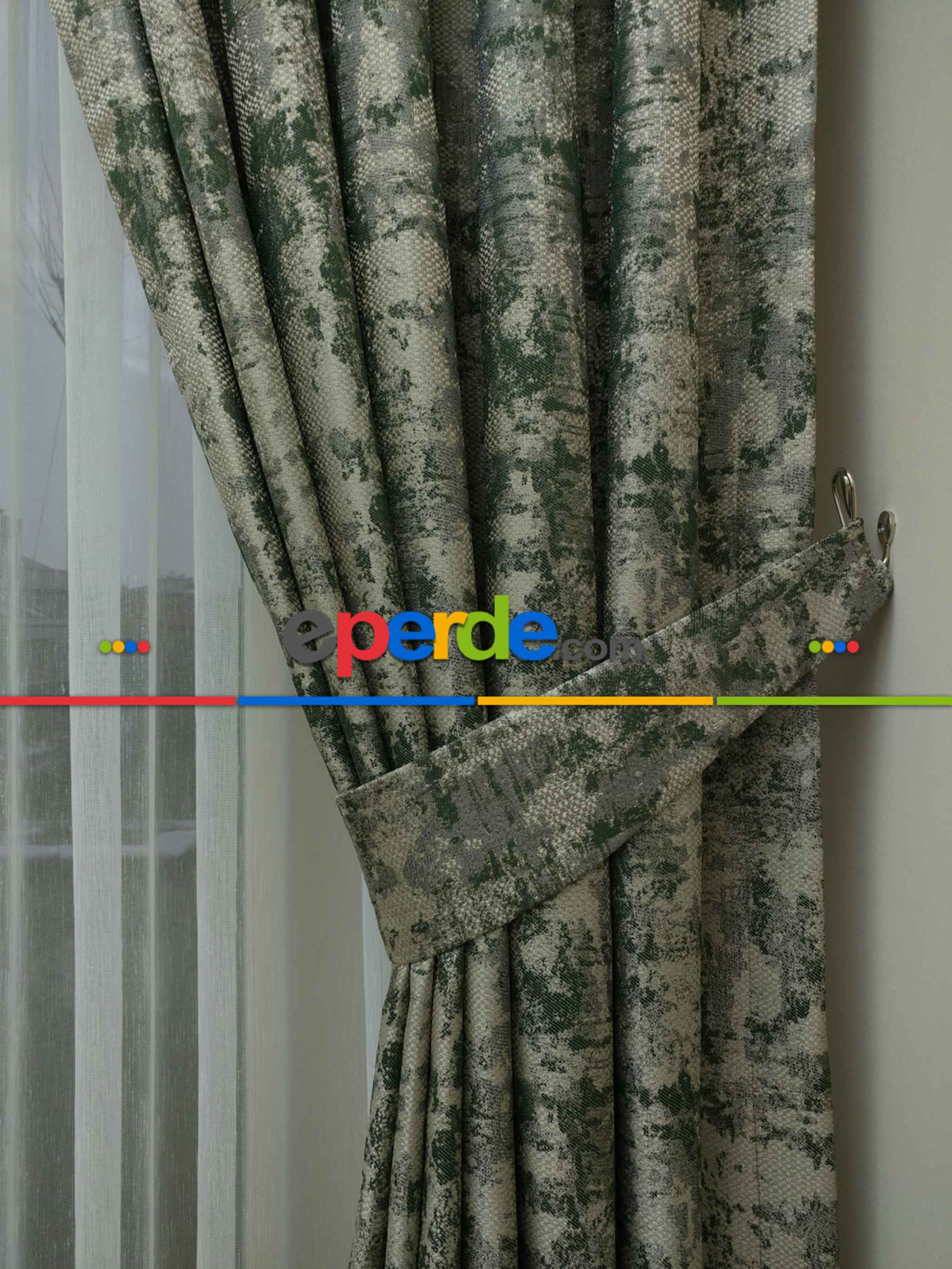 Koyu yeşil fon perdem süper