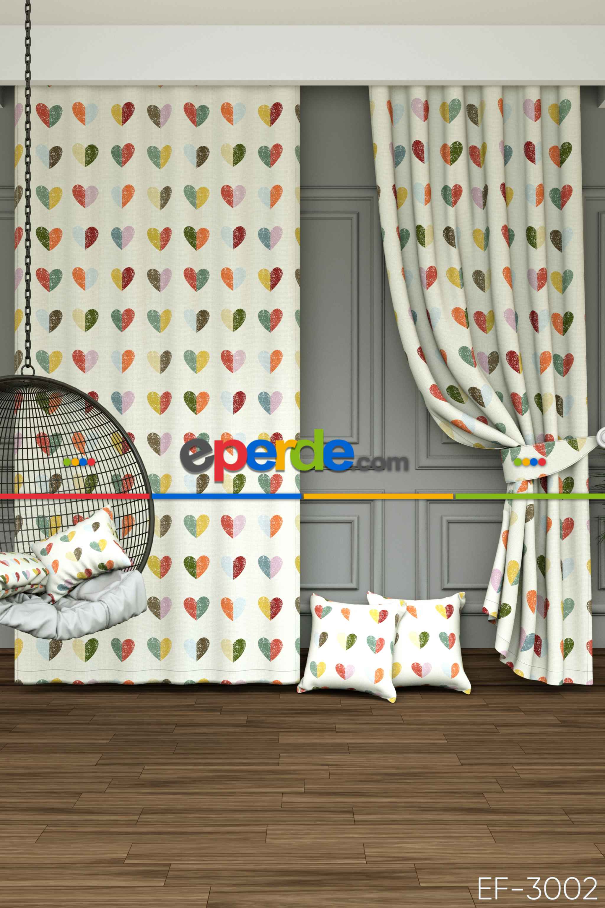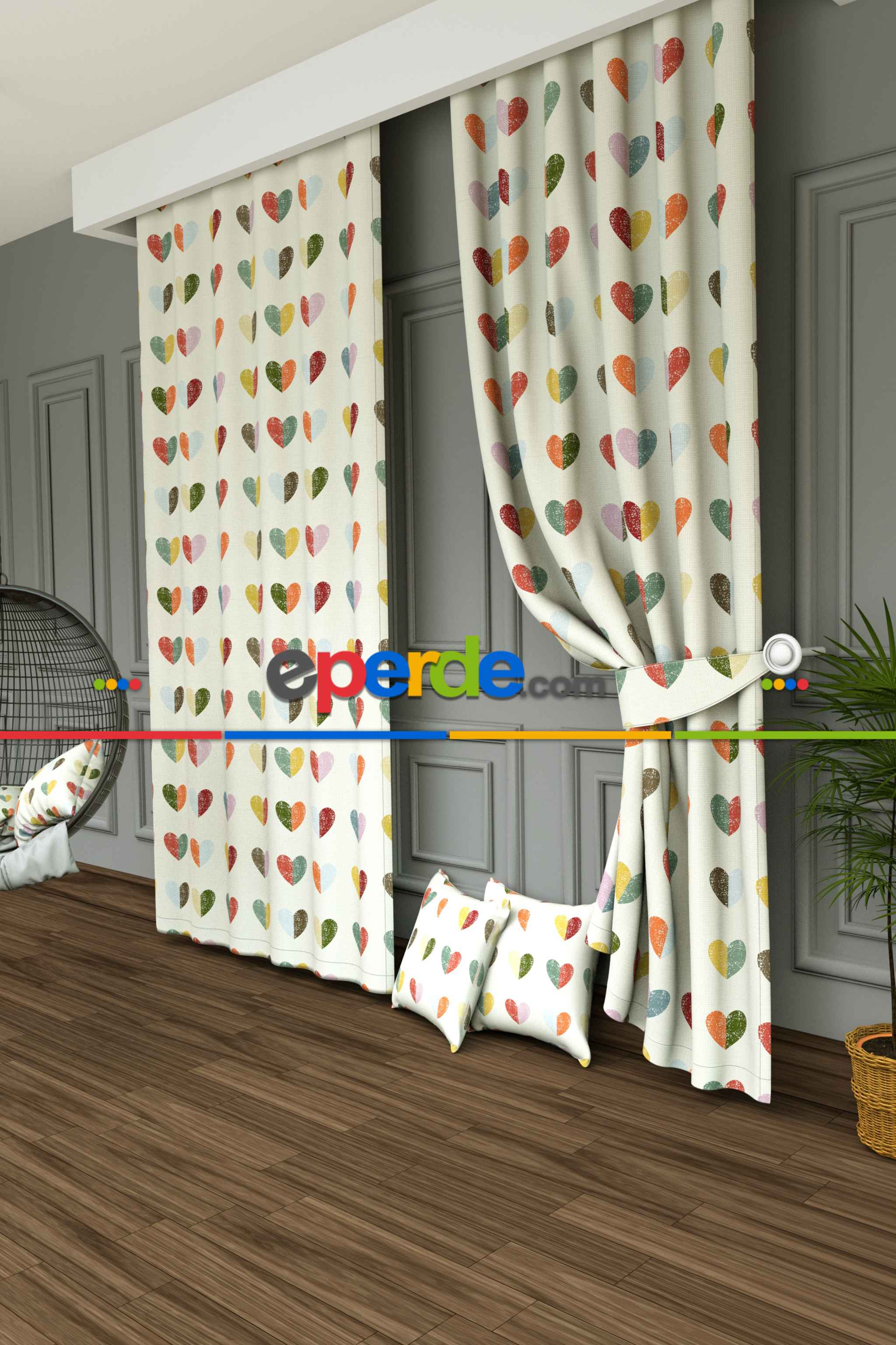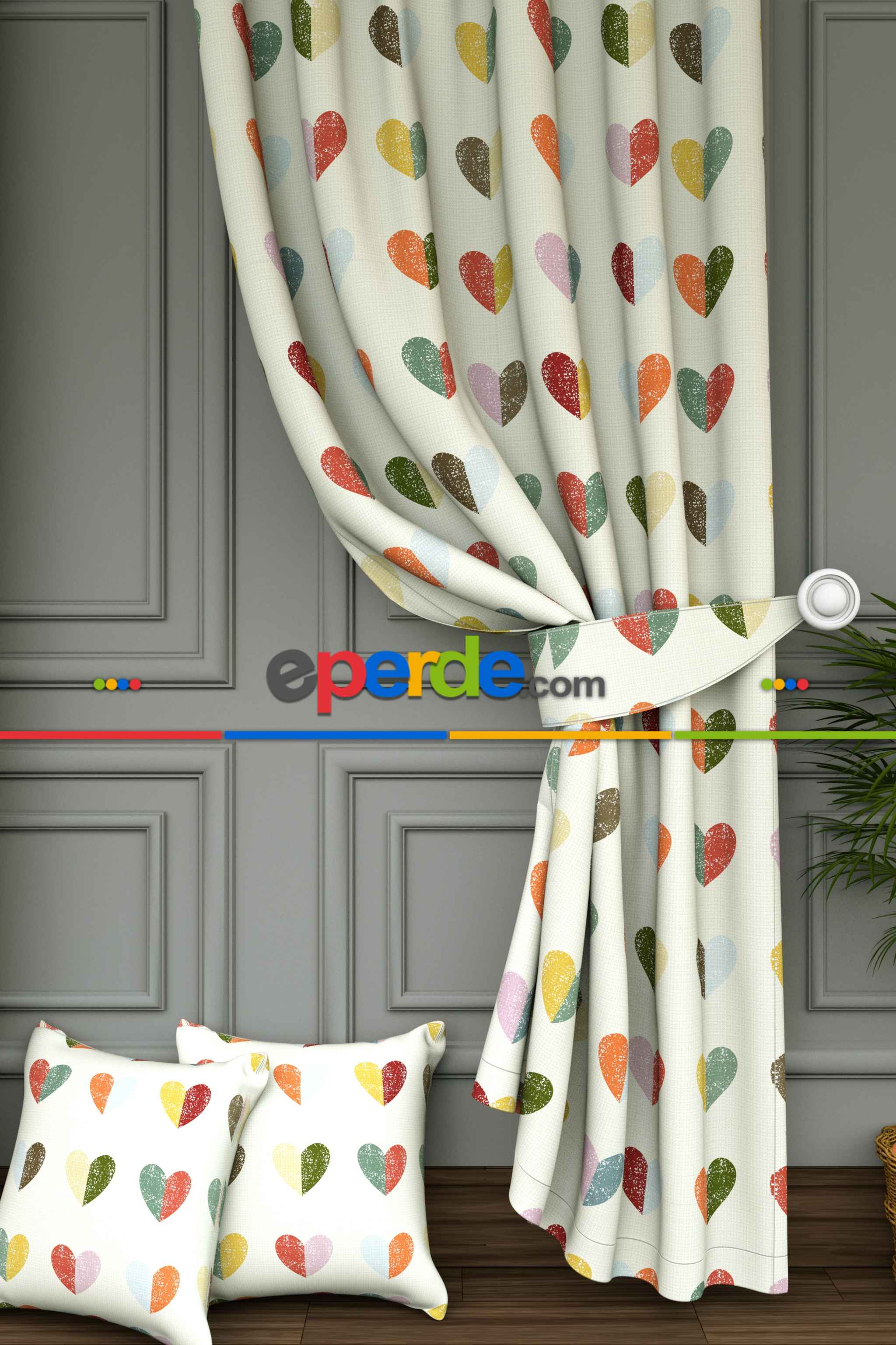 Dökümlü Kumaştan Renkli Kalpler Baskılı Fon Perde- Ekru-çok Renkli Ürün Açıklaması