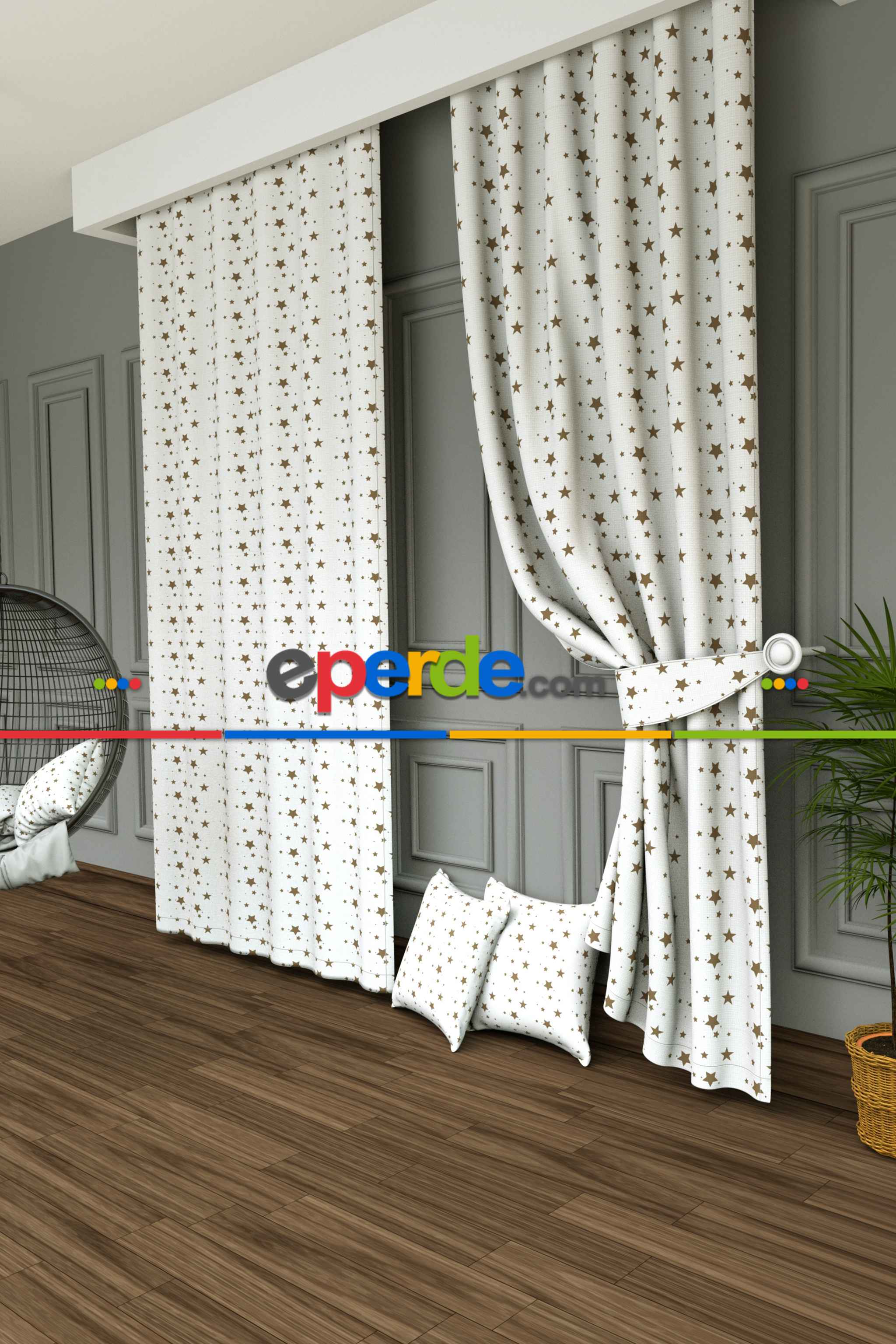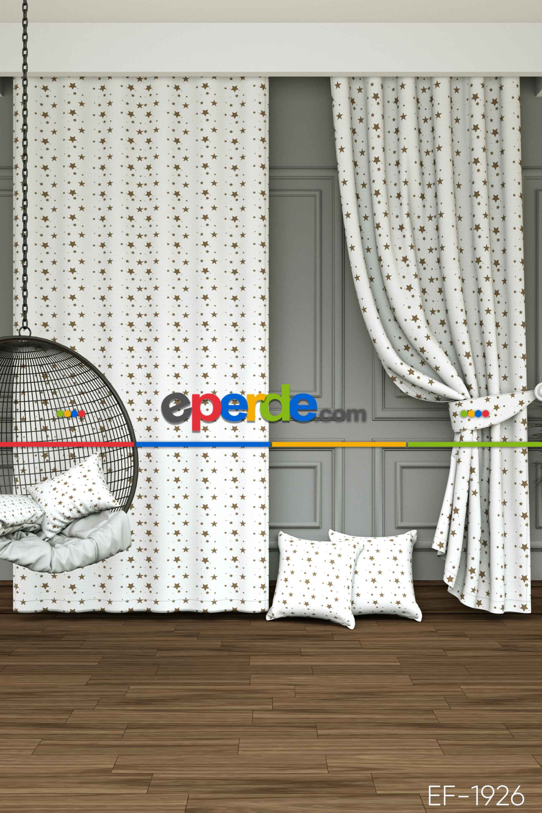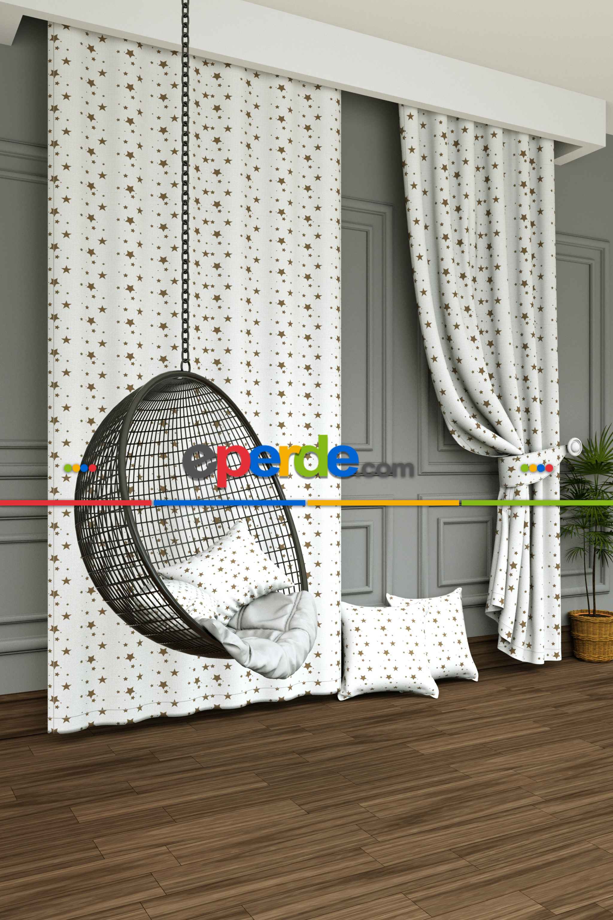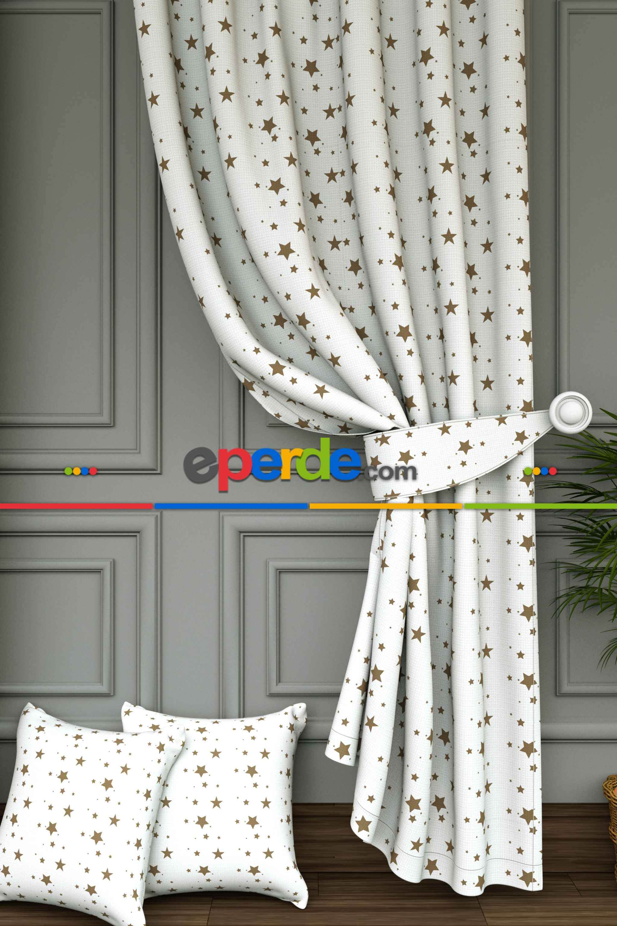 Dökümlü Kumaştan Yıldız Desenli Baskılı Fon Perde - 1. Kalite Yumuşak Dökümlü Kumaş