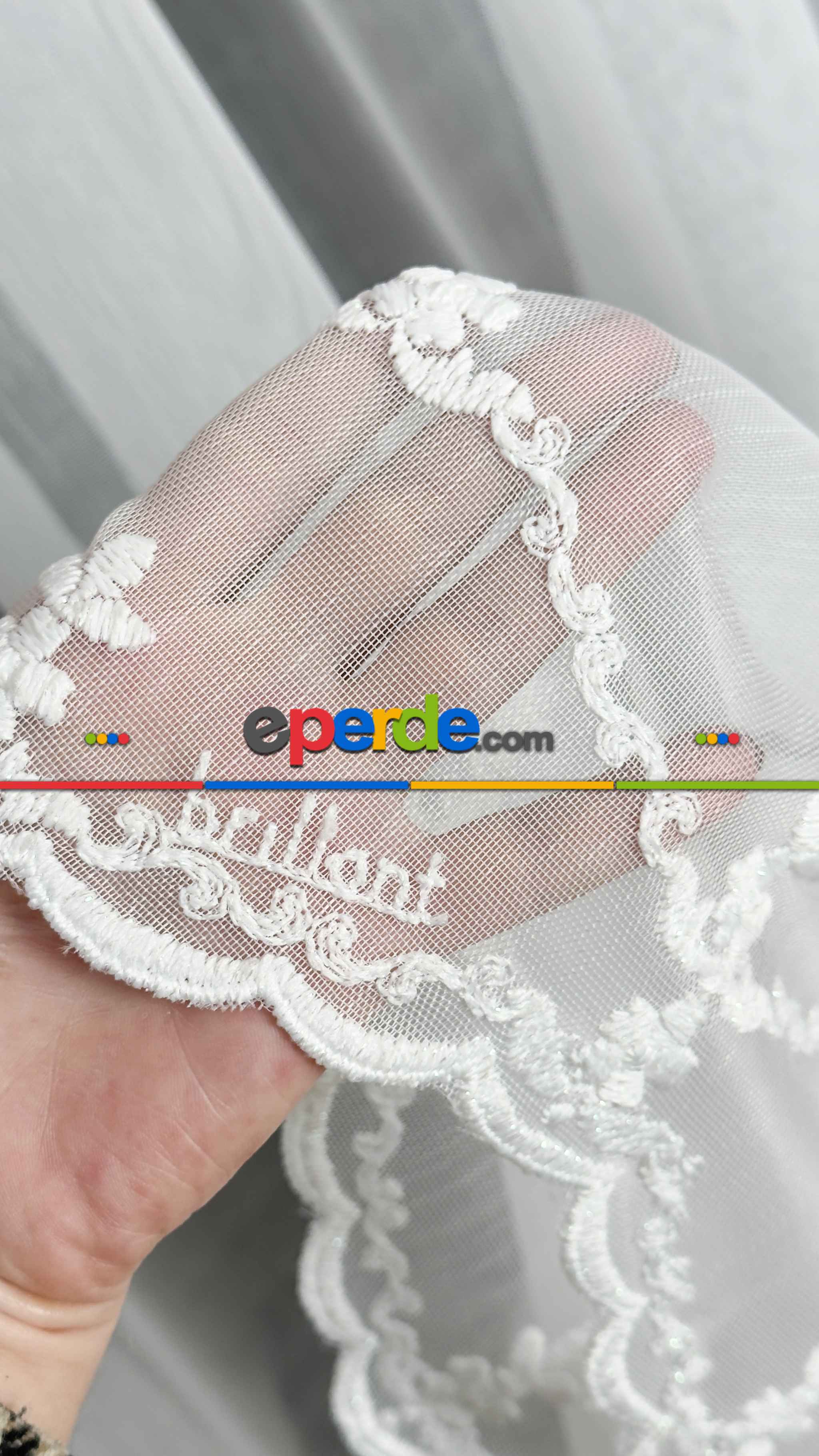 Brillant Ayna Desen Beyaz İşlemeli Tül Perde