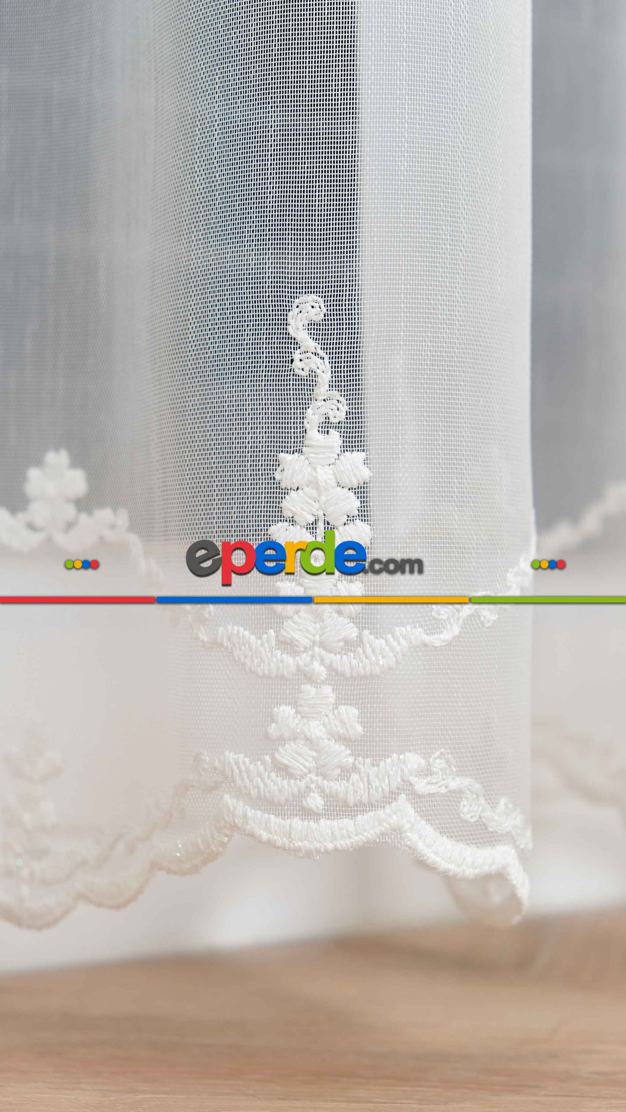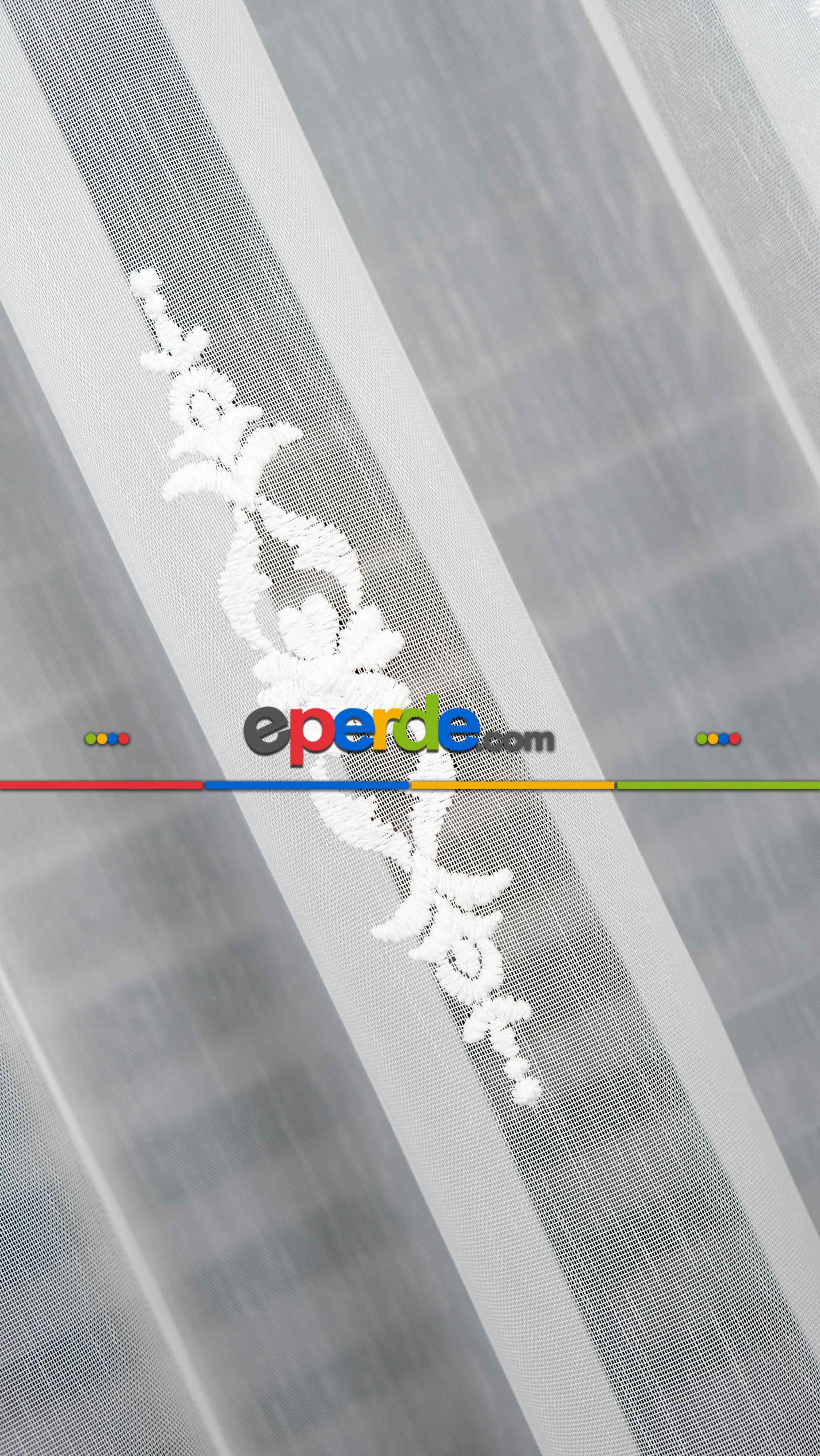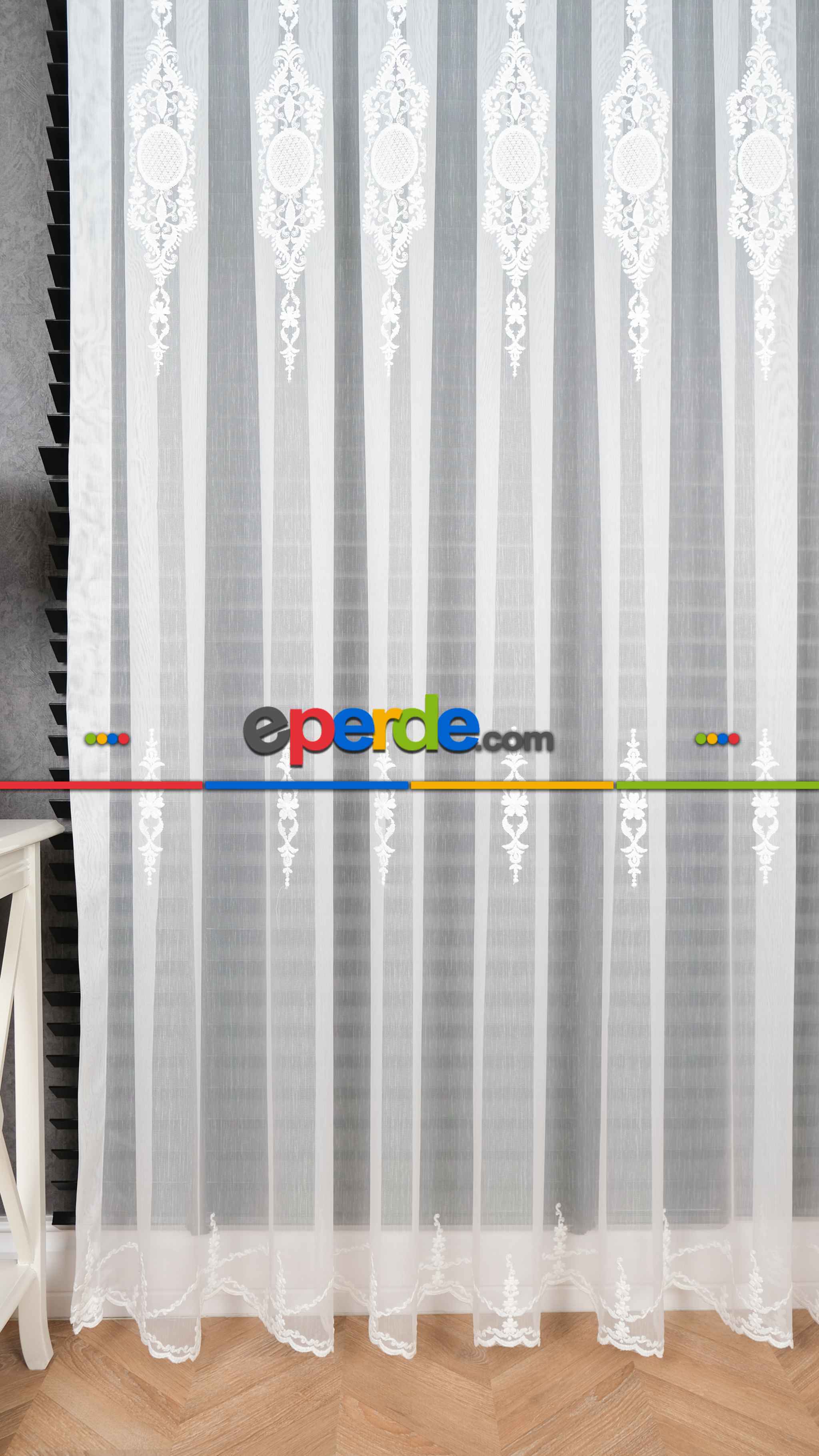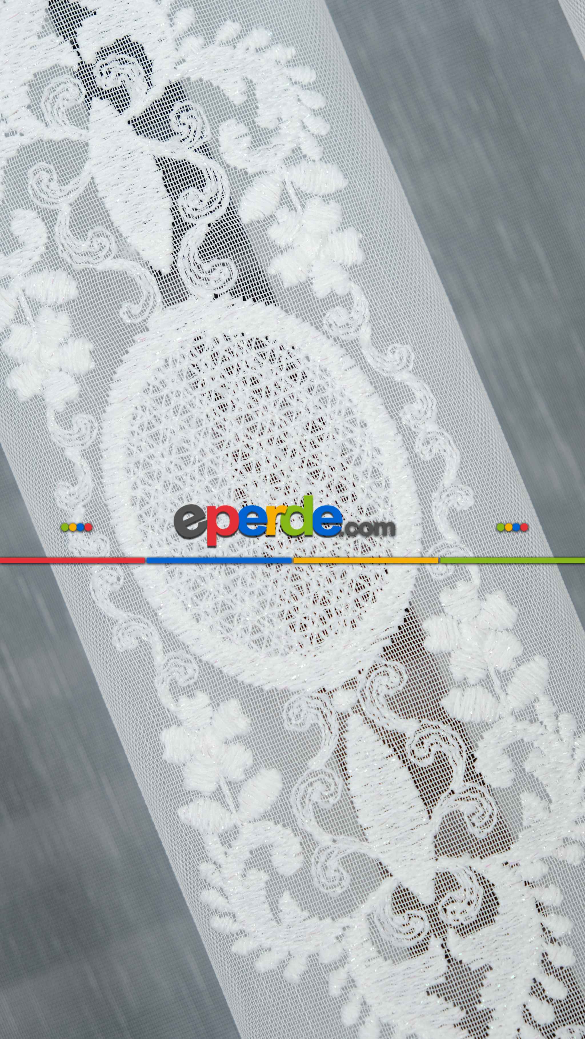 Danimarka | Brillant Ayna Desen Beyaz İşlemeli Tül Perde » Eperde