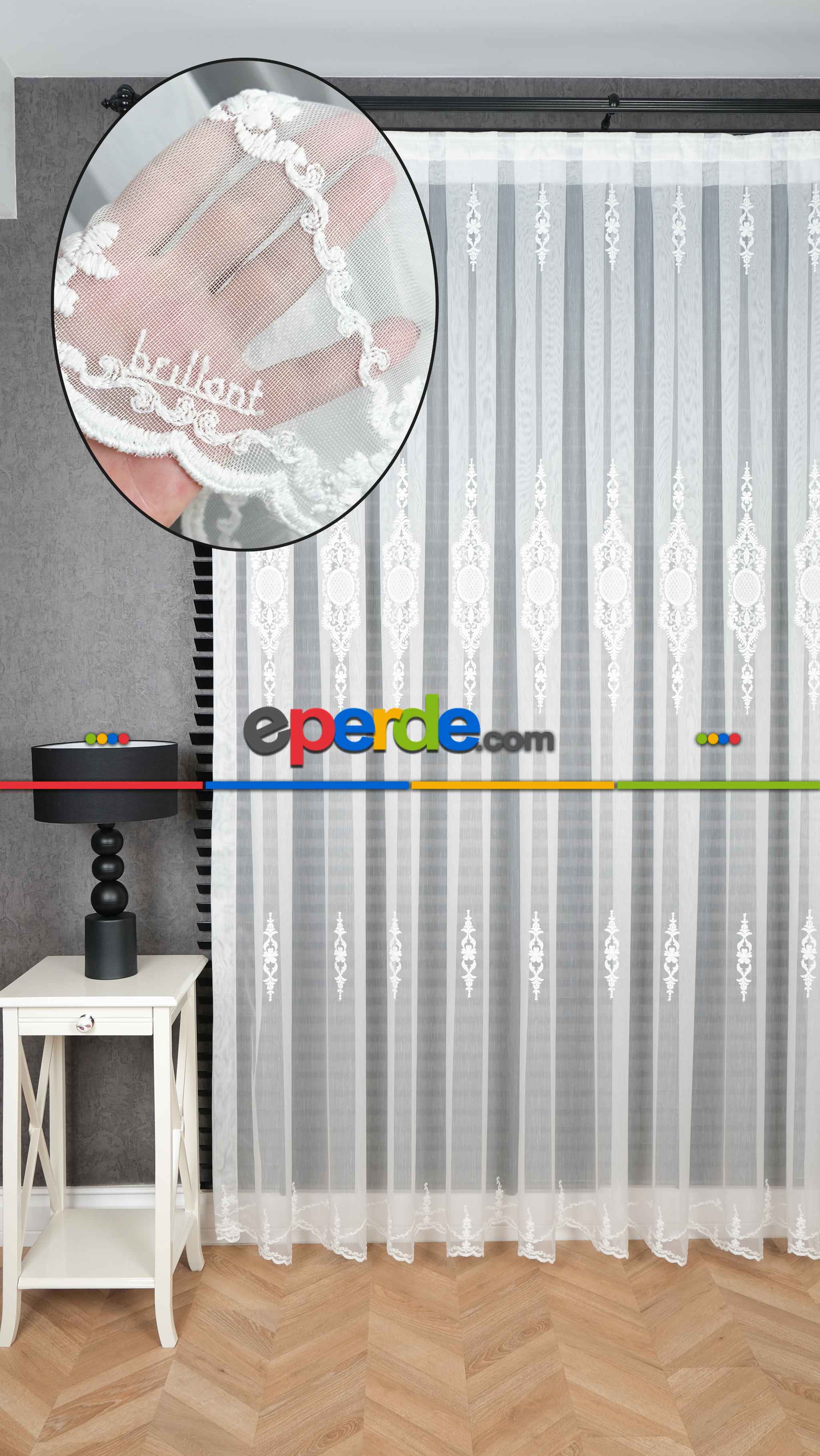 Brillant Ayna Desen Beyaz İşlemeli Tül Perde Ürün Açıklaması
