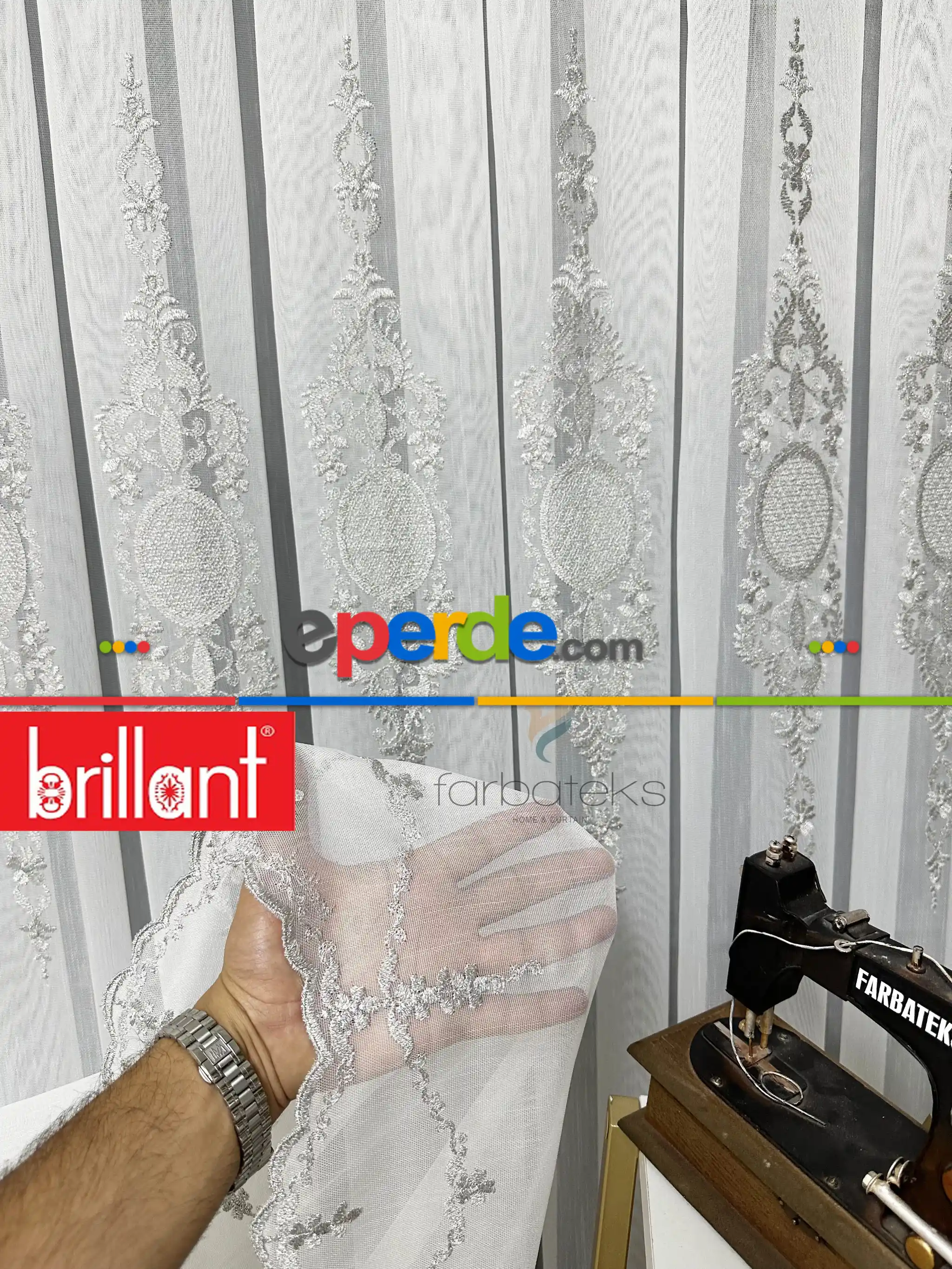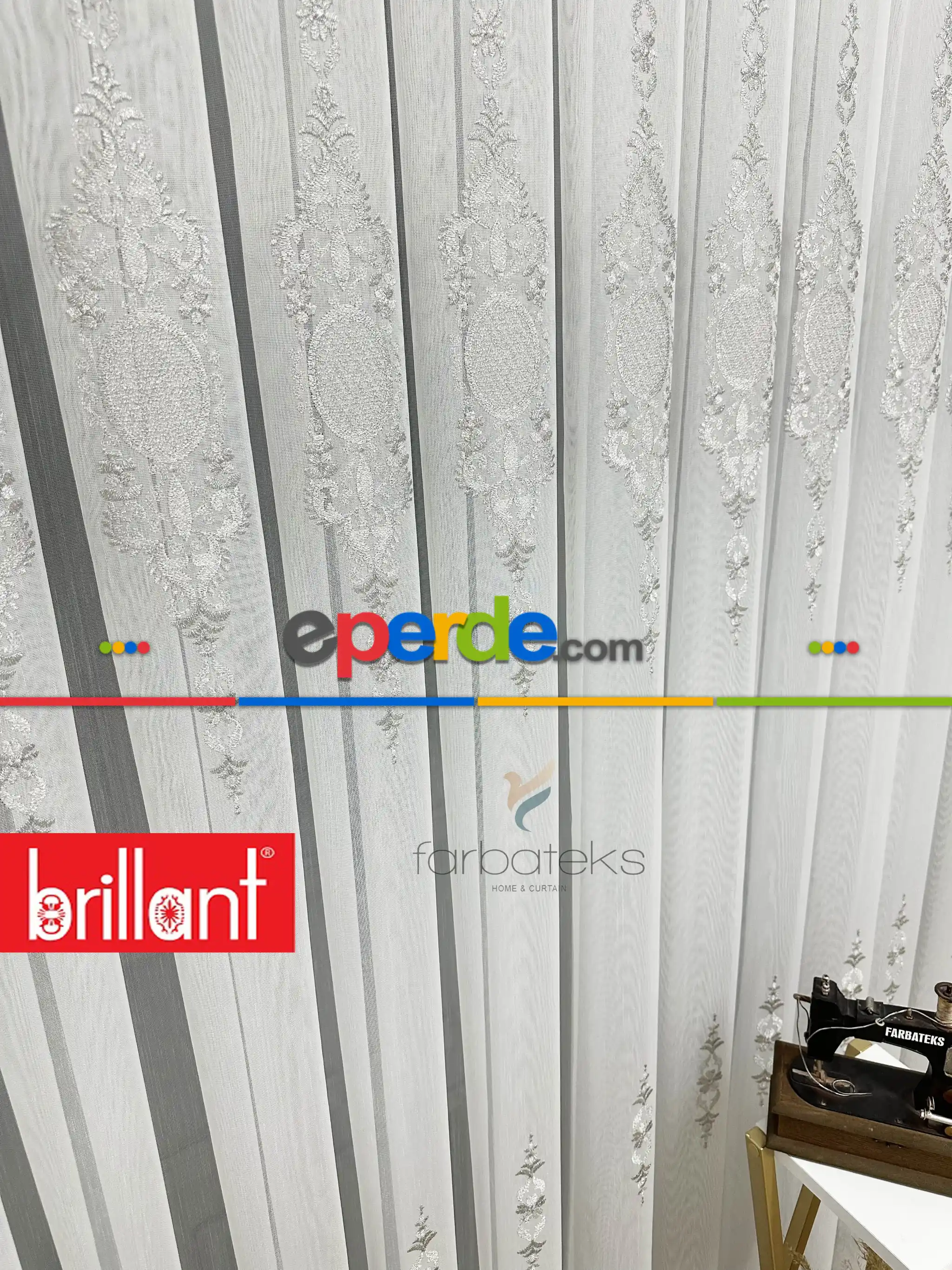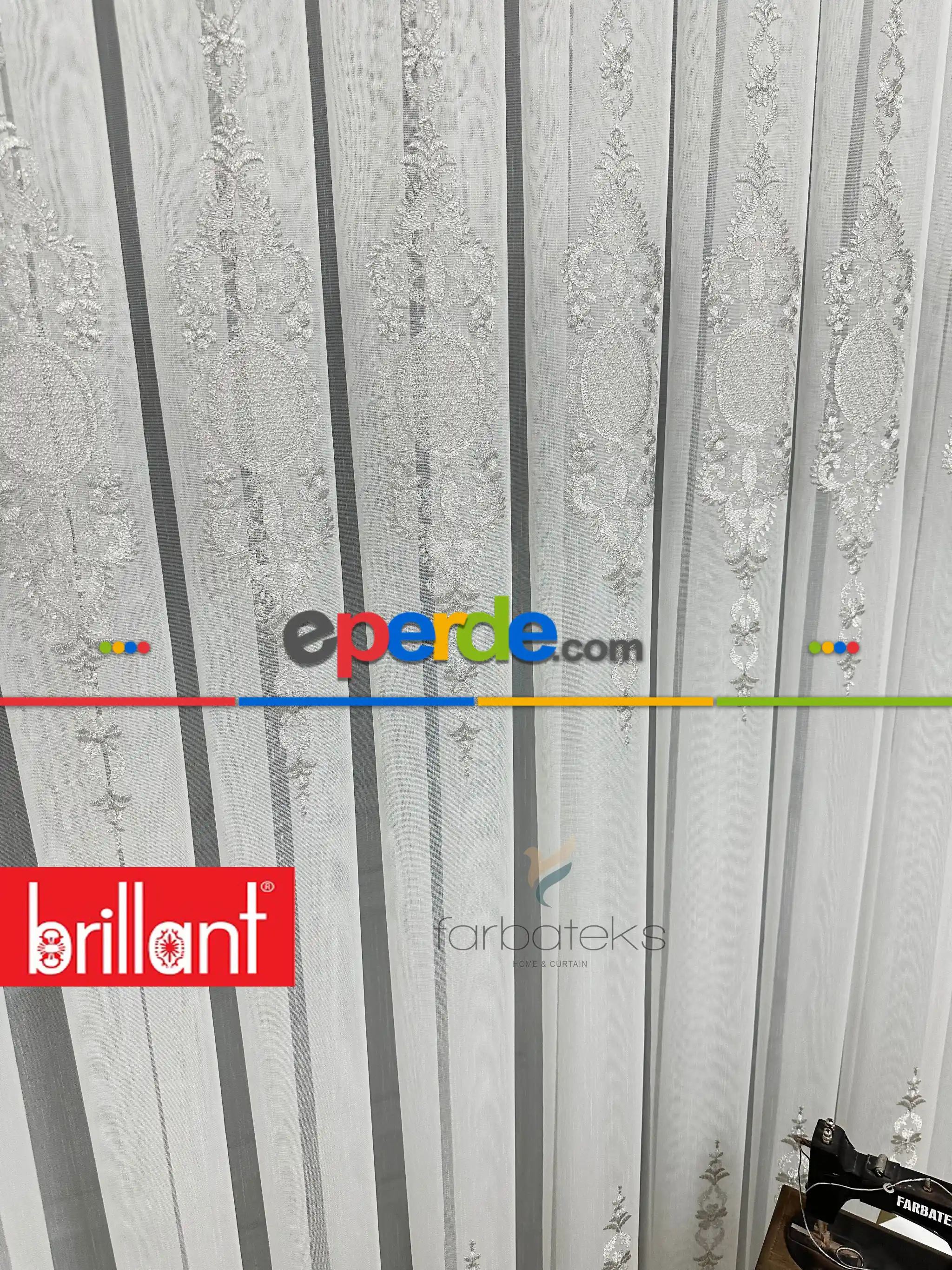 Brillant Ayna Desen Gri İşlemeli Tül Perde Ödeme Seçenekleri