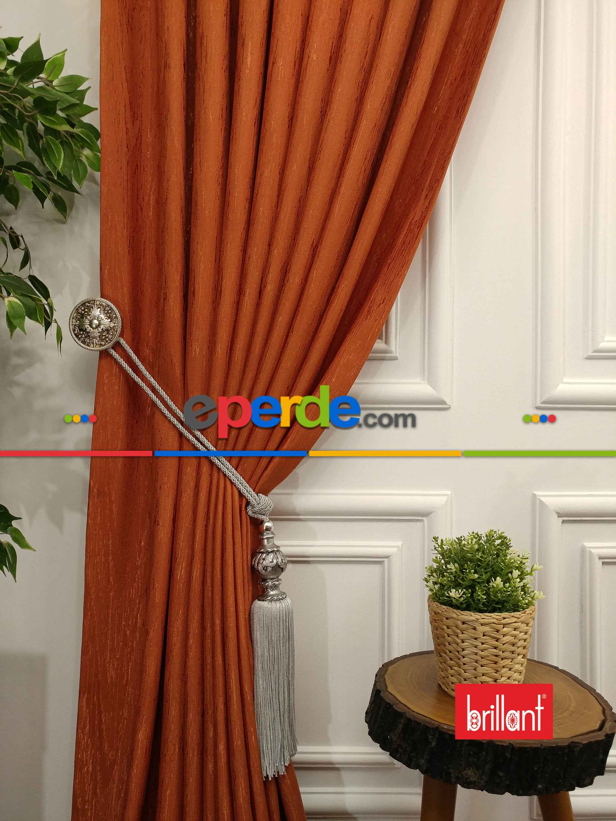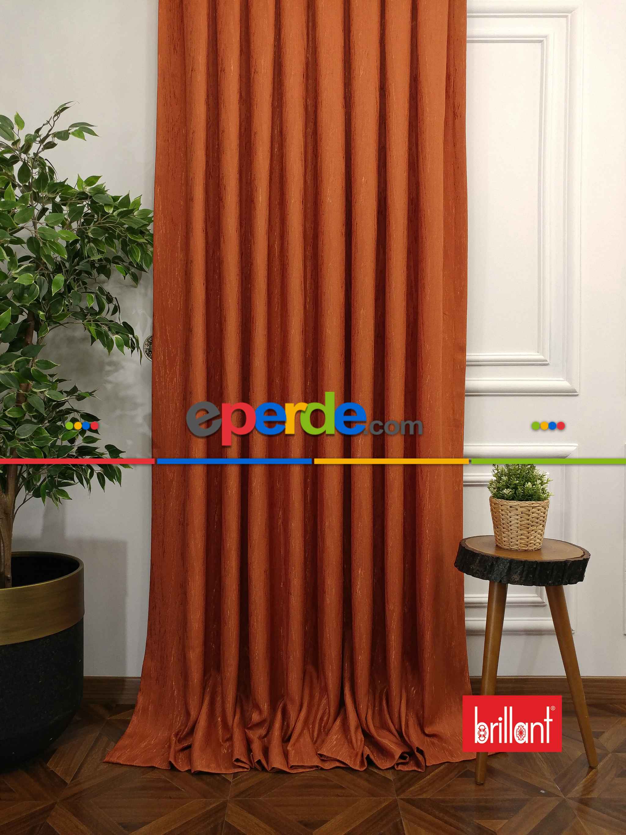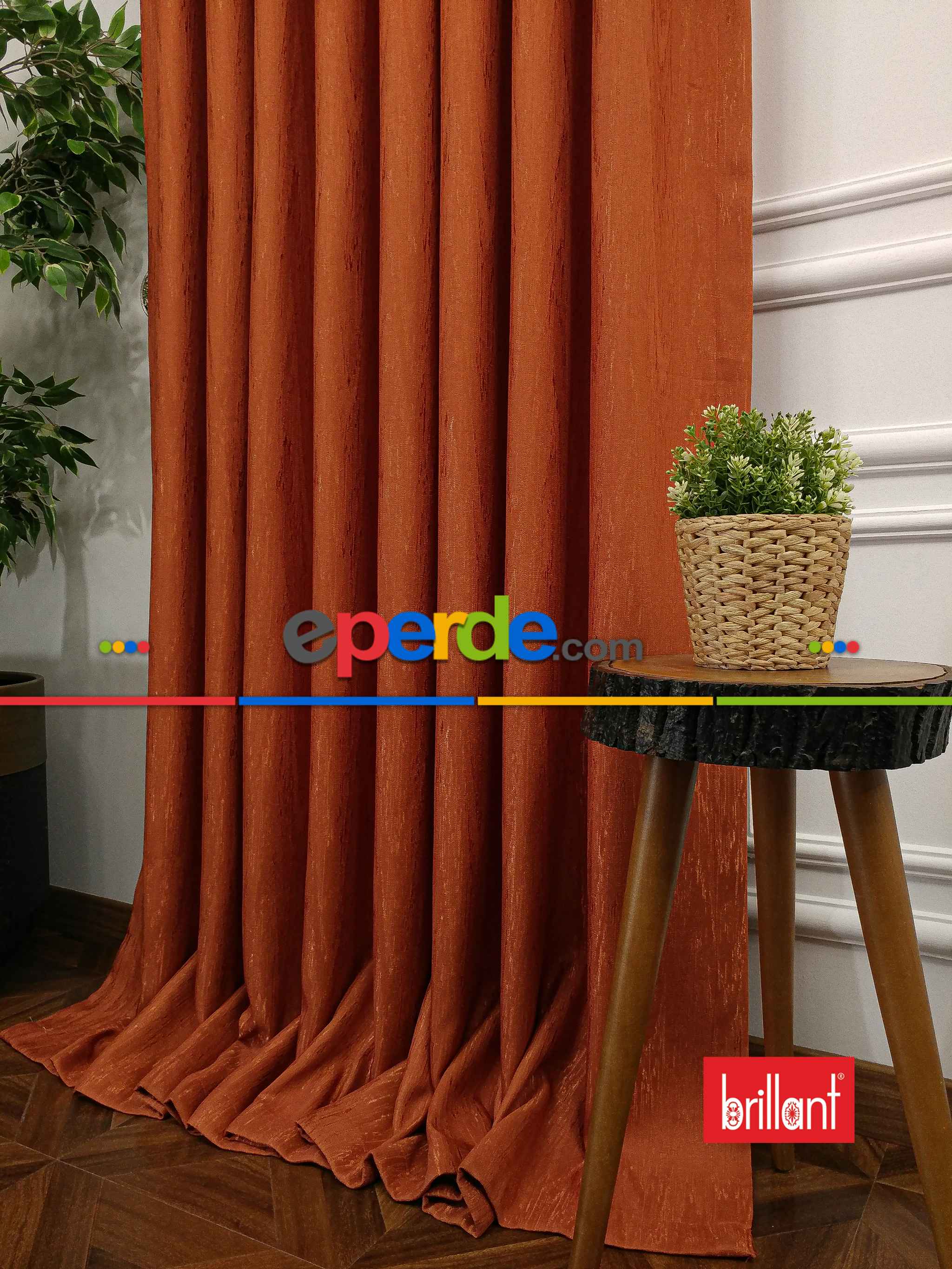 Brillant Jakar Fon Kiremit Renk Düz Fon Perde - Kiremit Rengi