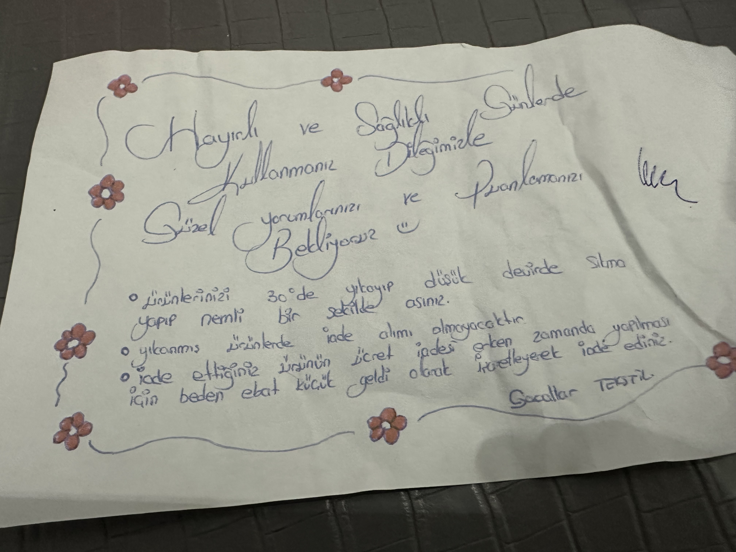 Siparis verirken iyi beklentim yoktu acıkçası ama dikişi gayet özenli,tül kaliteli, durusu cok güzel, cok begendim. El yazisi ile yazilmiş not göndermeleri de ayrica bir güzellik.Başarilarinın devamini dilerim, bol kazançlar.