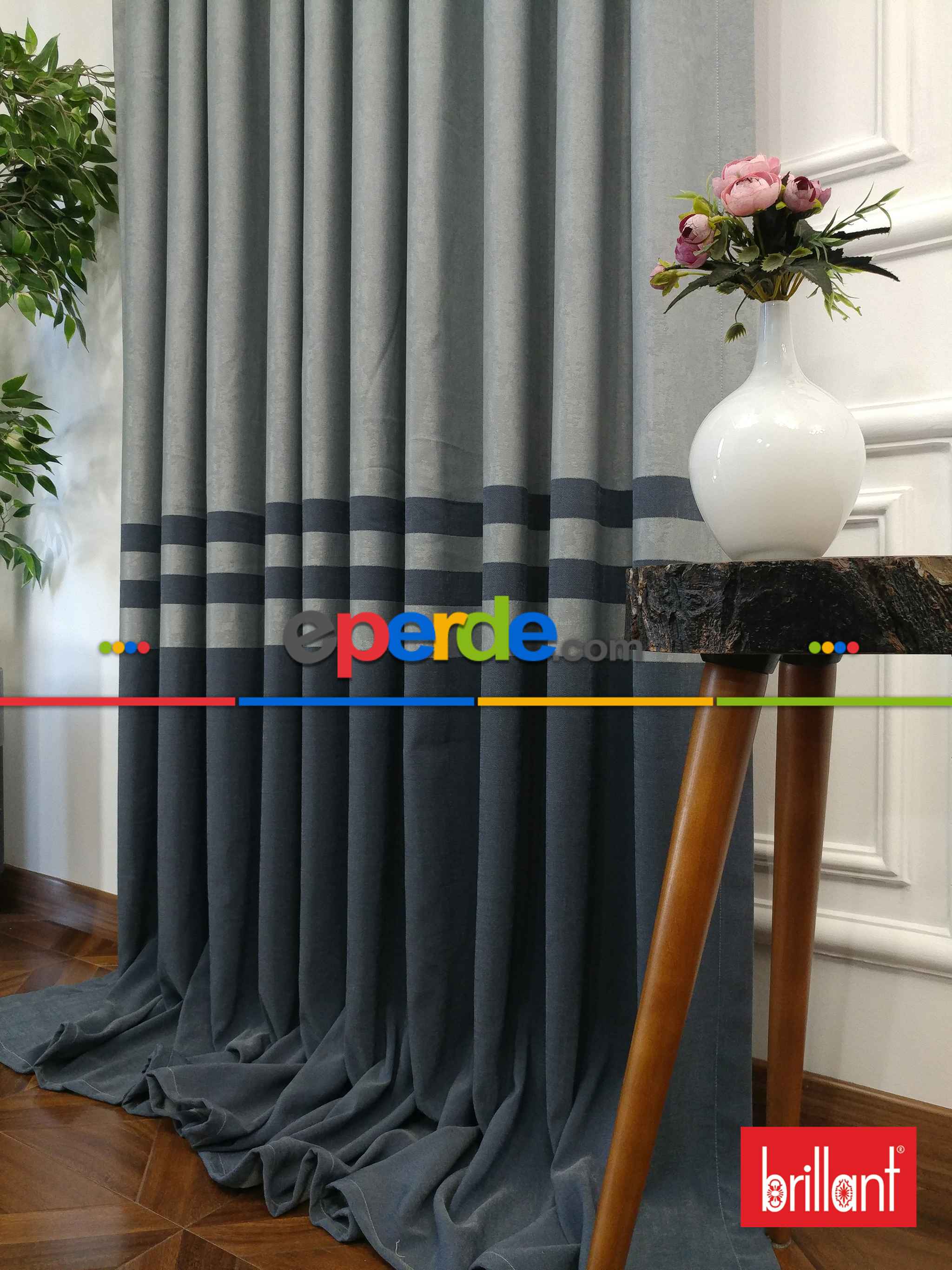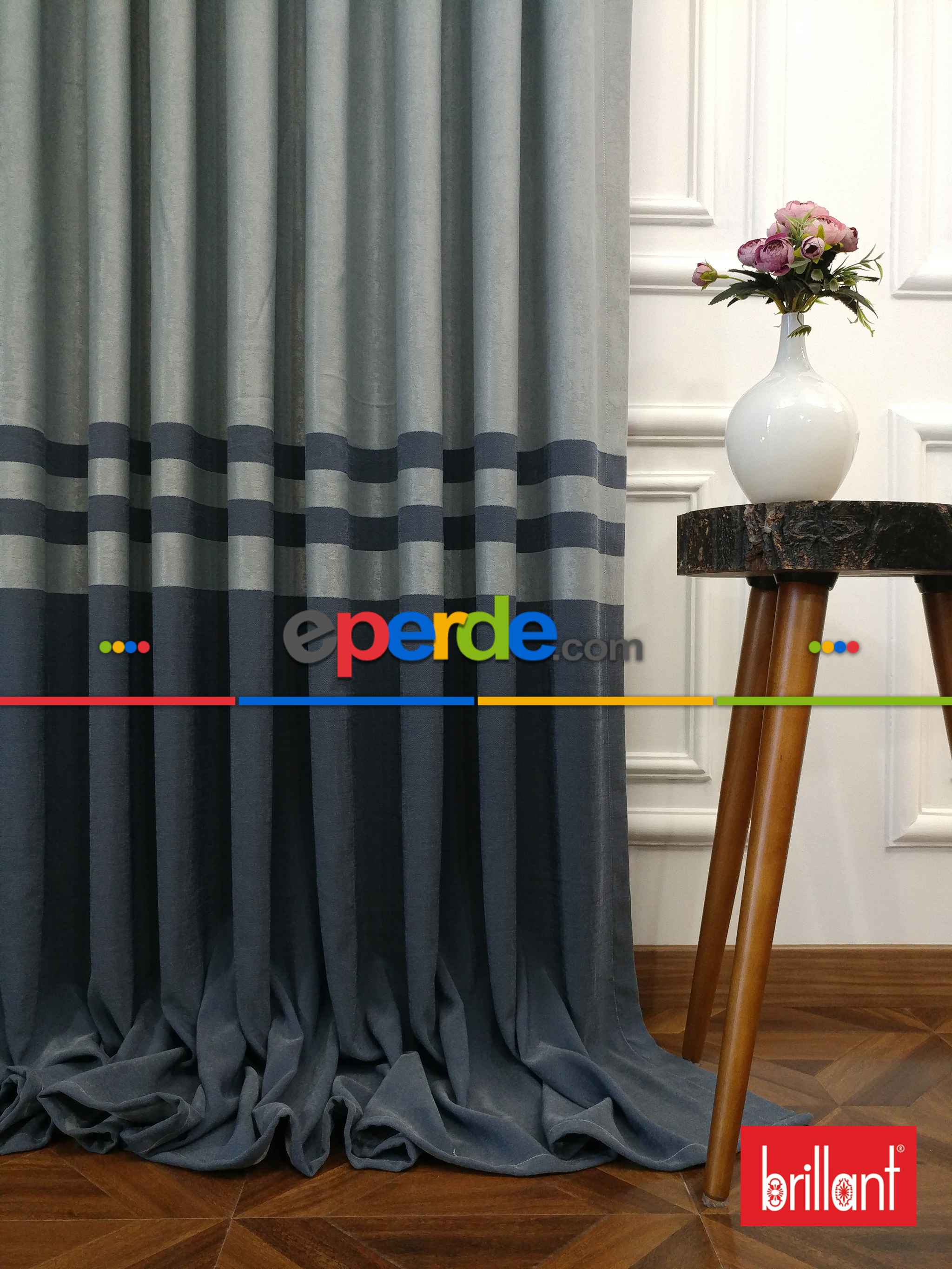 Brillant Süet Pano Fon Perde 180cm Yeni Sezon- Mavi Grimsi-antrasit