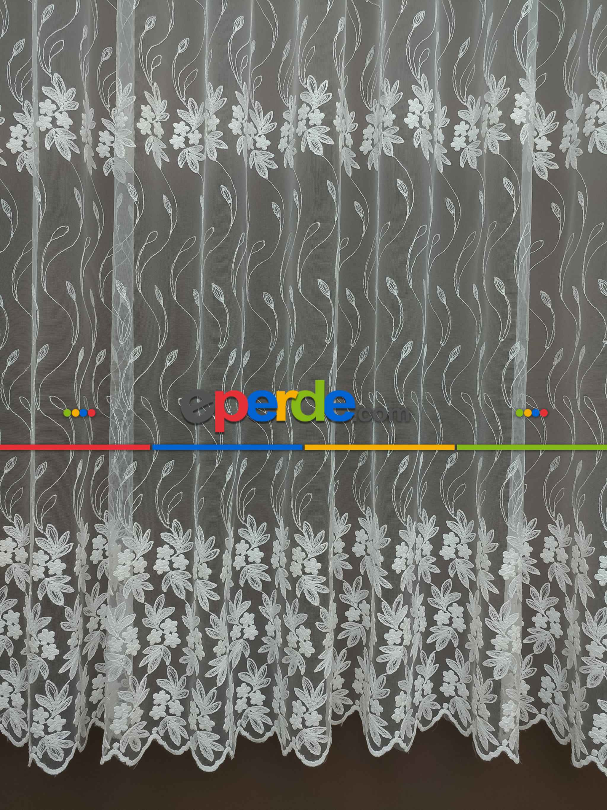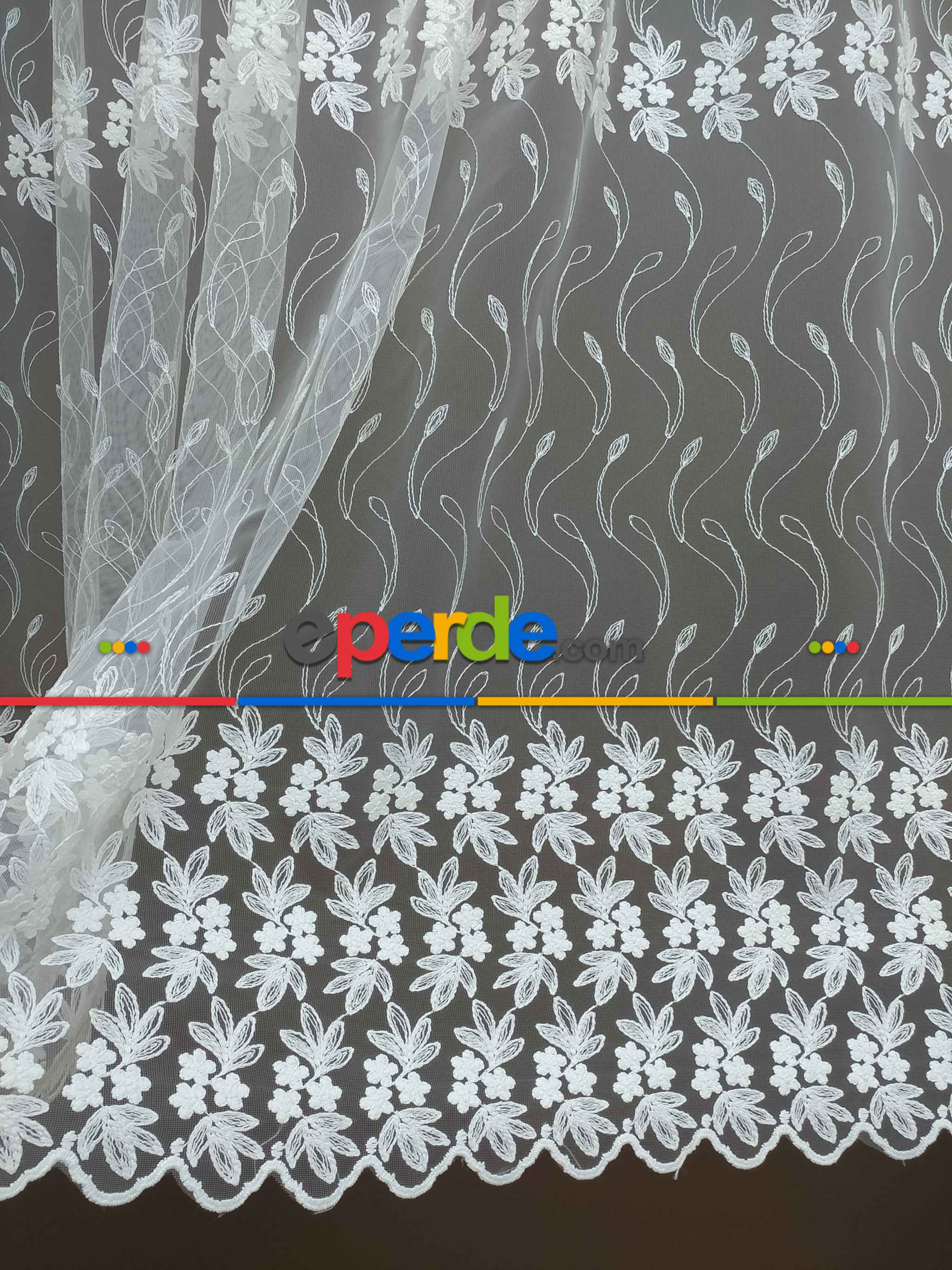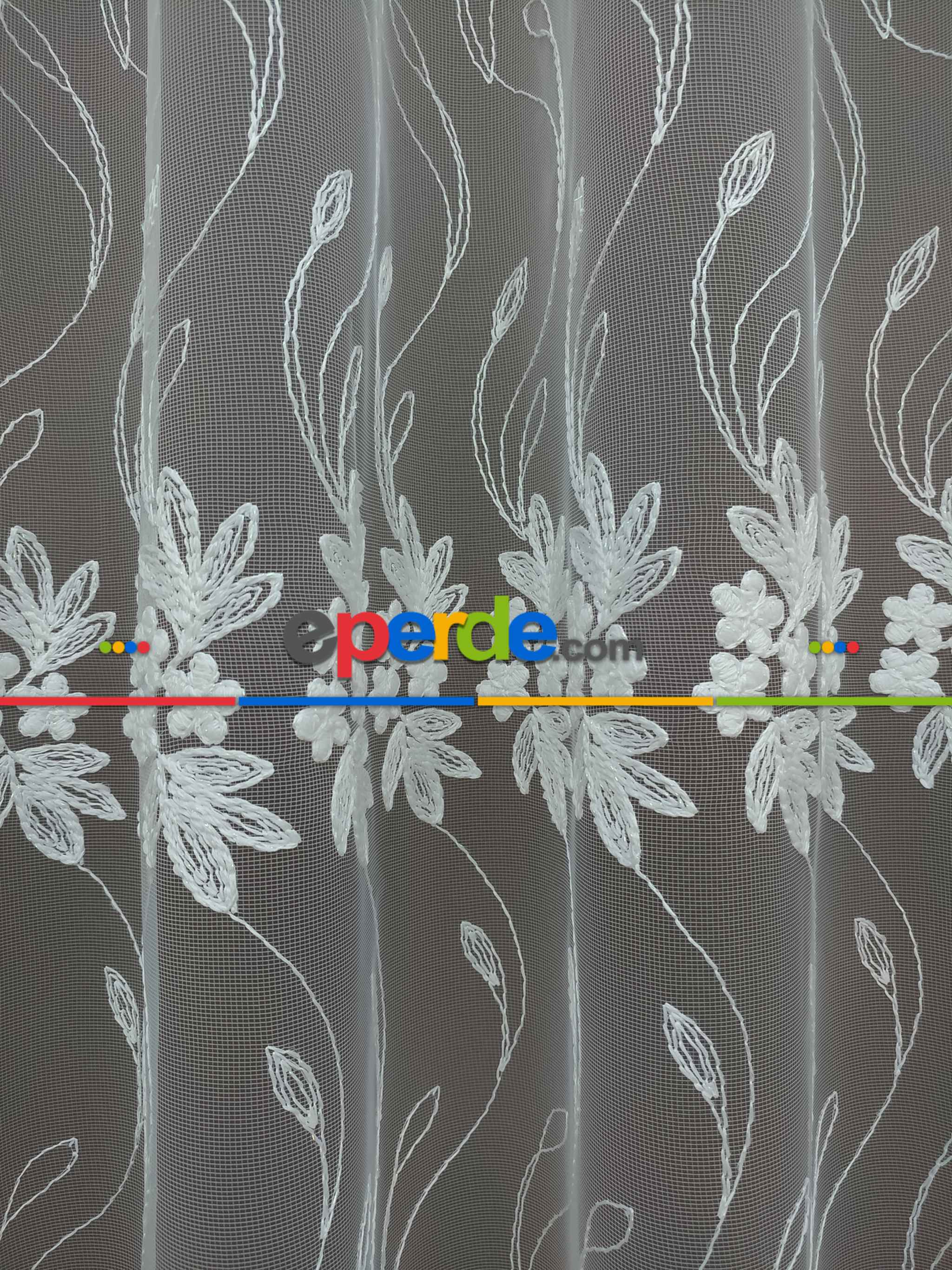Brode İşlermeli Tül Perde Sarmaşık Desen