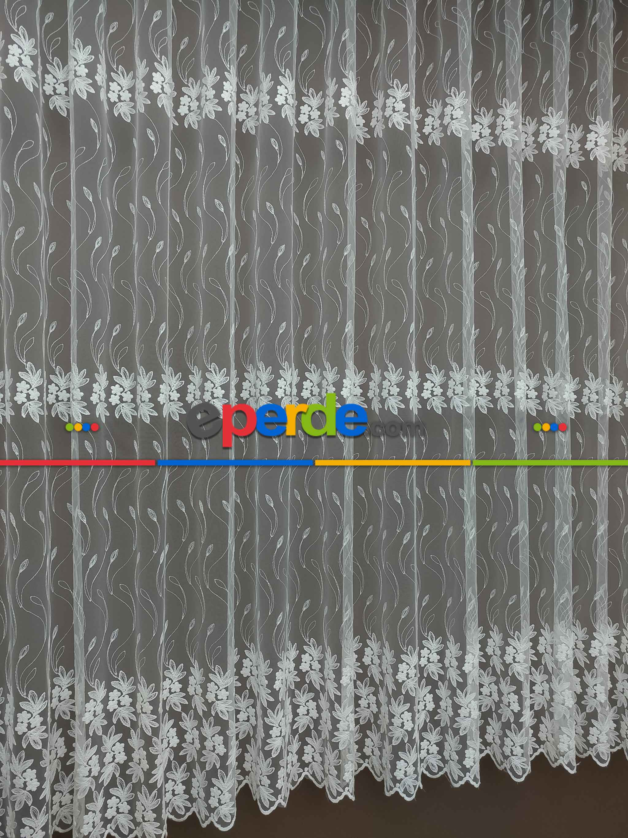 Brode İşlemeli Nakışlı Tül Perde Sarmaşık Desen 280- Ekru