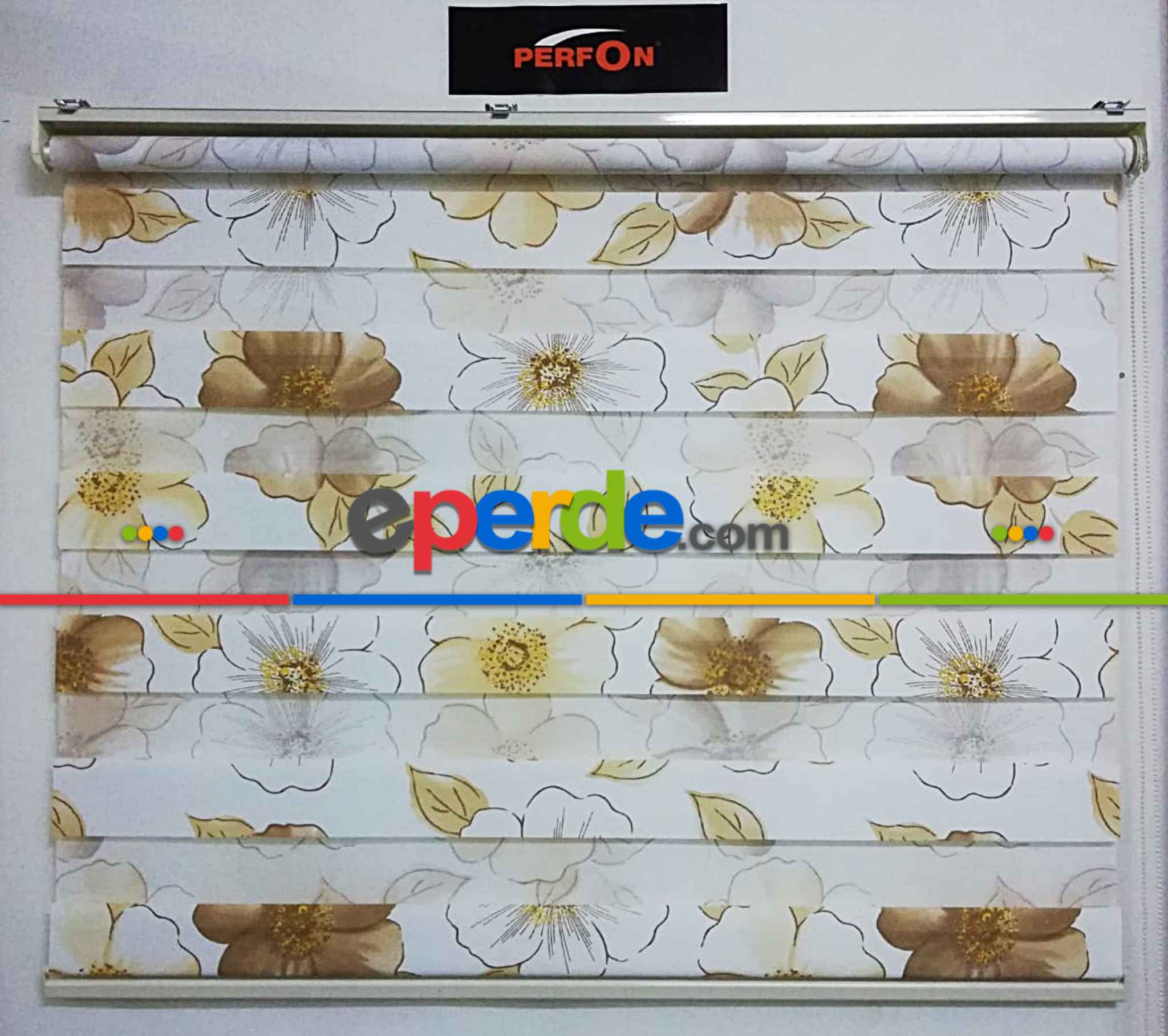 Fransa | Çiçek Desenli Zebra Perde Hardal- Sarı-beyaz-hardal » Eperde