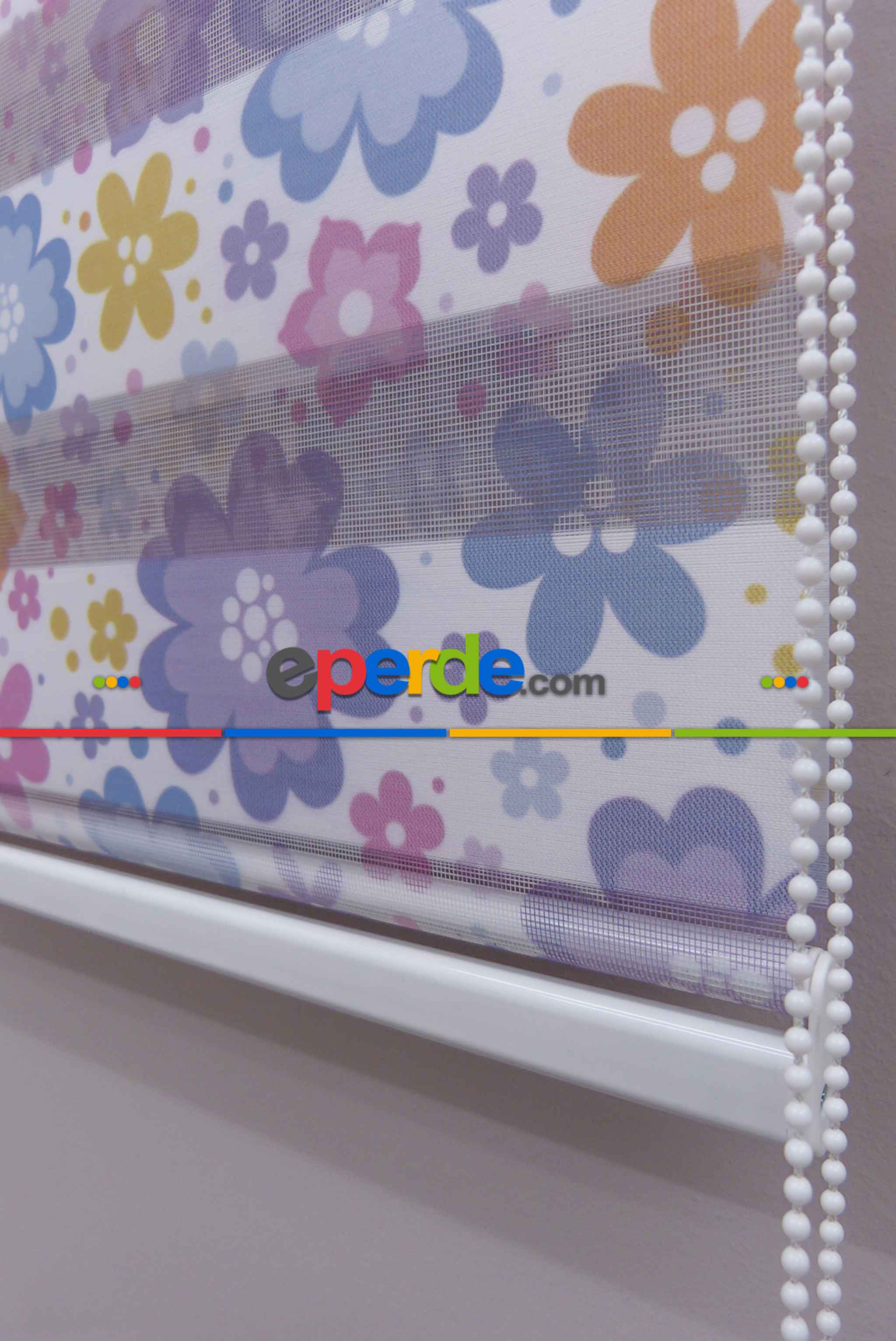 Belçika | Çiçekli Desen Zebra Perde- Mavi-sarı-pembe » Eperde