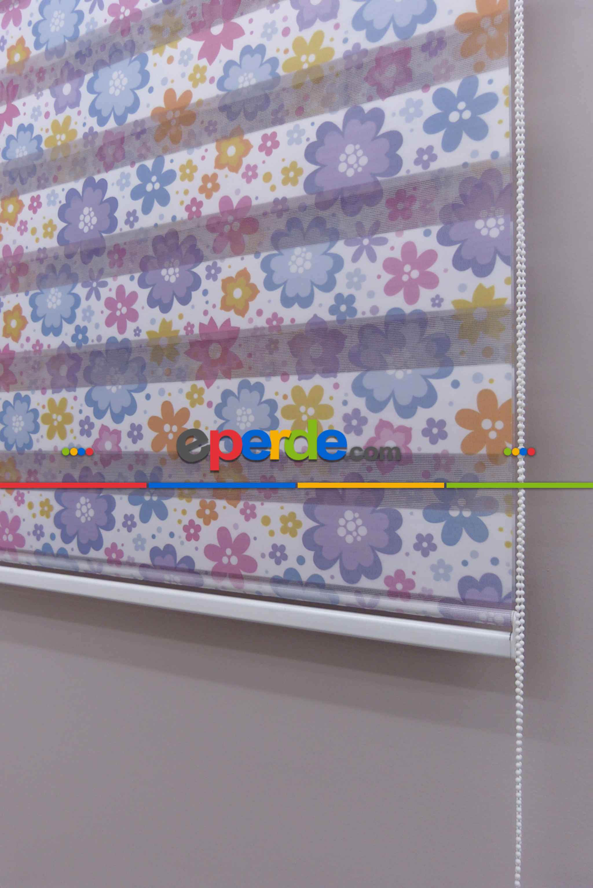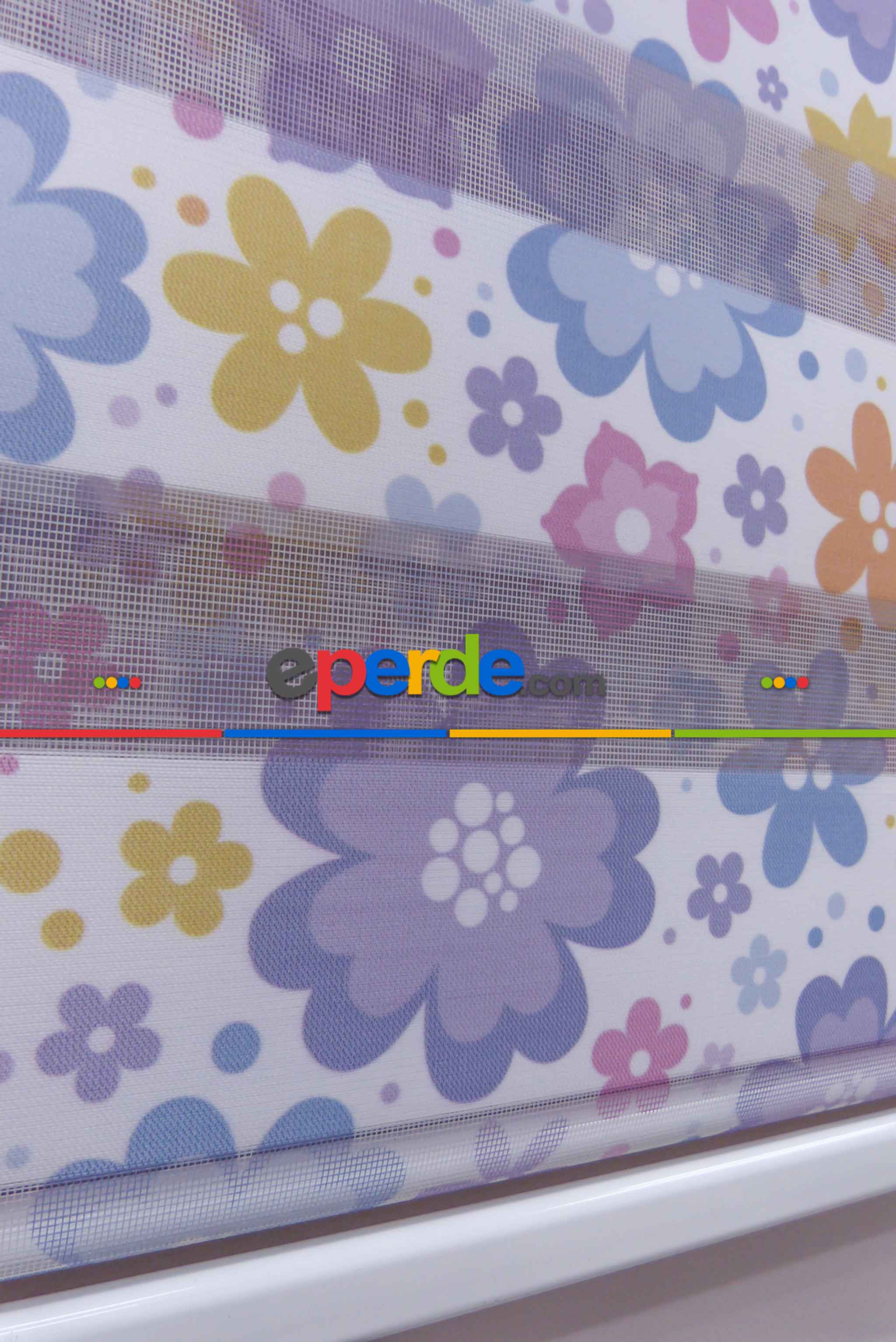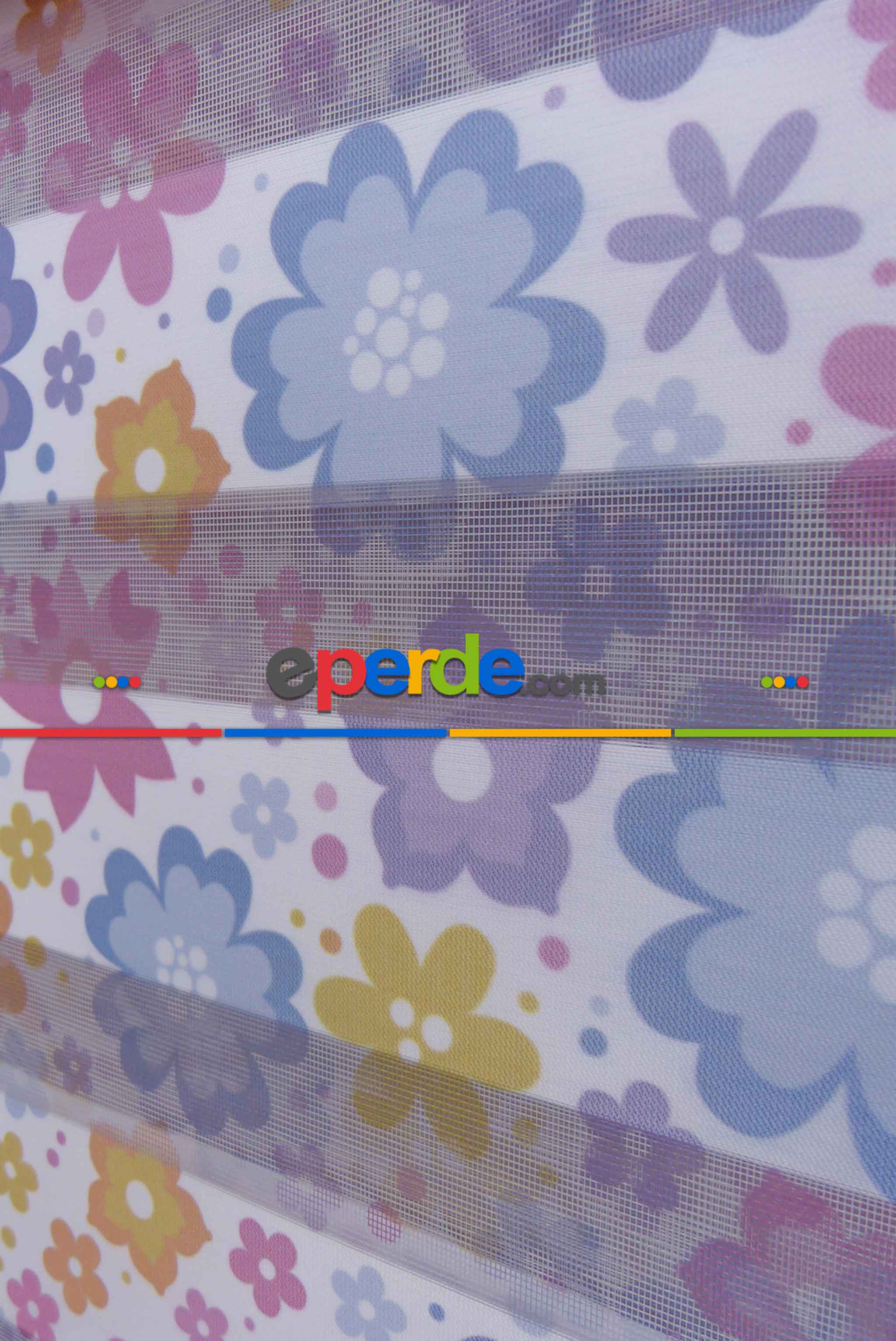 Çiçekli Desen Zebra Perde- Mavi-sarı-pembe Ürün Açıklaması