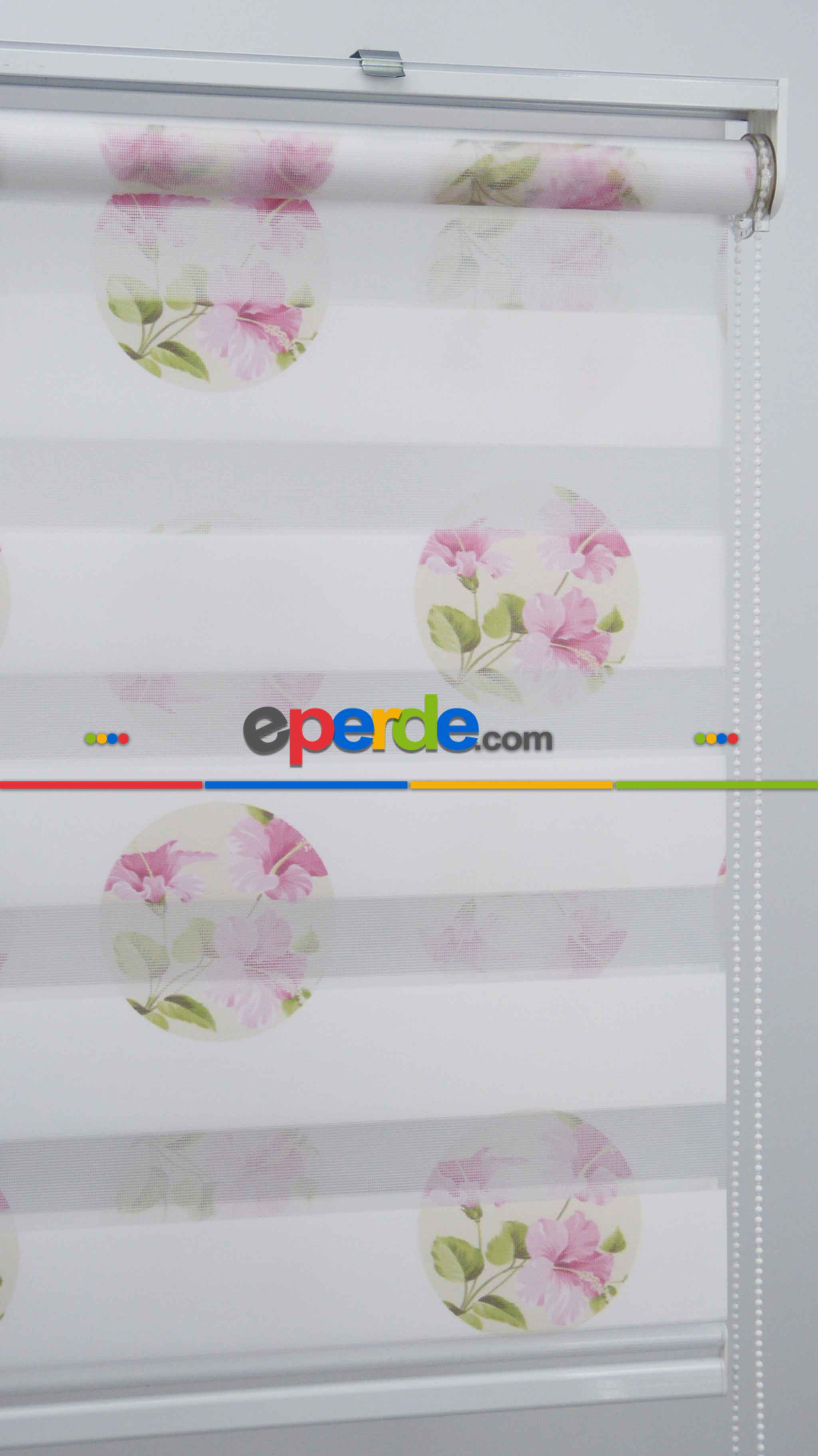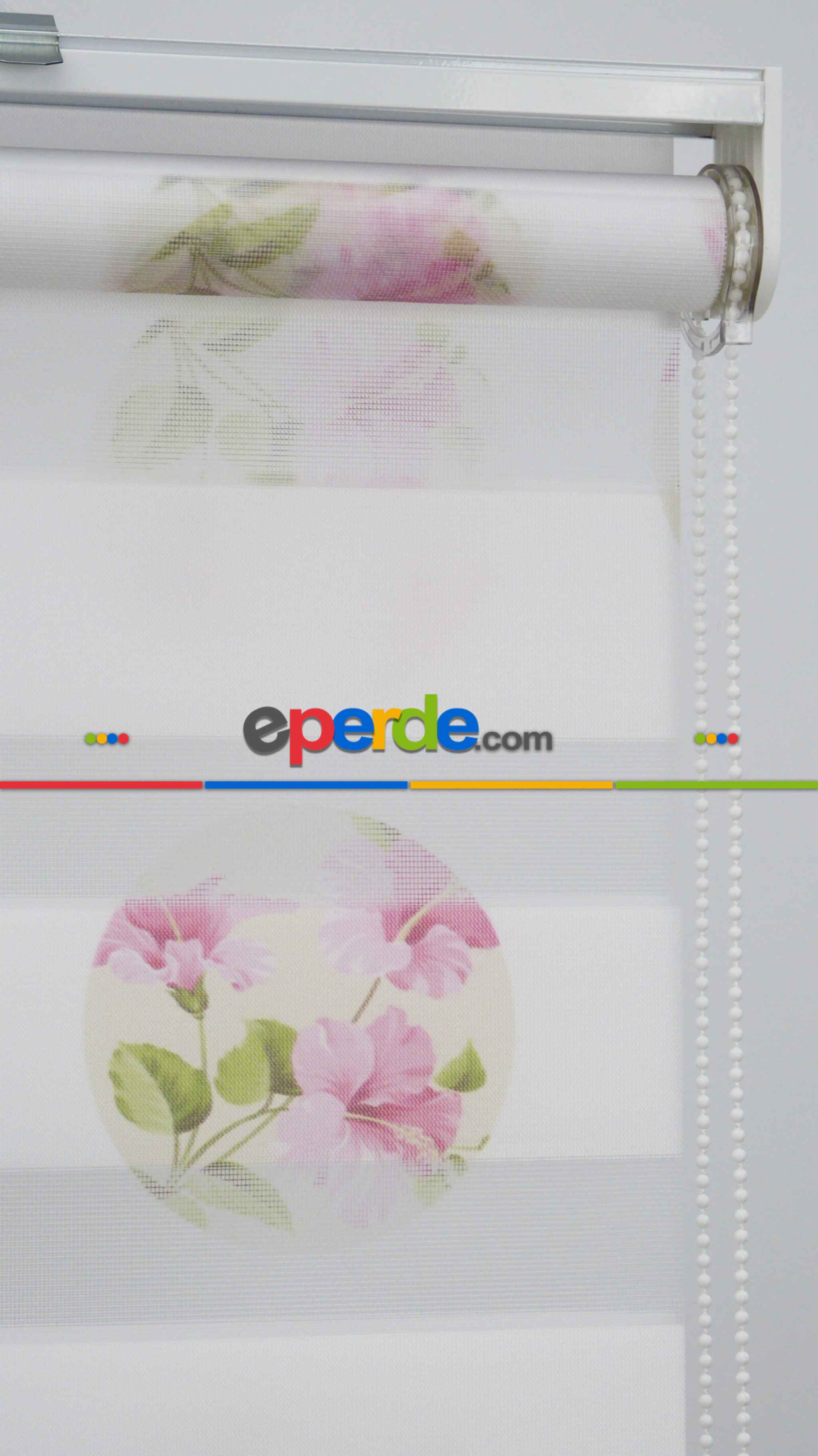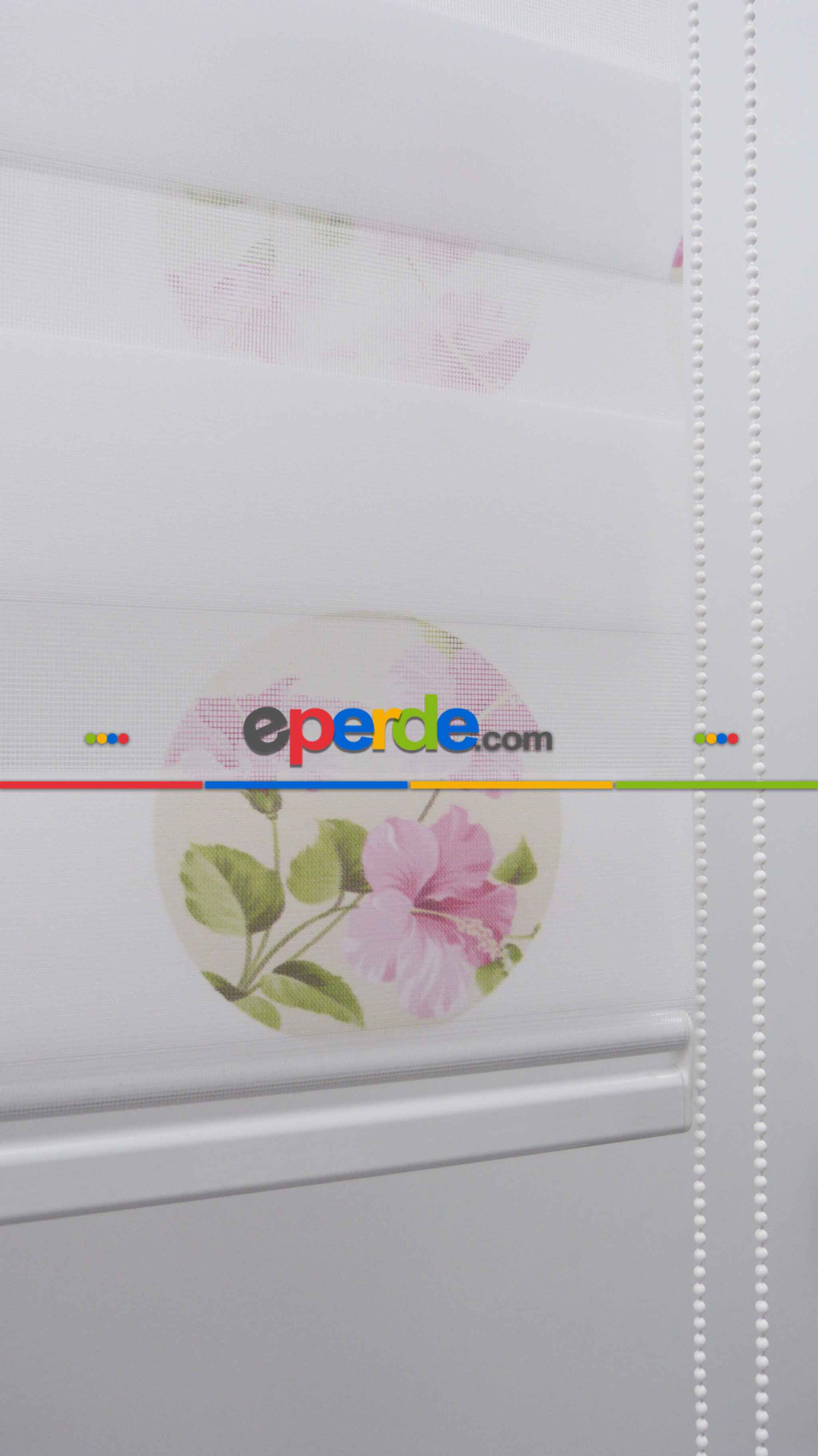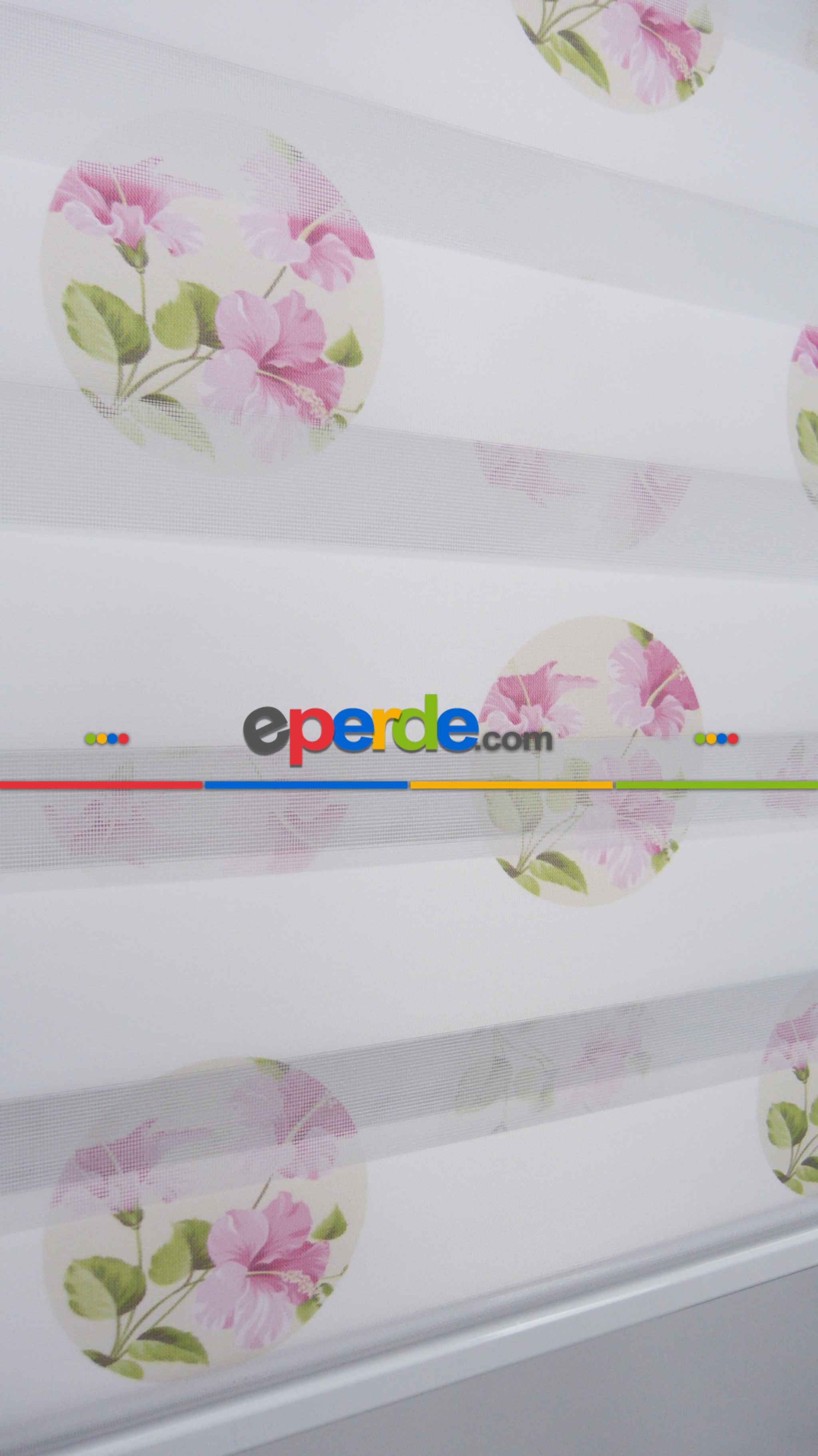 KKTC | Çiçekli Desen Zebra Perde- Pembe-beyaz Buz Beyazı » Eperde