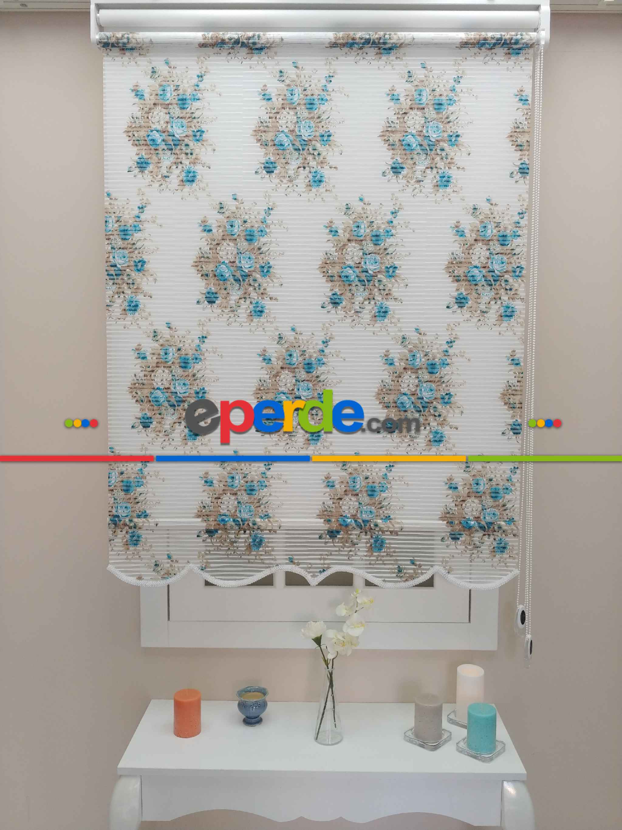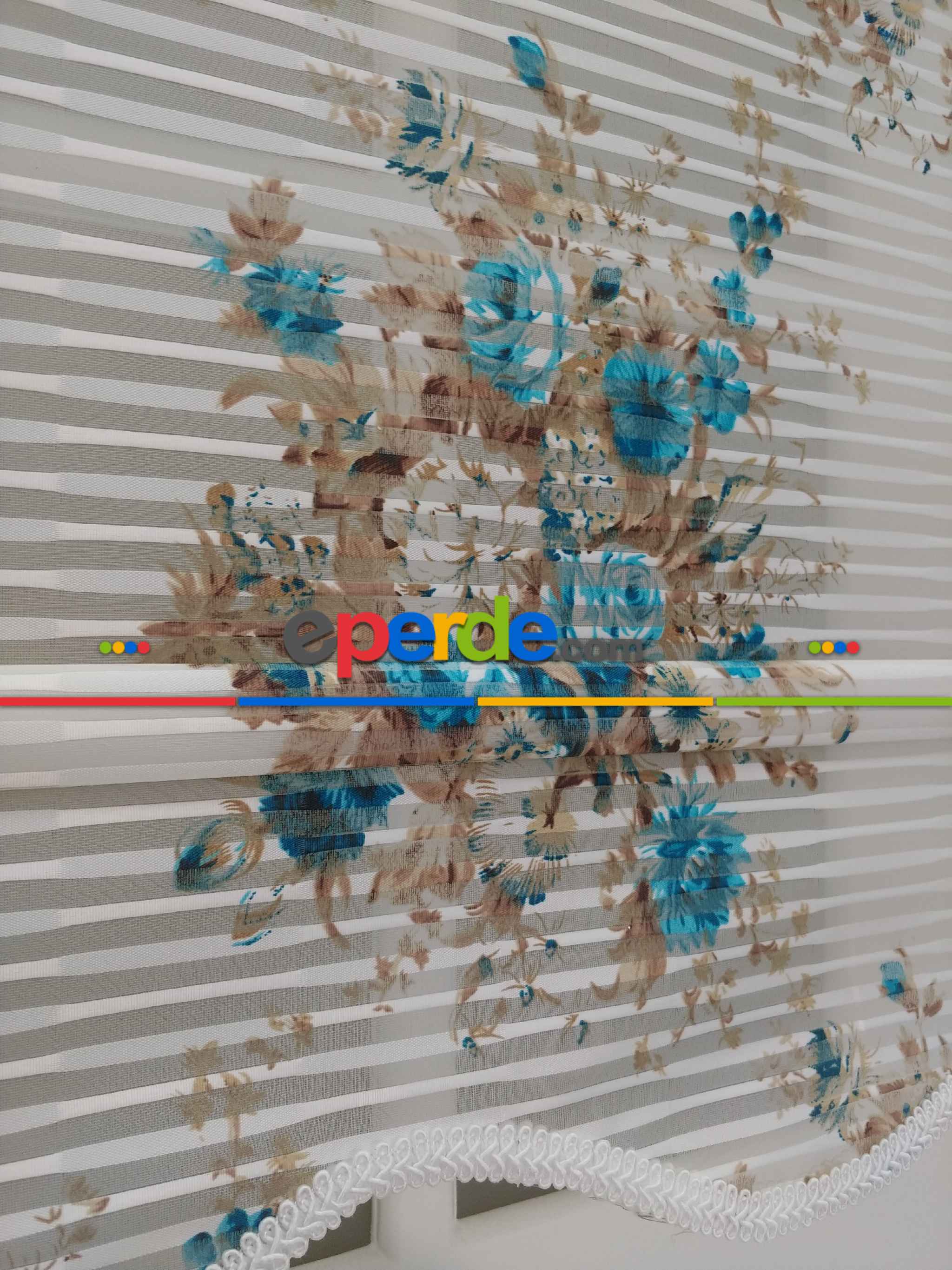 Çift Sistem Tül Stor Perde - Cattivo Series 1633- Beyaz-kahve-turkuaz Ödeme Seçenekleri