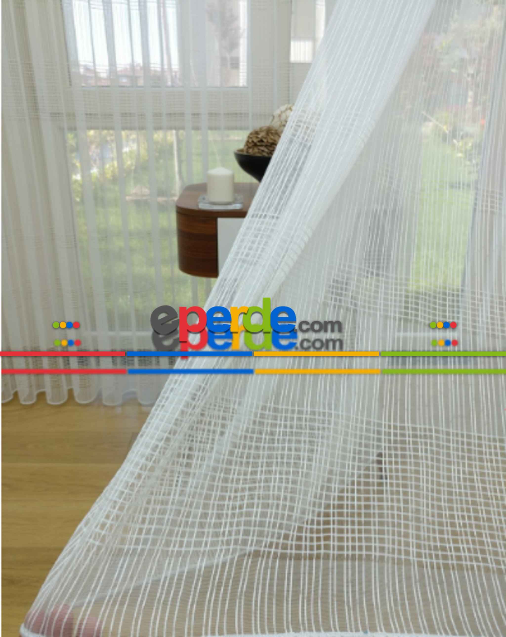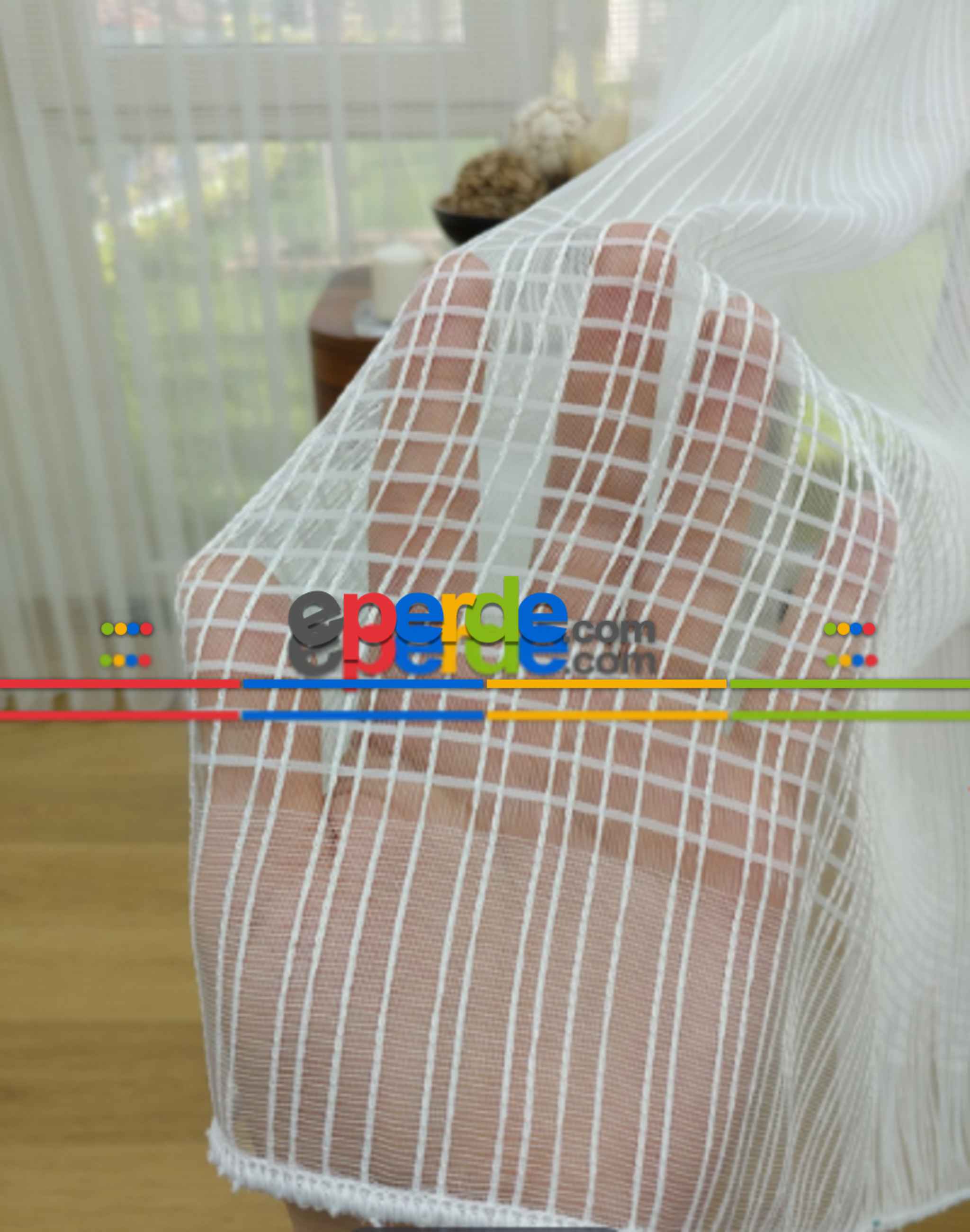 Çizgili Beyaz Tül Perde- Ekru - Kurşunlu Tül Ödeme Seçenekleri