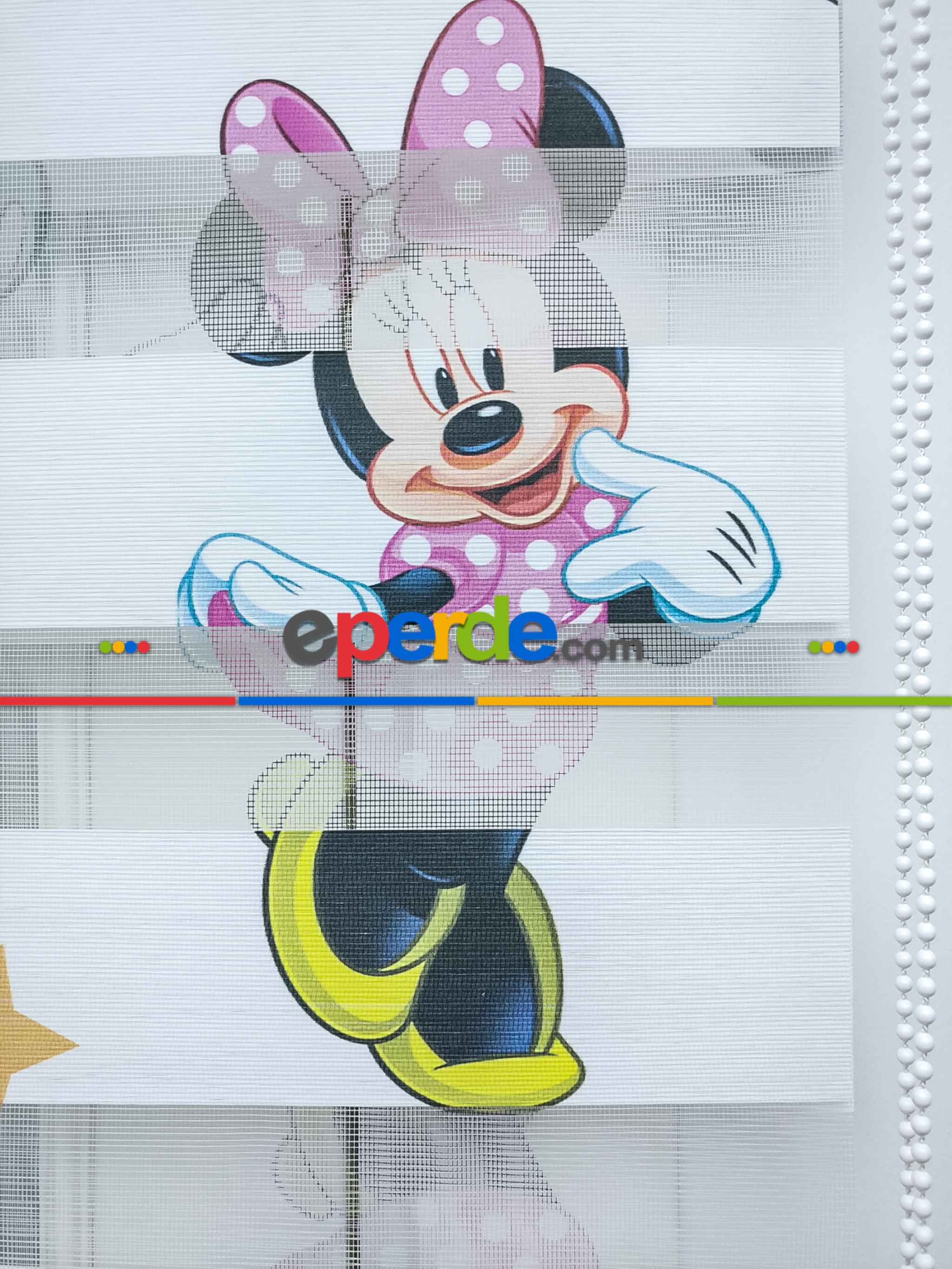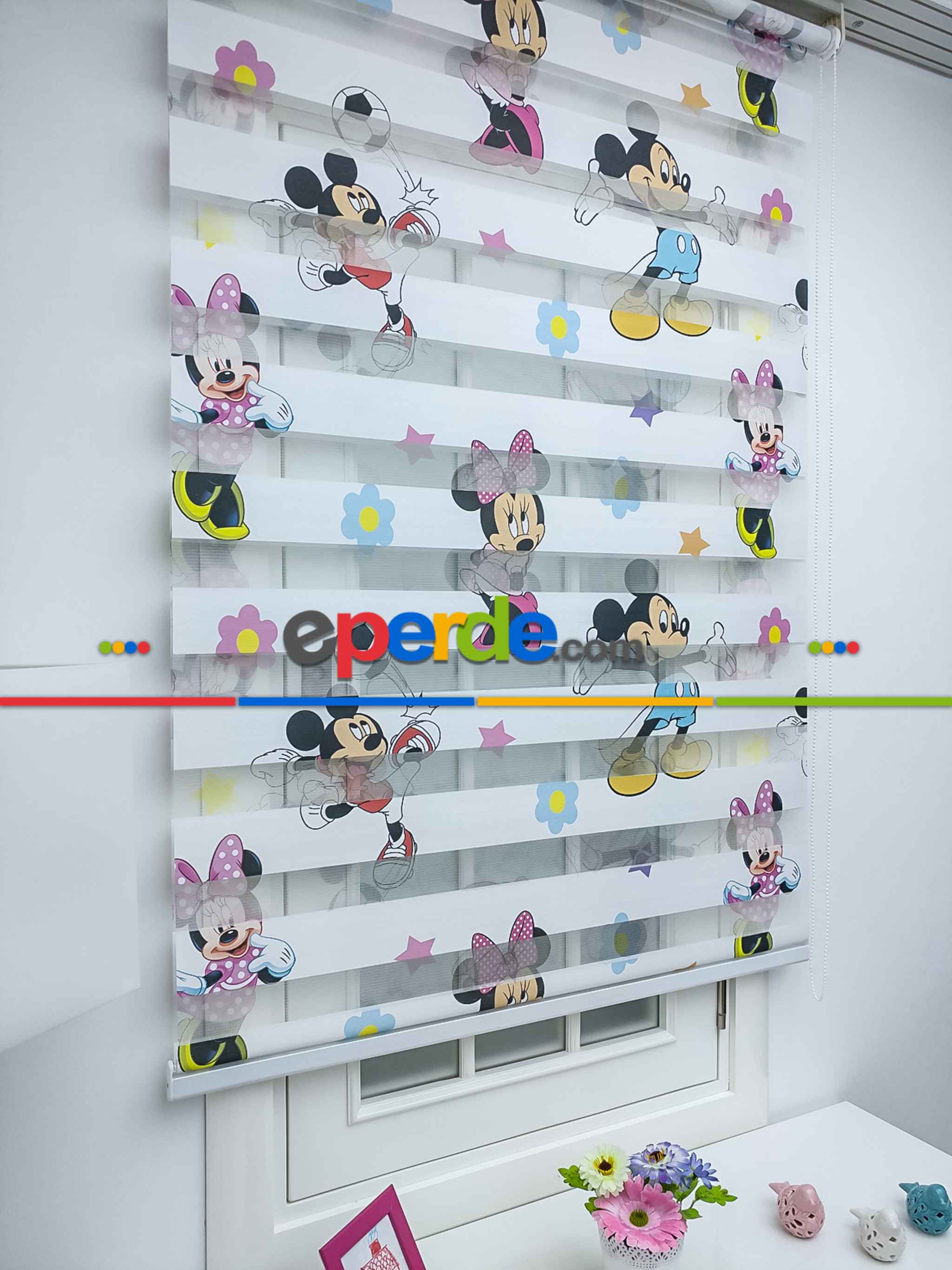 Mikie Mouse ve Minnie Mouse Desenli Zebra Perde Ürün Açıklaması
