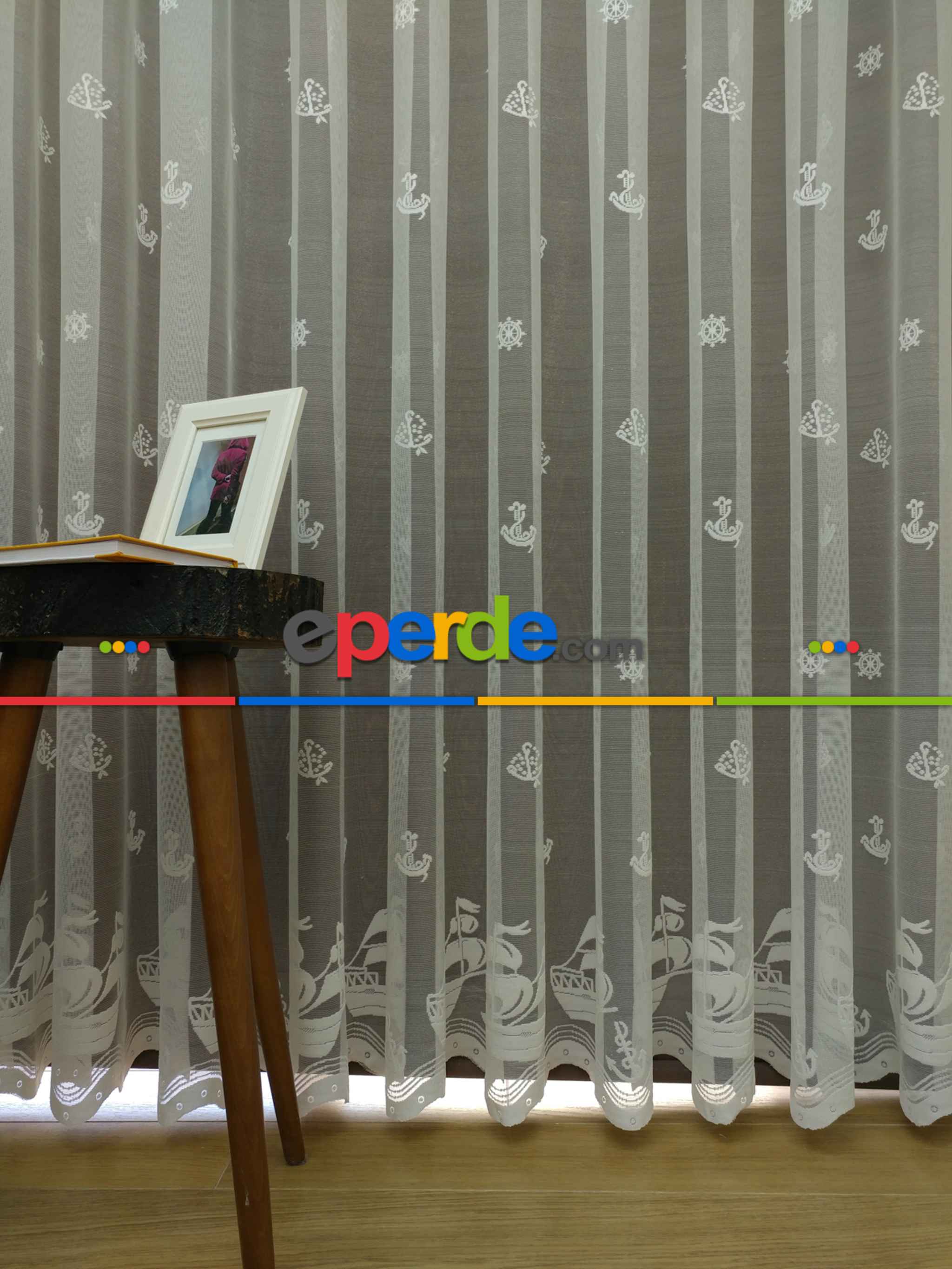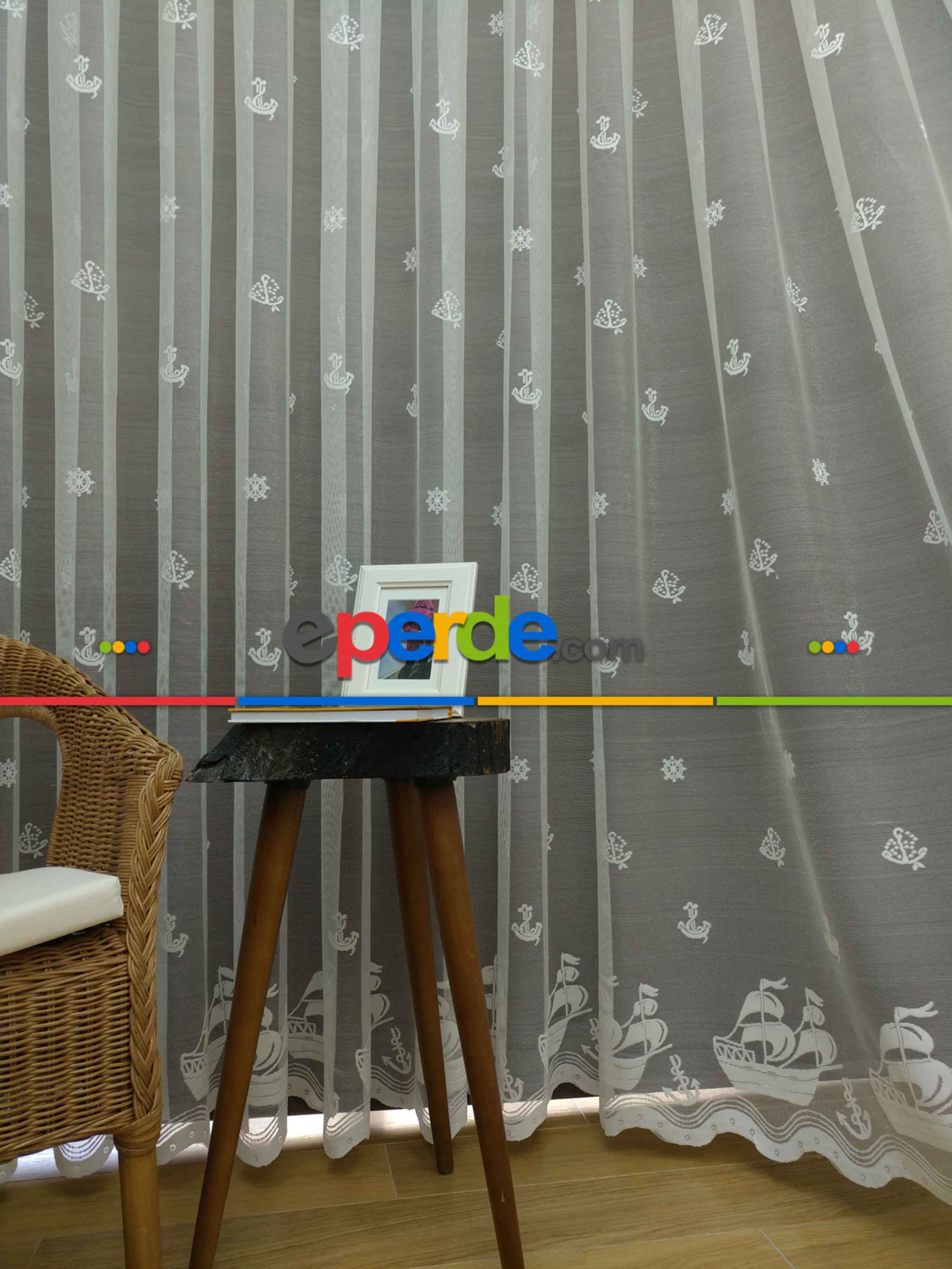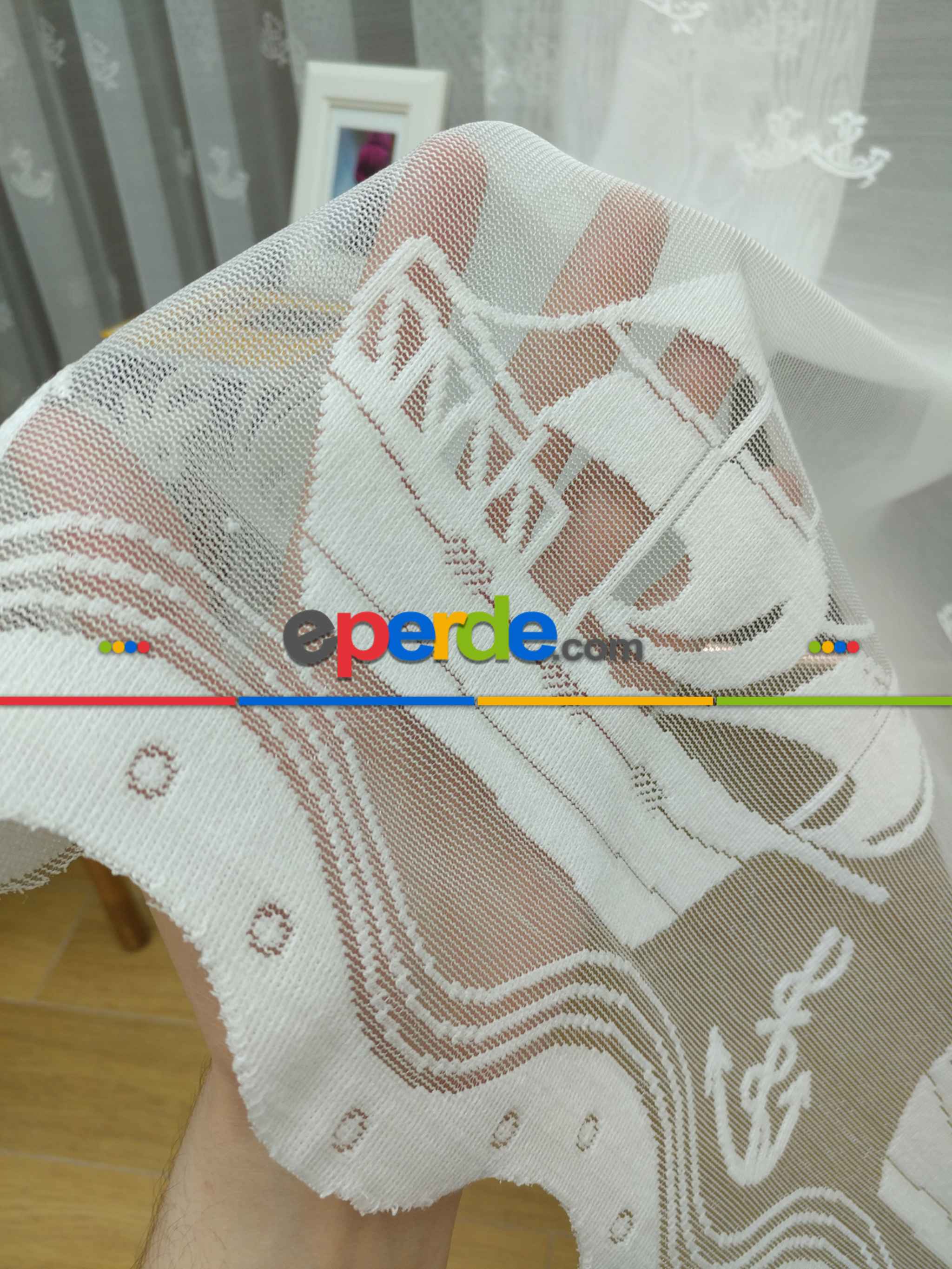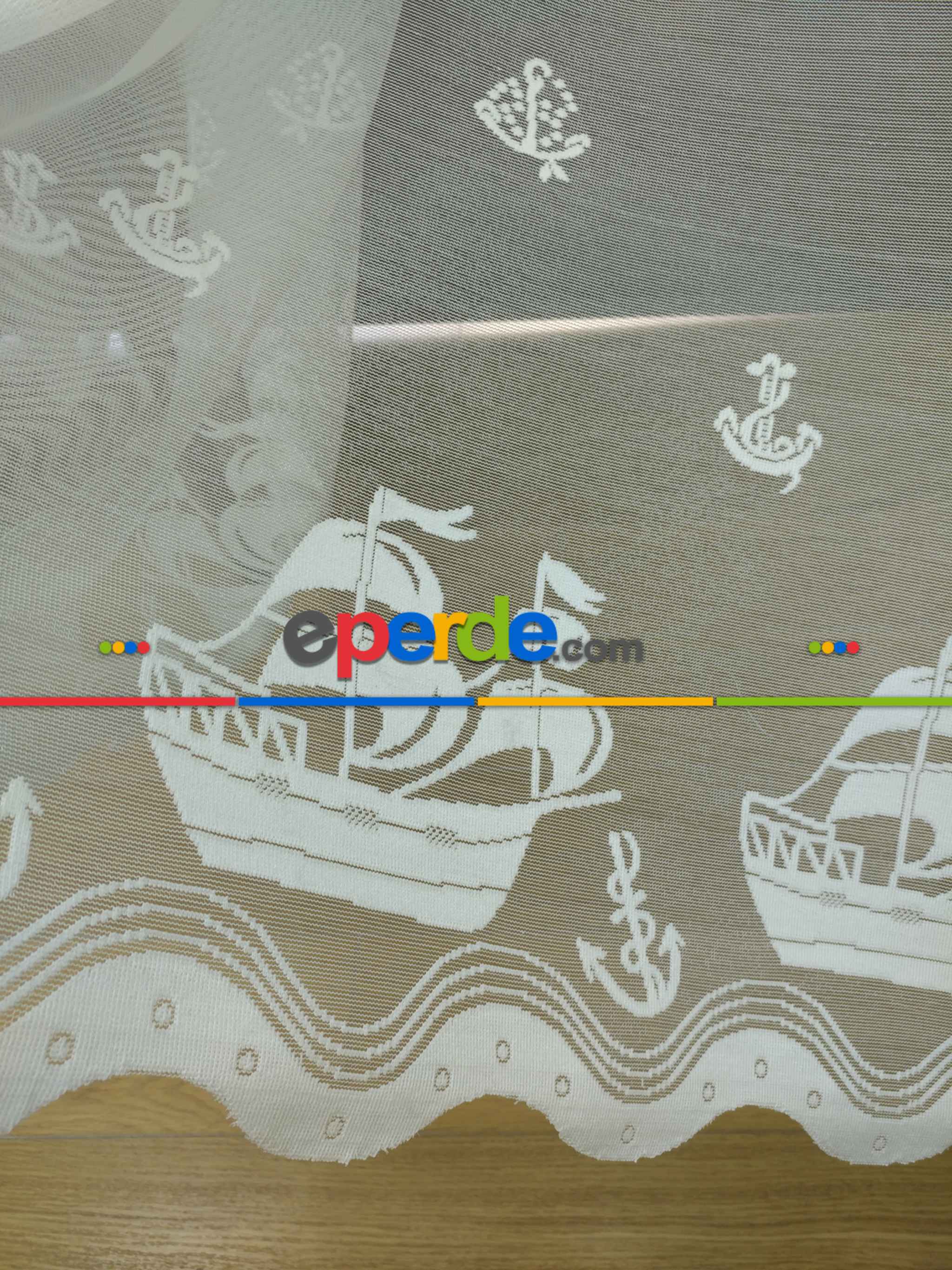 Çocuk Odası Tül Perde - Denizci Desen Çapalı Tül Perde- Ekru Ürün Açıklaması