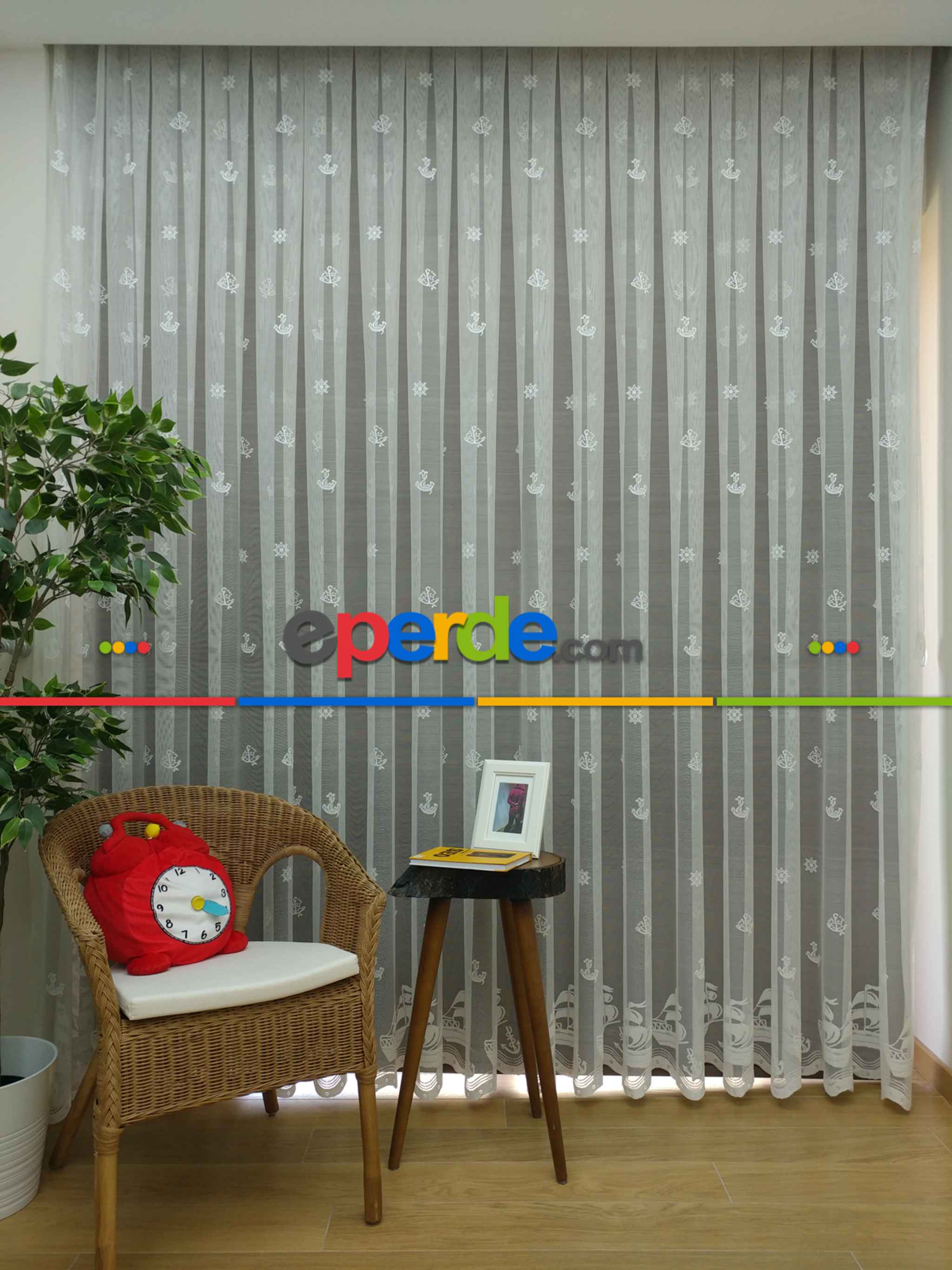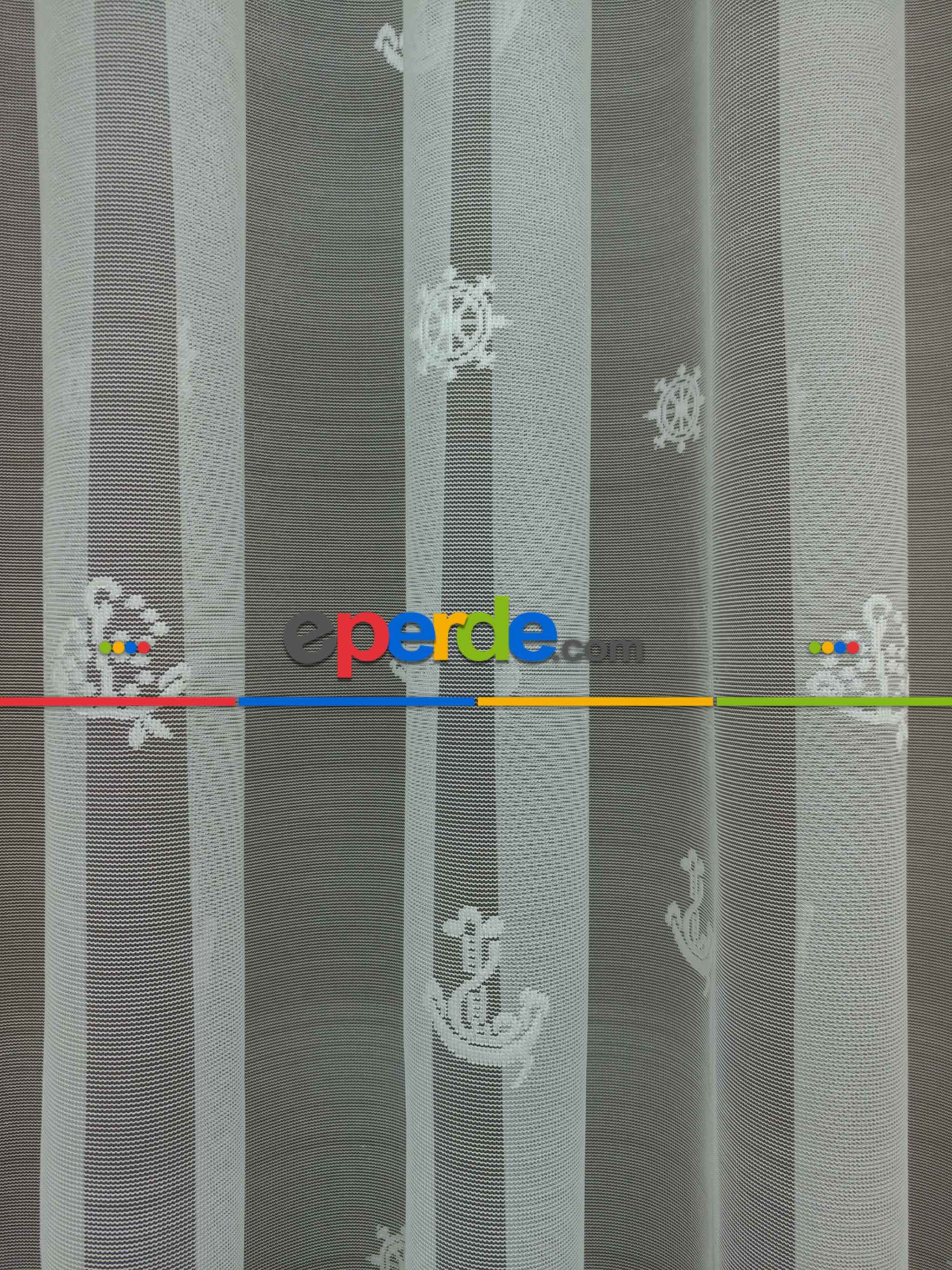 Çocuk Odası Tül Perde - Denizci Desen Çapalı Tül Perde- Ekru