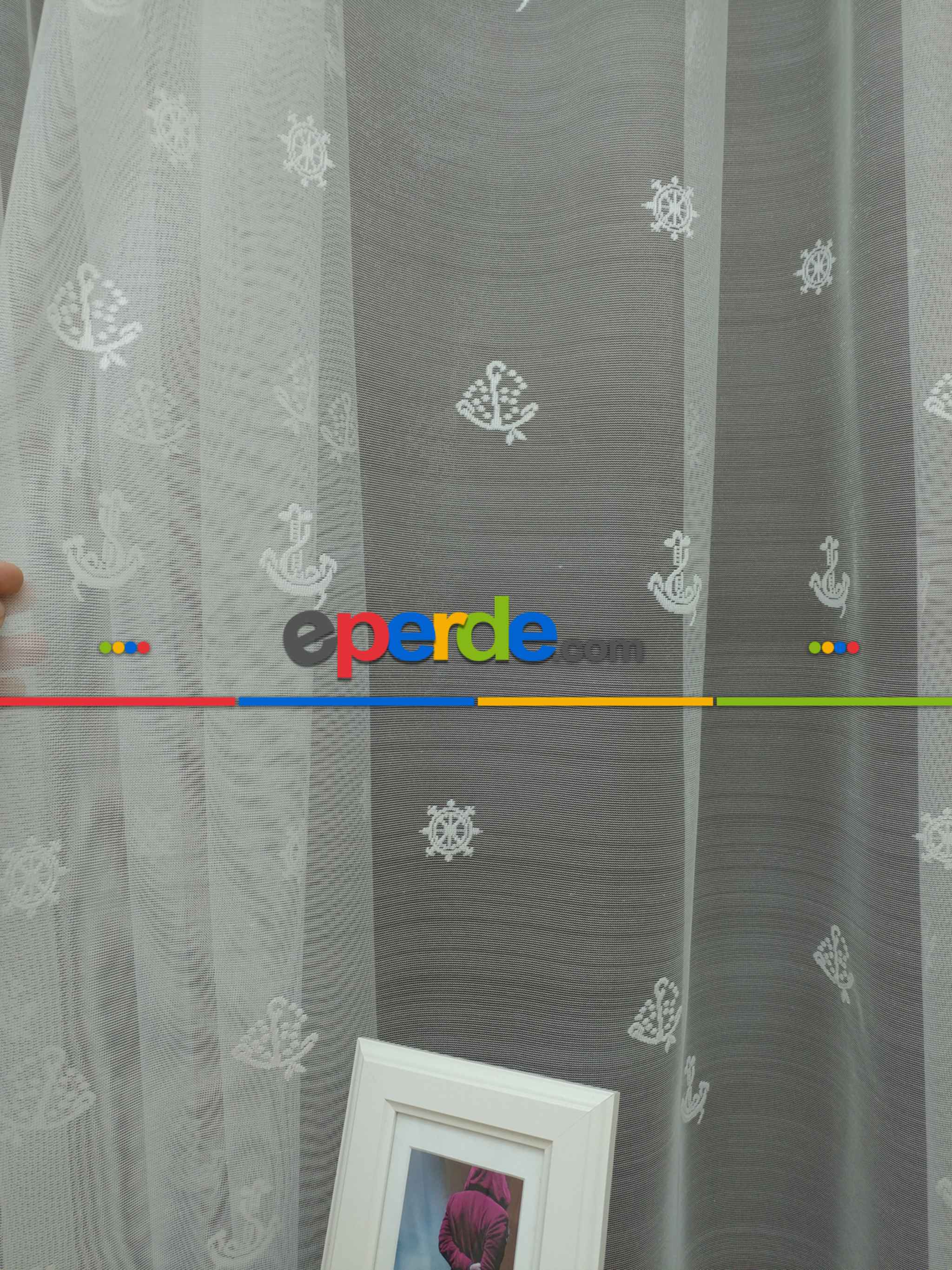 Çocuk Odası Tül Perde - Denizci Desen Çapalı Tül Perde- Ekru Ödeme Seçenekleri