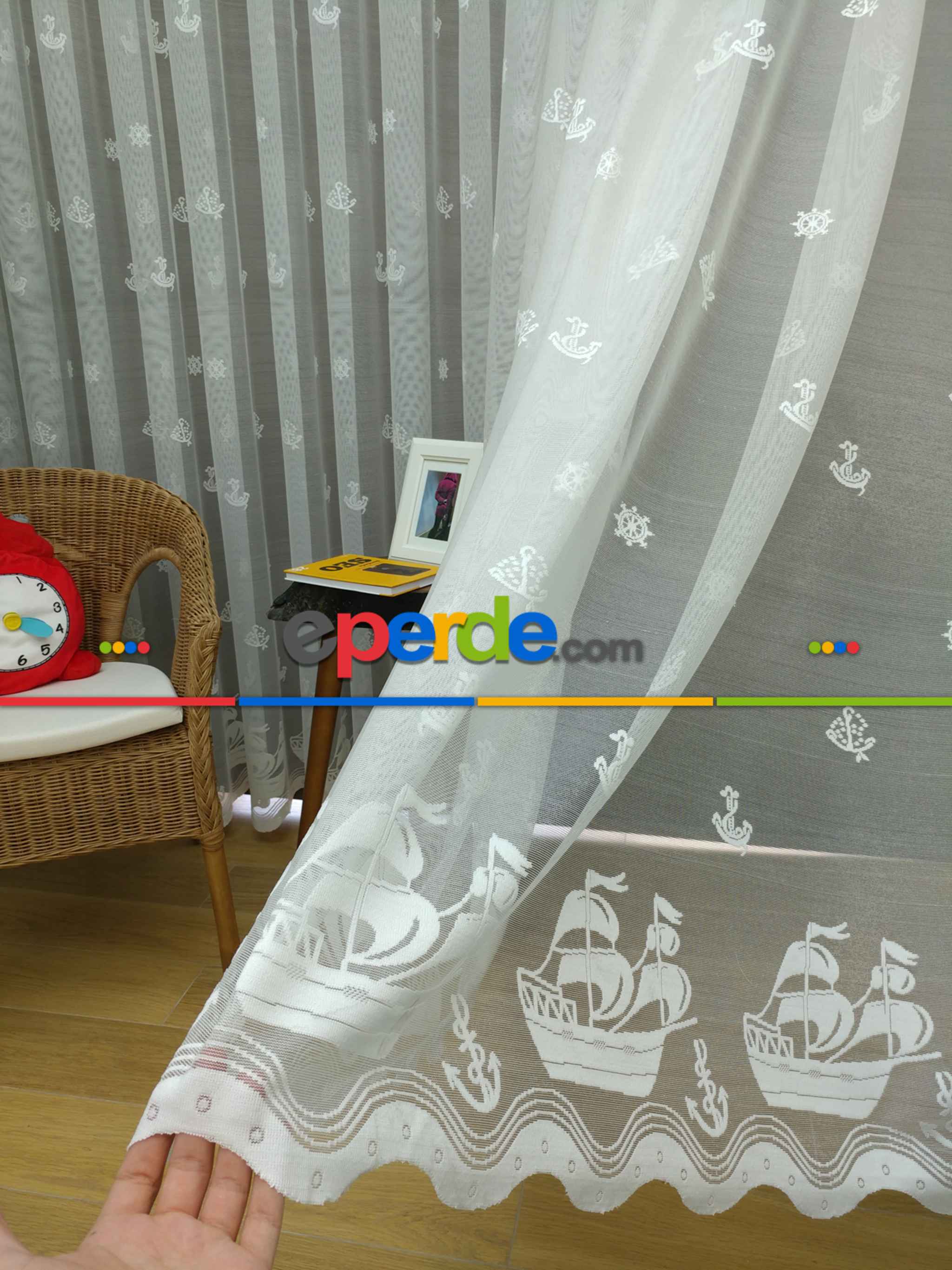 Pakistan | Çocuk Odası Tül Perde - Denizci Desen Çapalı Tül Perde- Ekru » Eperde