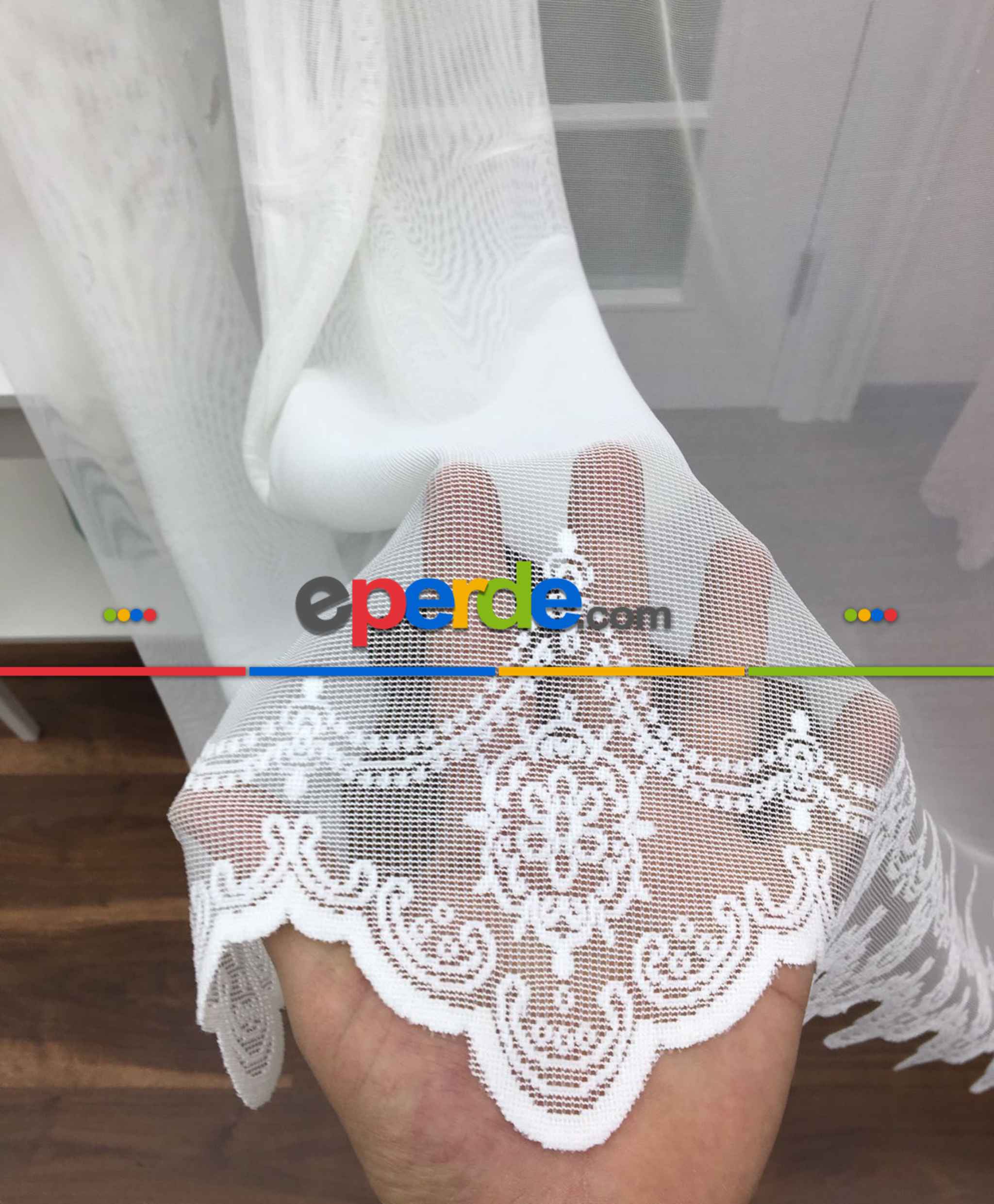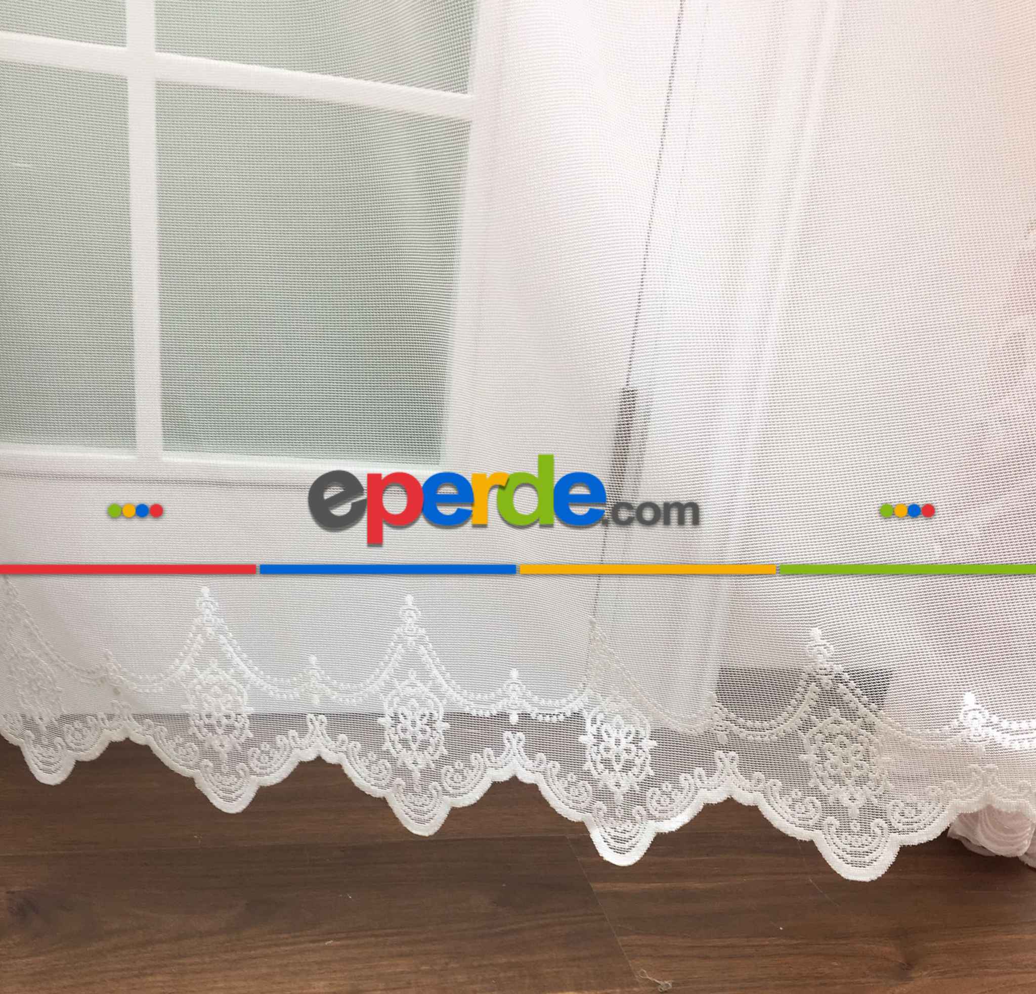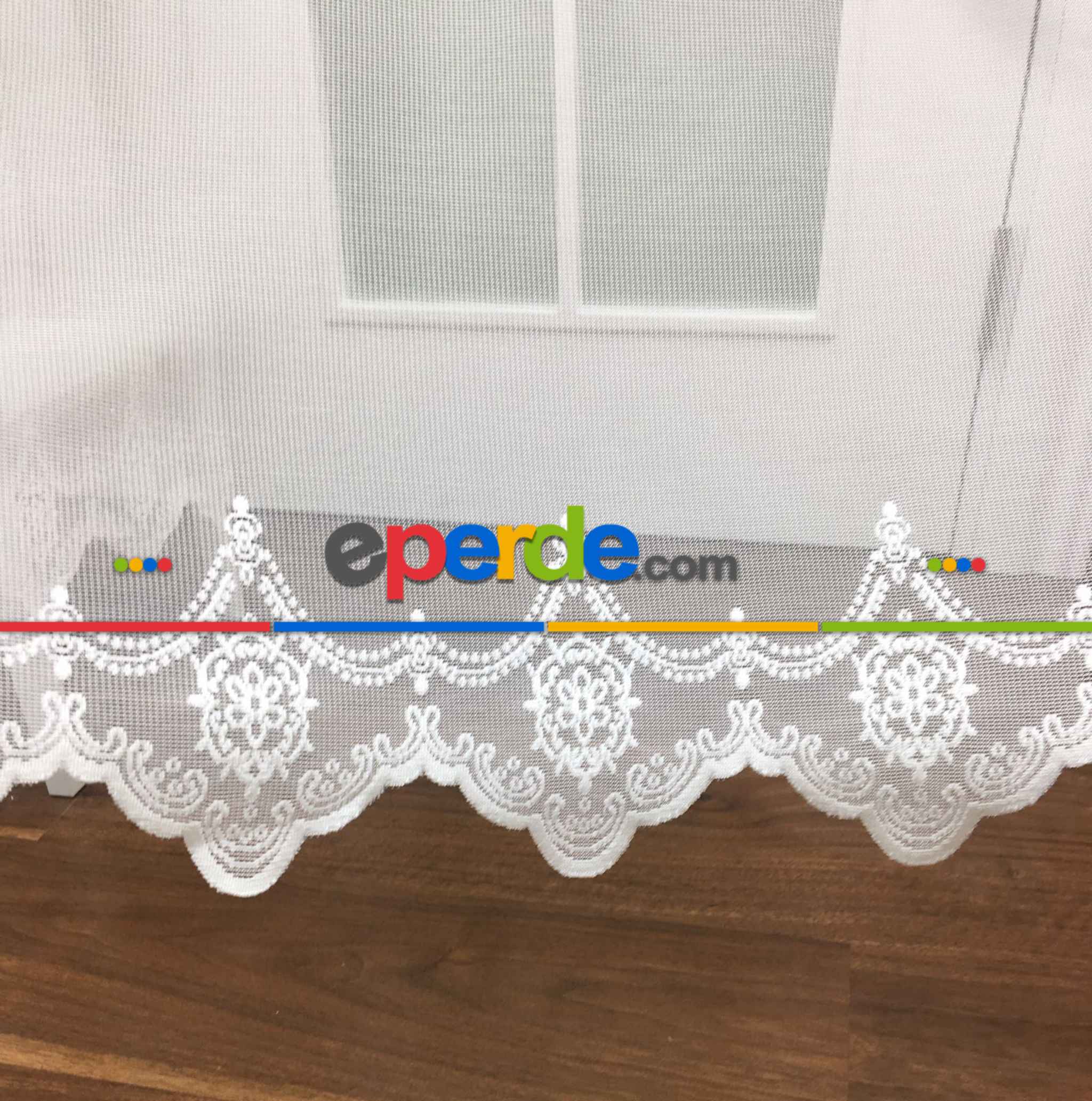Çok Dökümlü Örme Tül Perde - Etek Ucu Desenli - Ekru Renkli - Kruvaze Model Seçenekli » Eperde