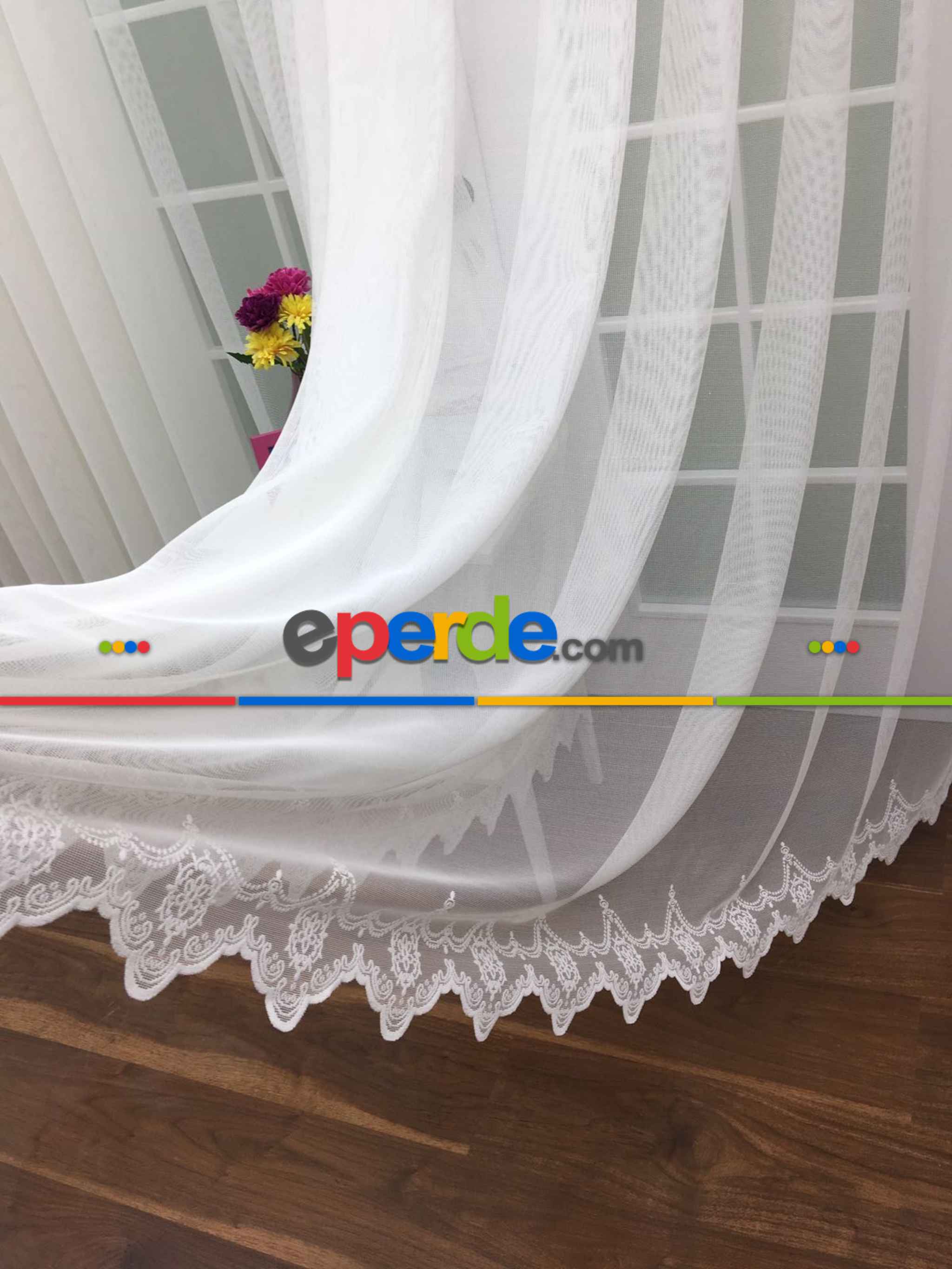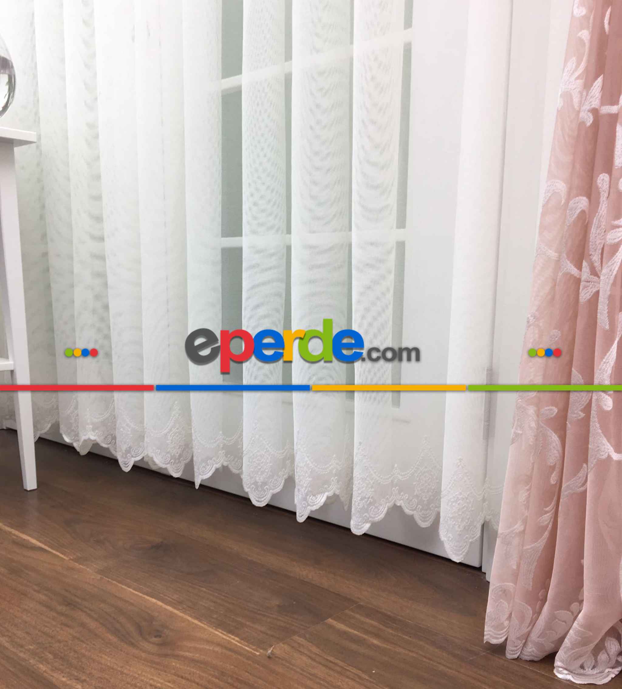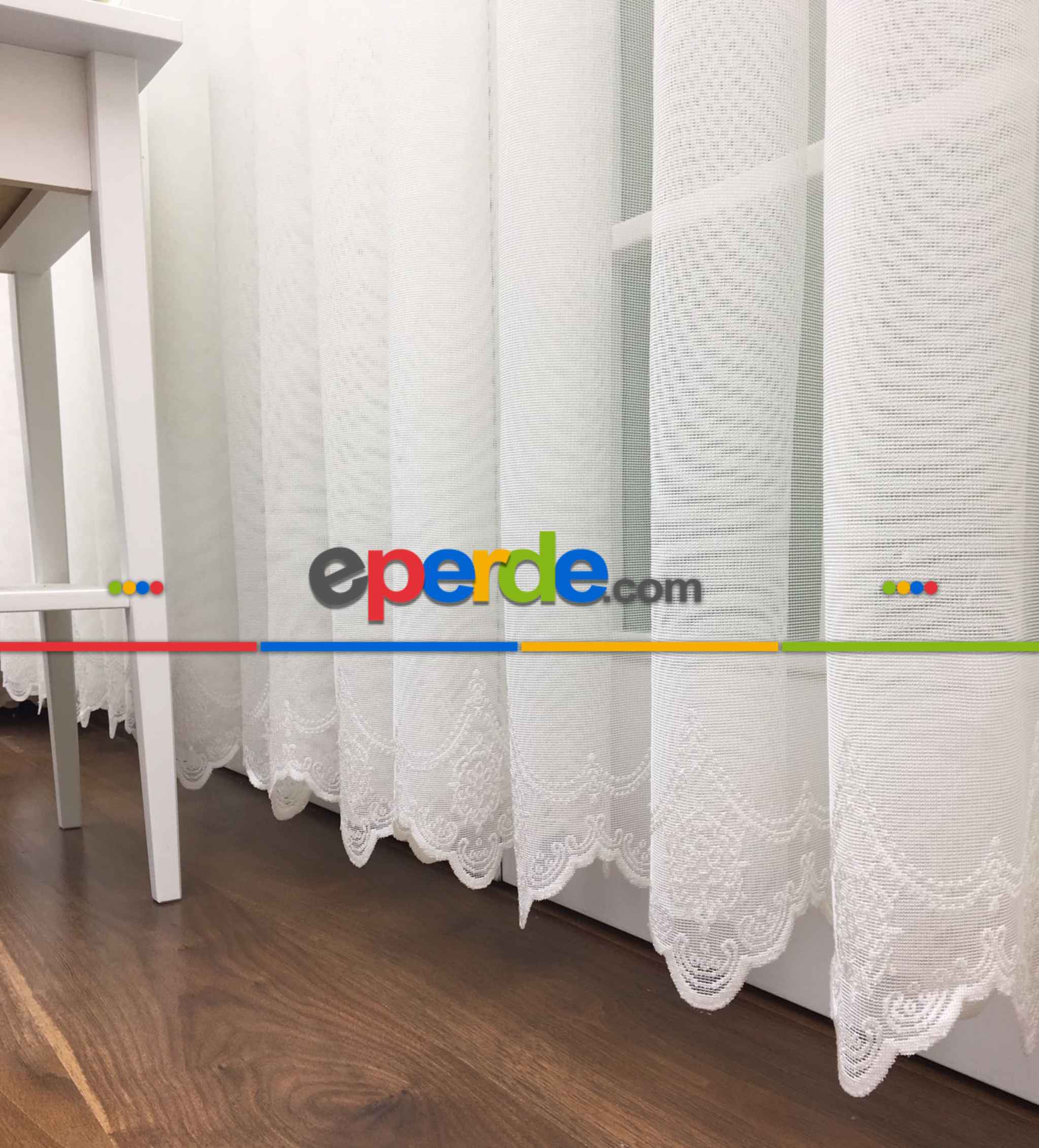 Çok Dökümlü Örme Tül Perde - Etek Ucu Desenli - Ekru Renkli - Kruvaze Model Seçenekli » Eperde