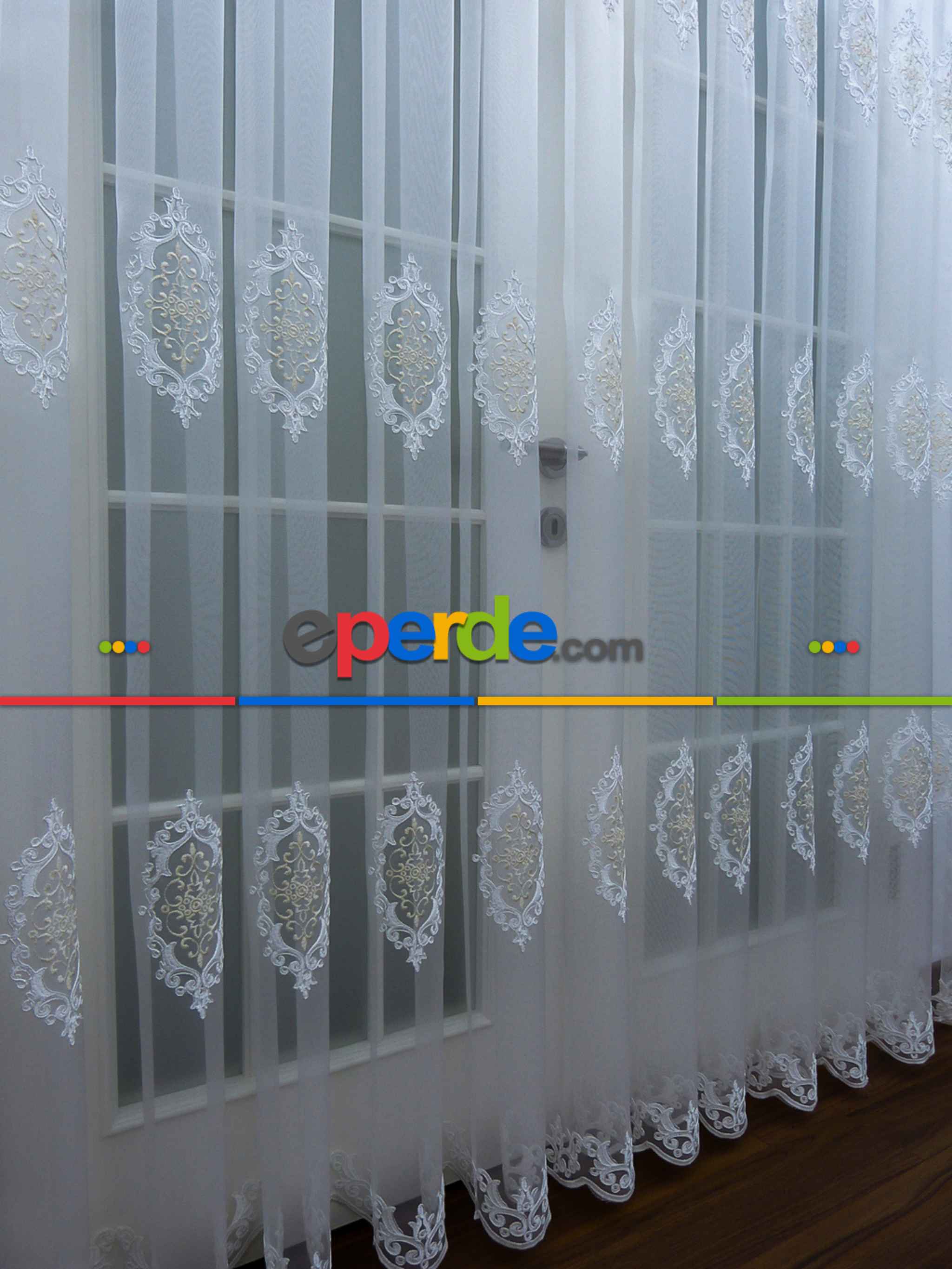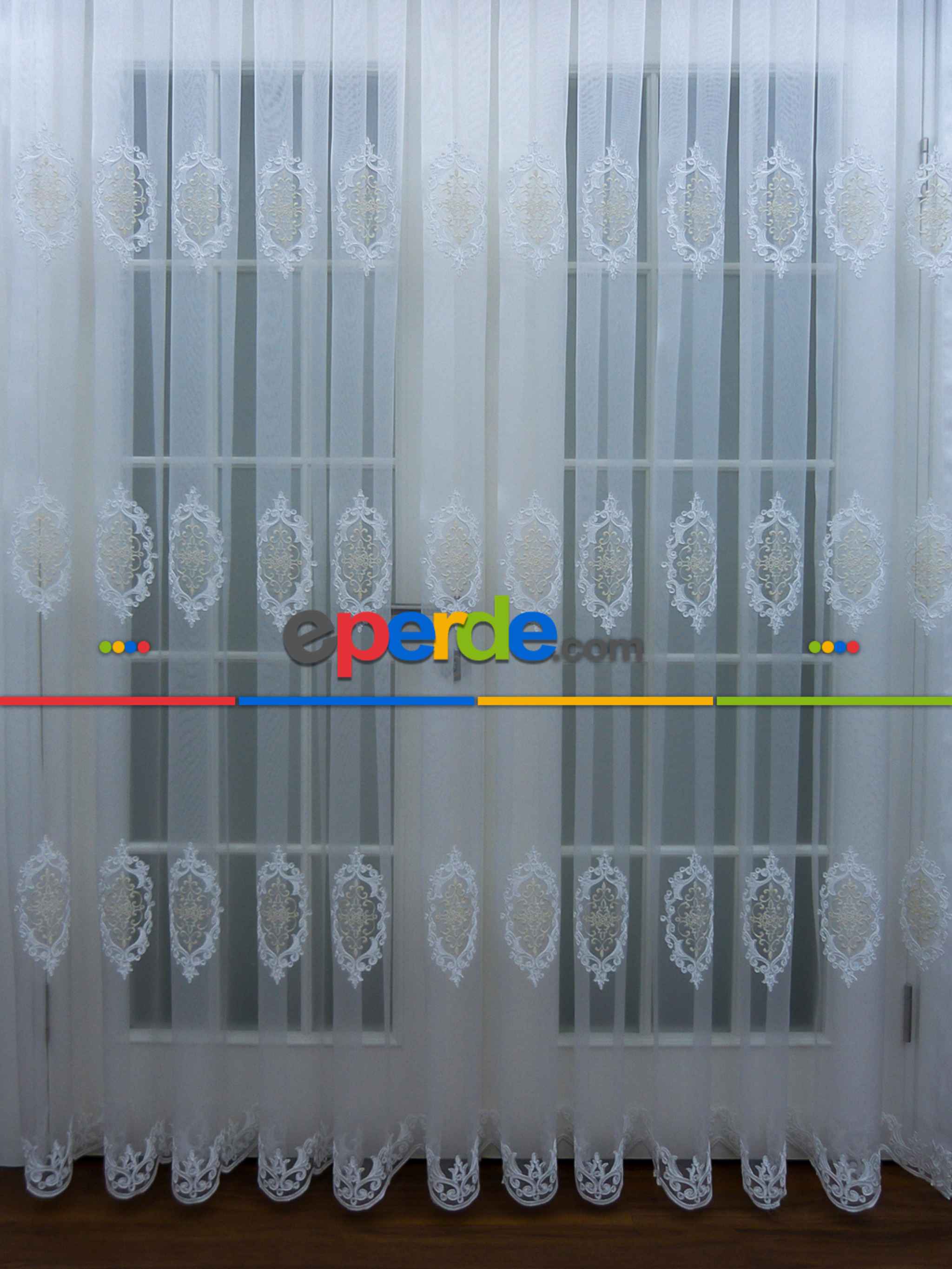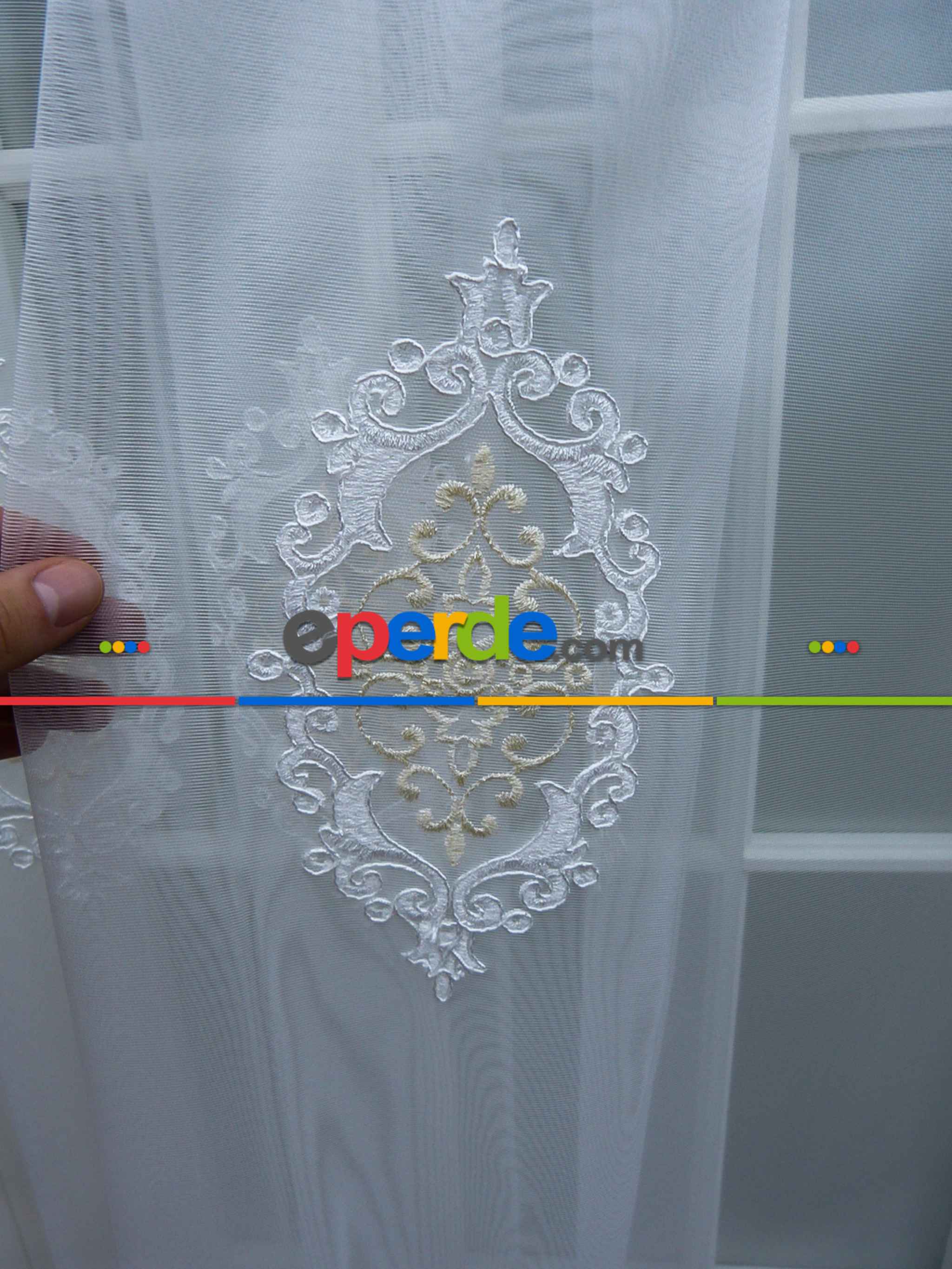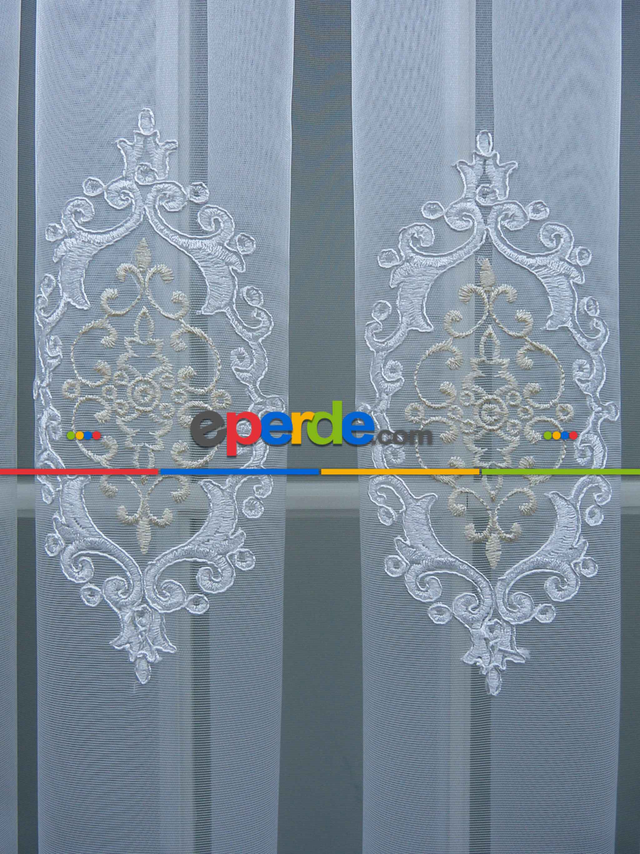 Danimarka | Damask Desen Nakış İşlemeli Tül Perde- Krem-ekru » Eperde