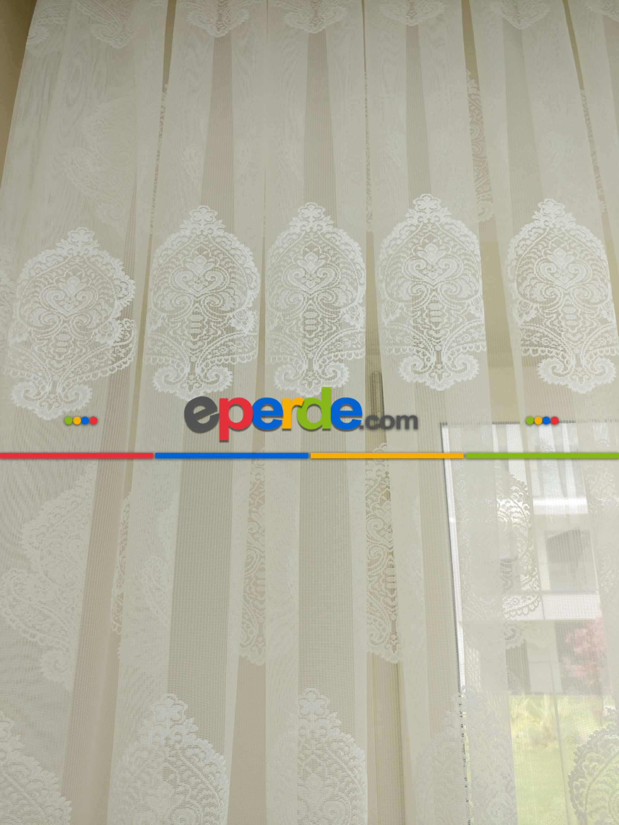 Damask Desenli Özel Örme Dokulu Tül Perde- Ekru » Eperde