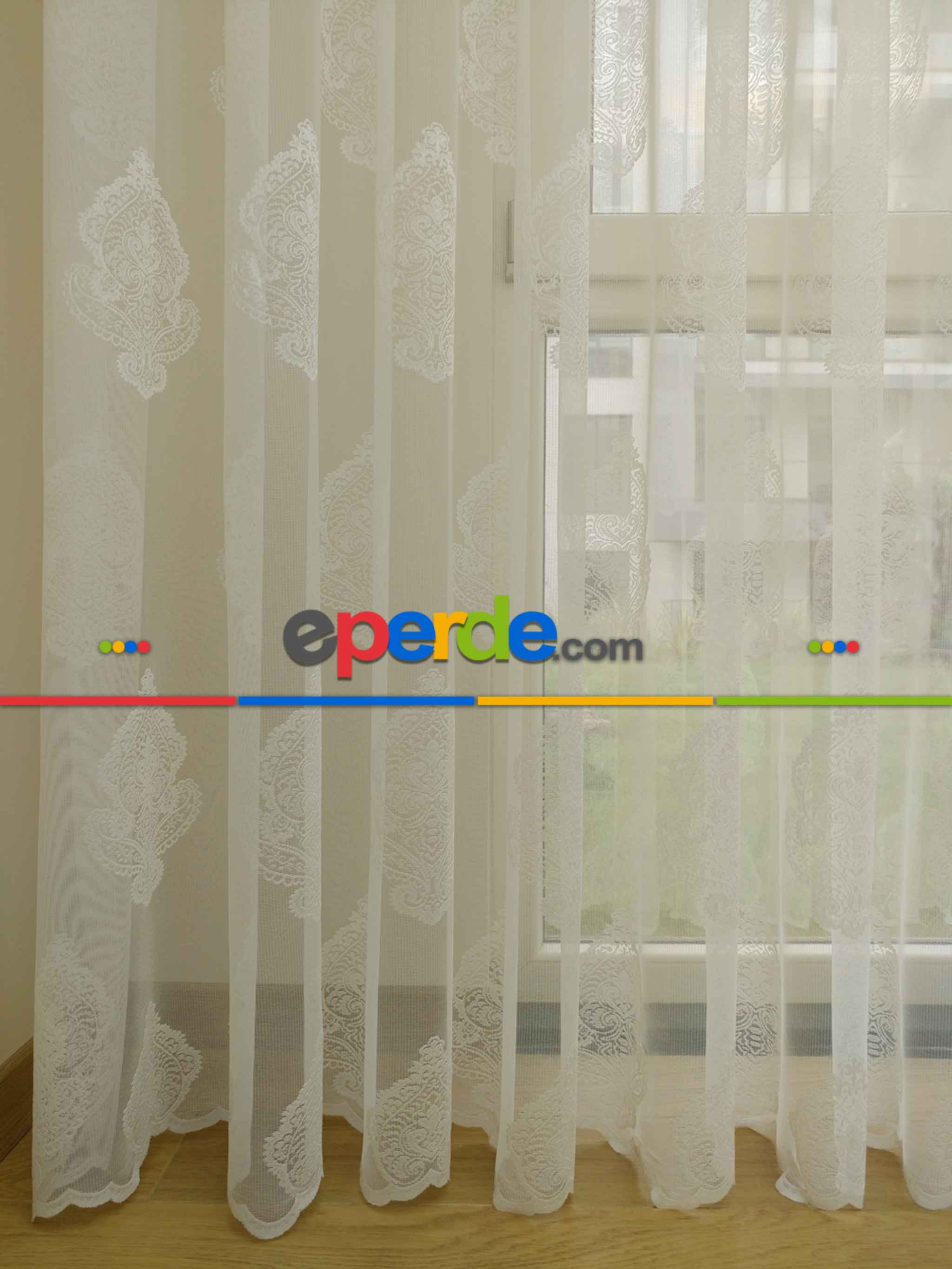 Damask Desenli Özel Örme Dokulu Tül Perde- Ekru Ödeme Seçenekleri