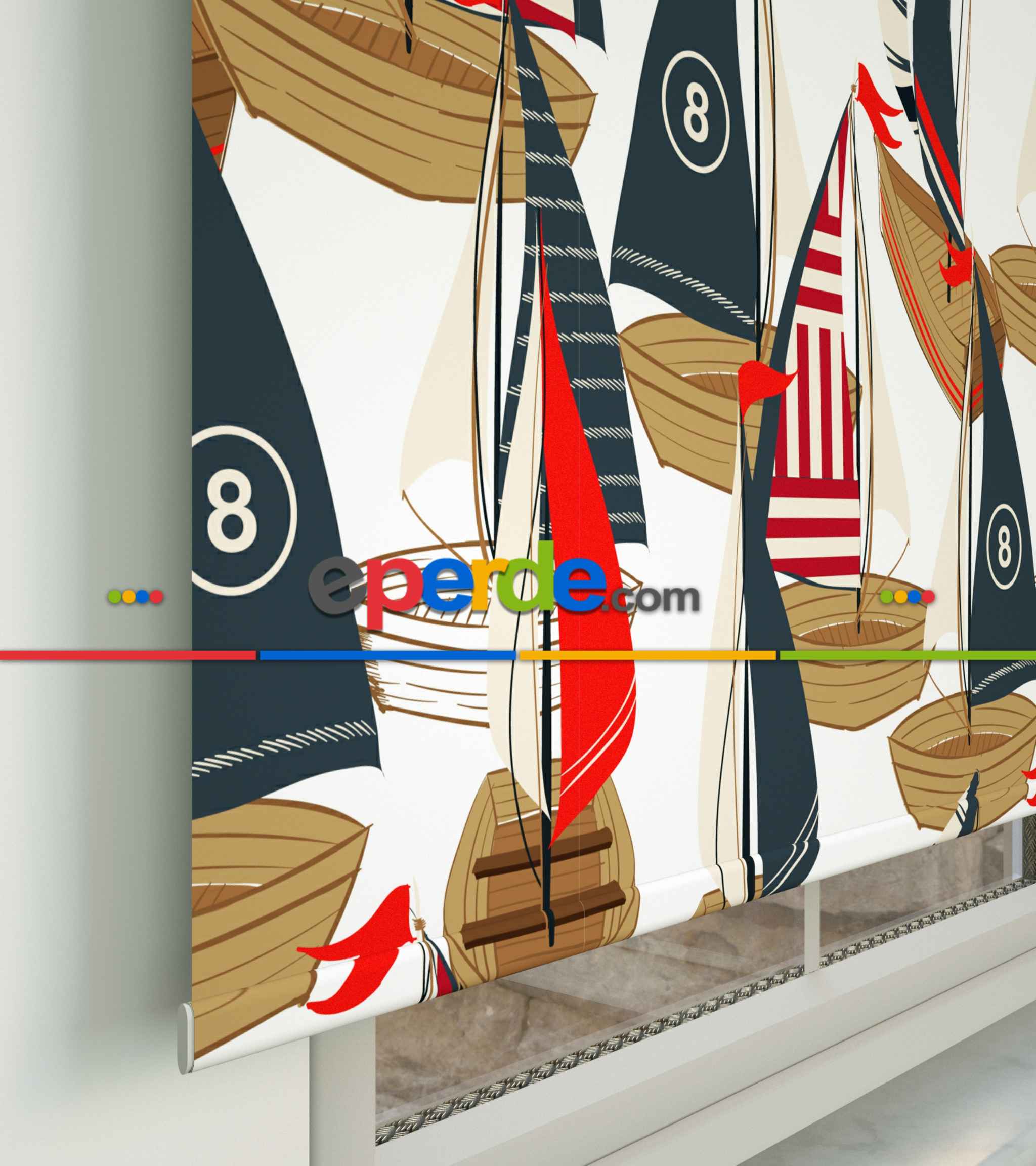 Denizci Desenli Baskılı Stor Perde- Çok Renkli Ürün Açıklaması