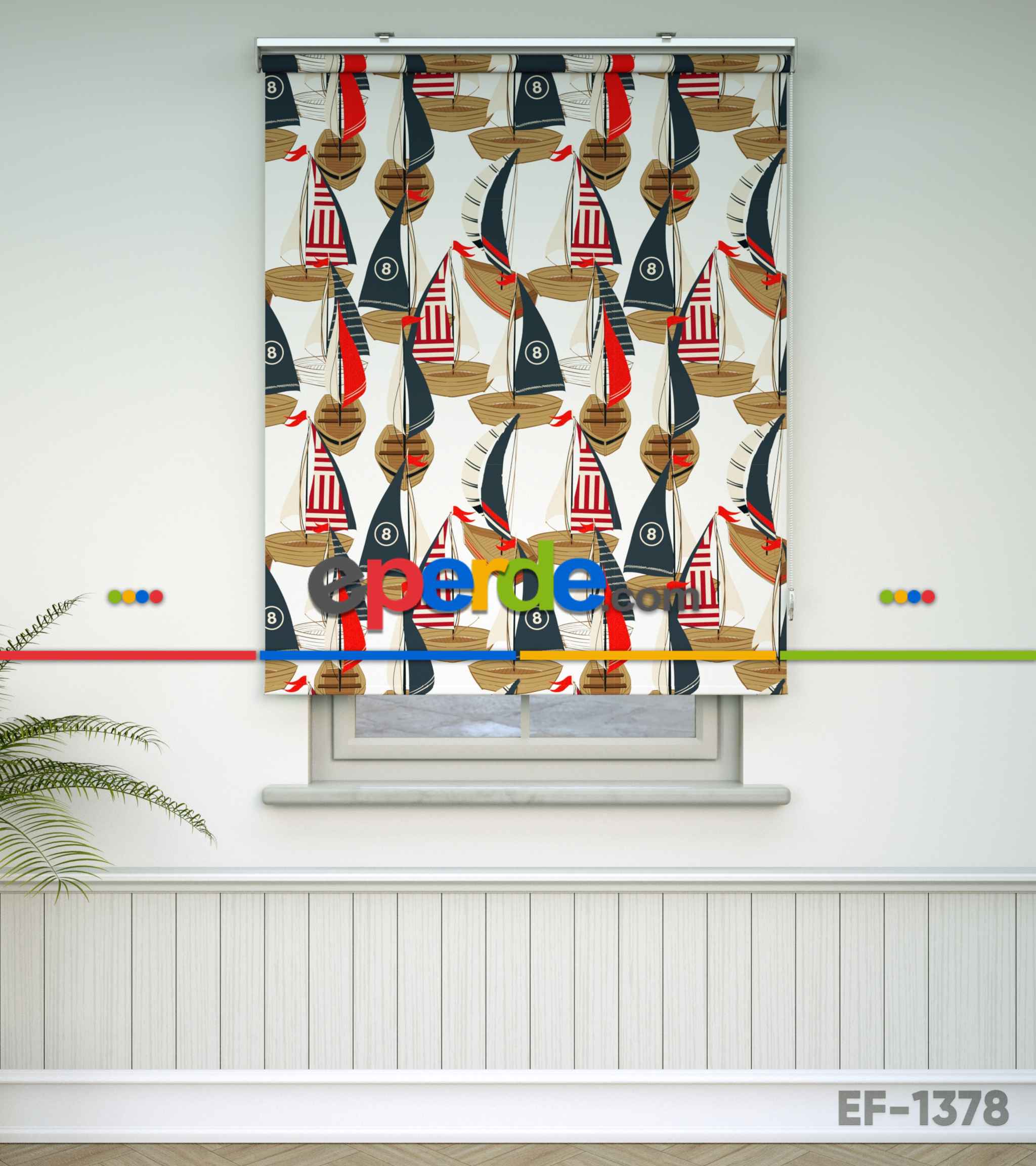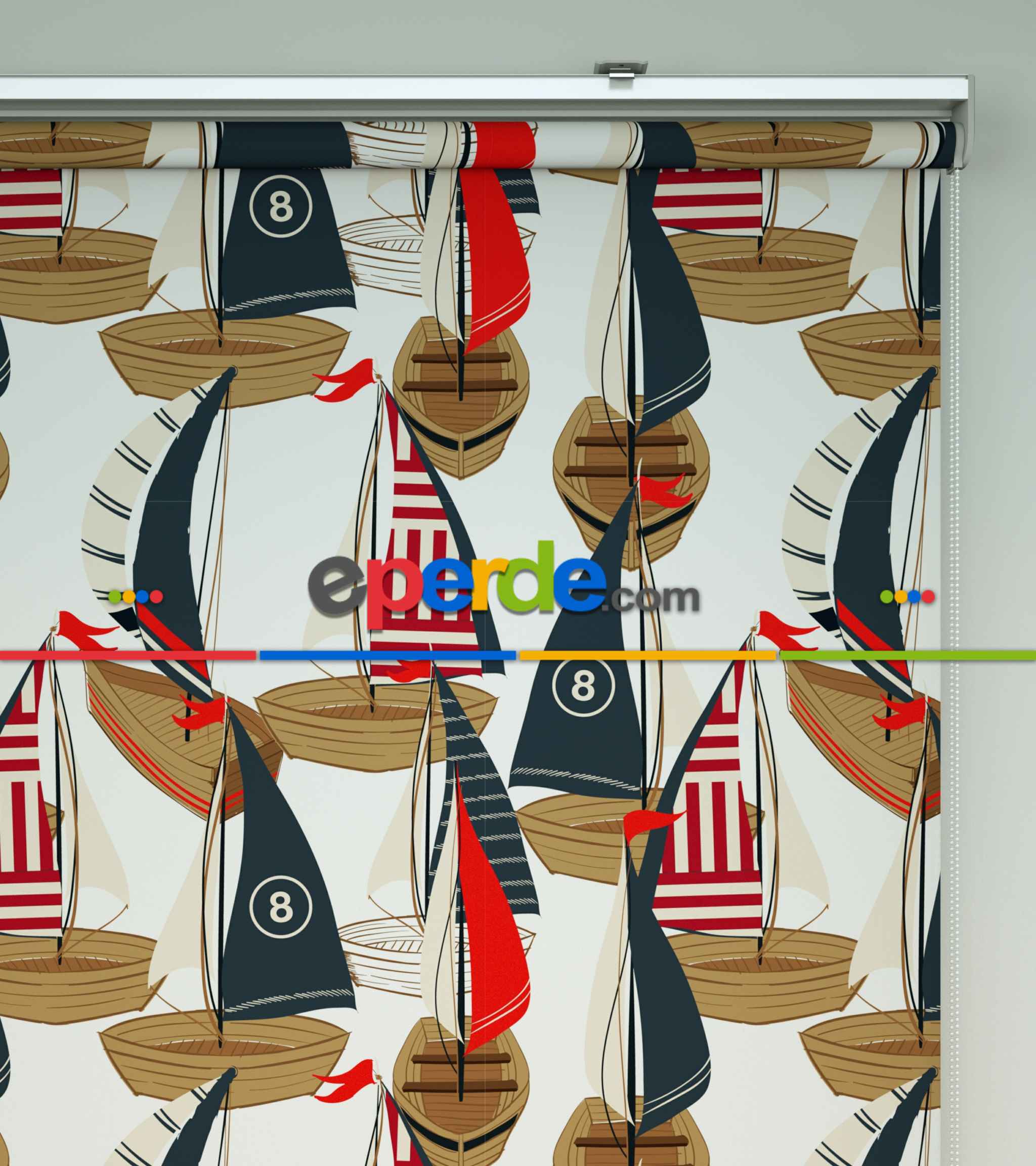 Denizci Desenli Baskılı Stor Perde- Çok Renkli