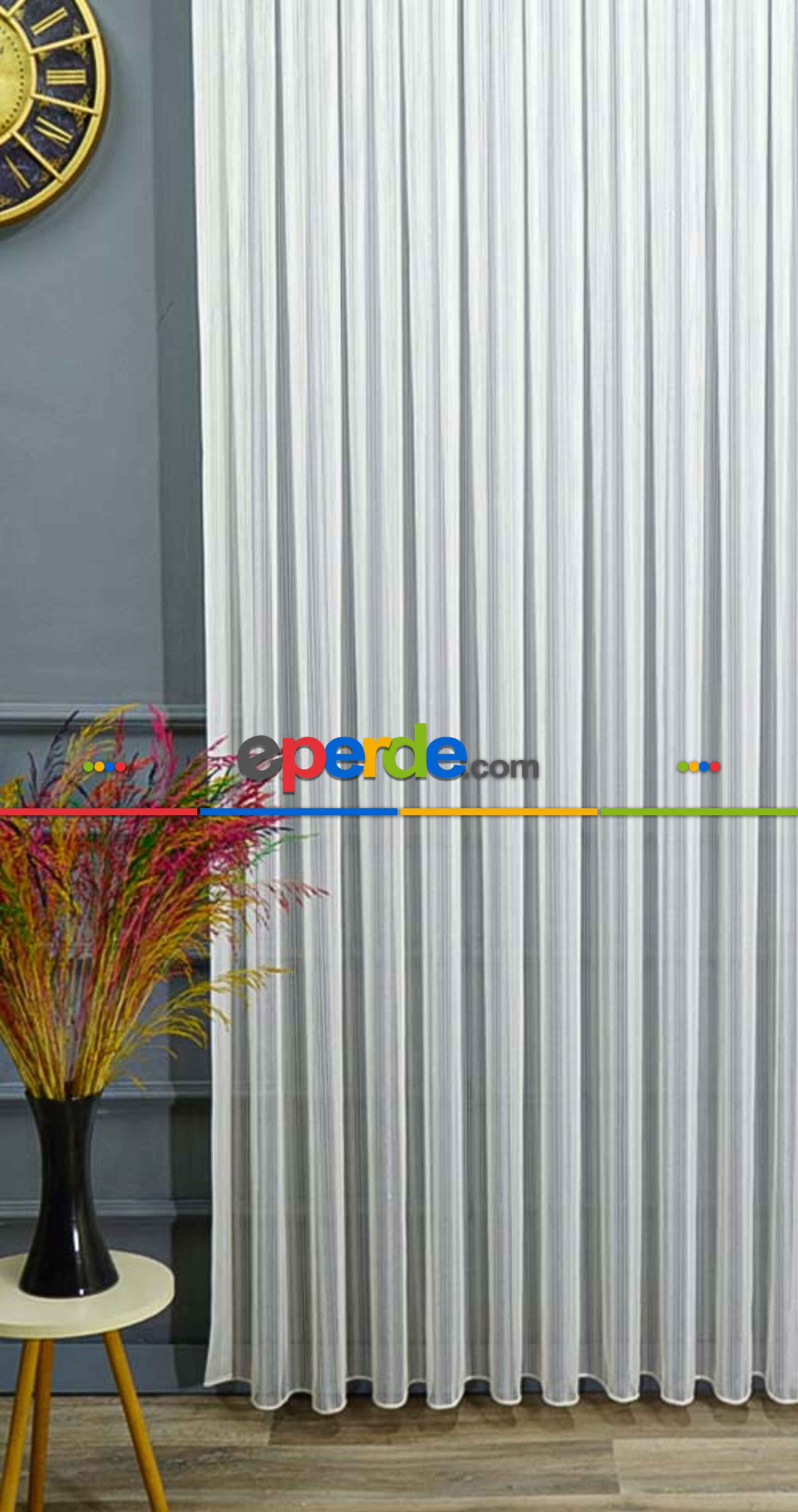 Desen Almira Simli Çizgili Eteği Kurşunlu (gramajlı) Tül Perde » Eperde