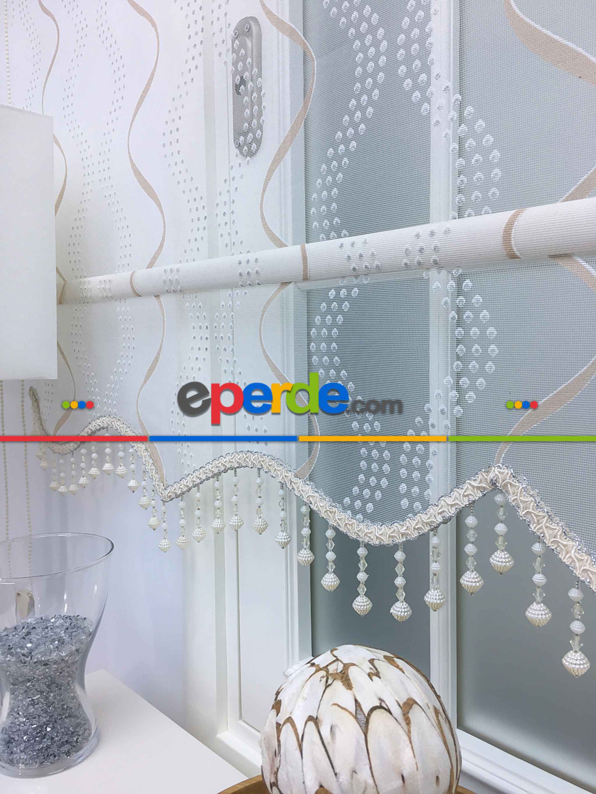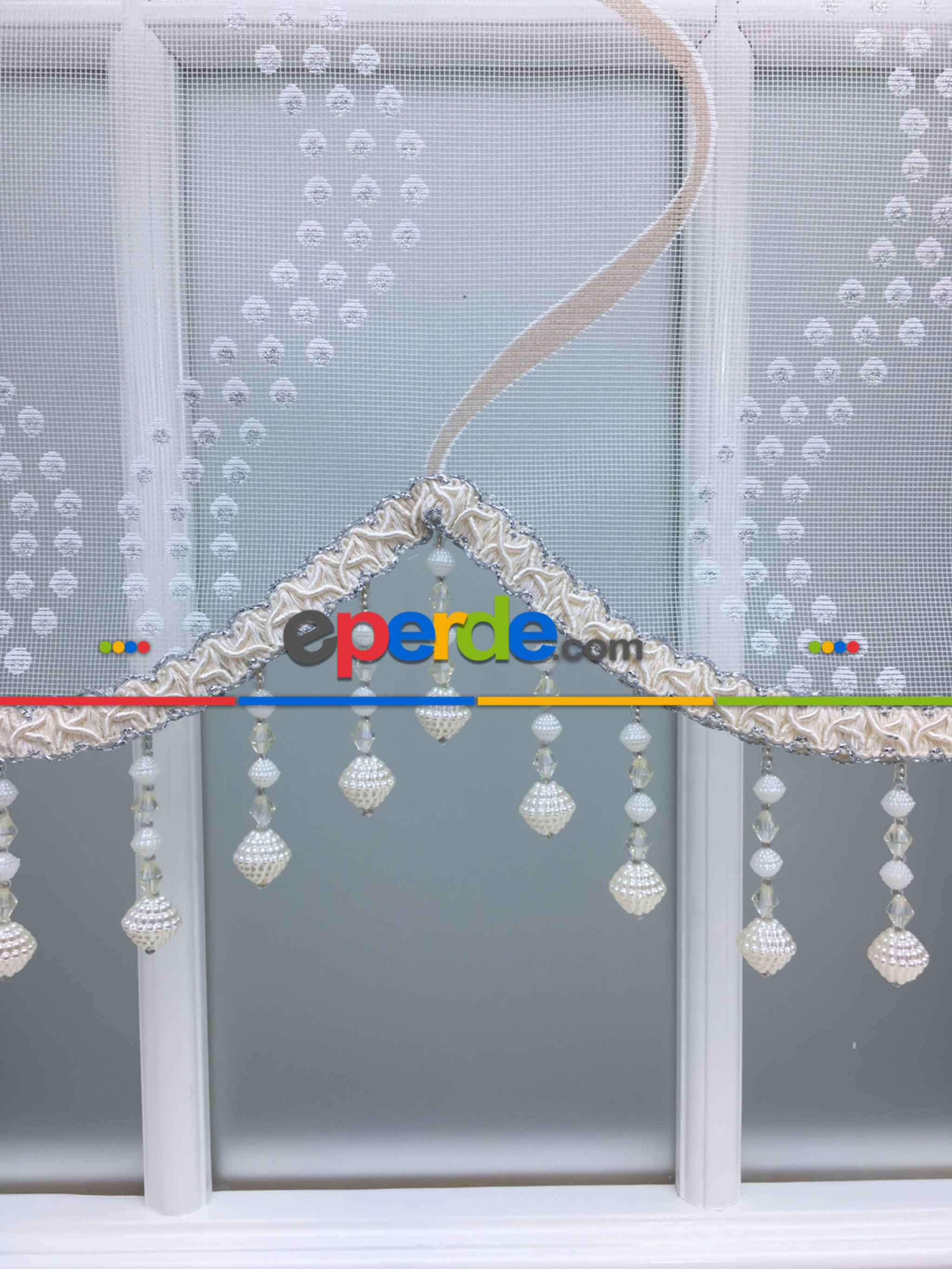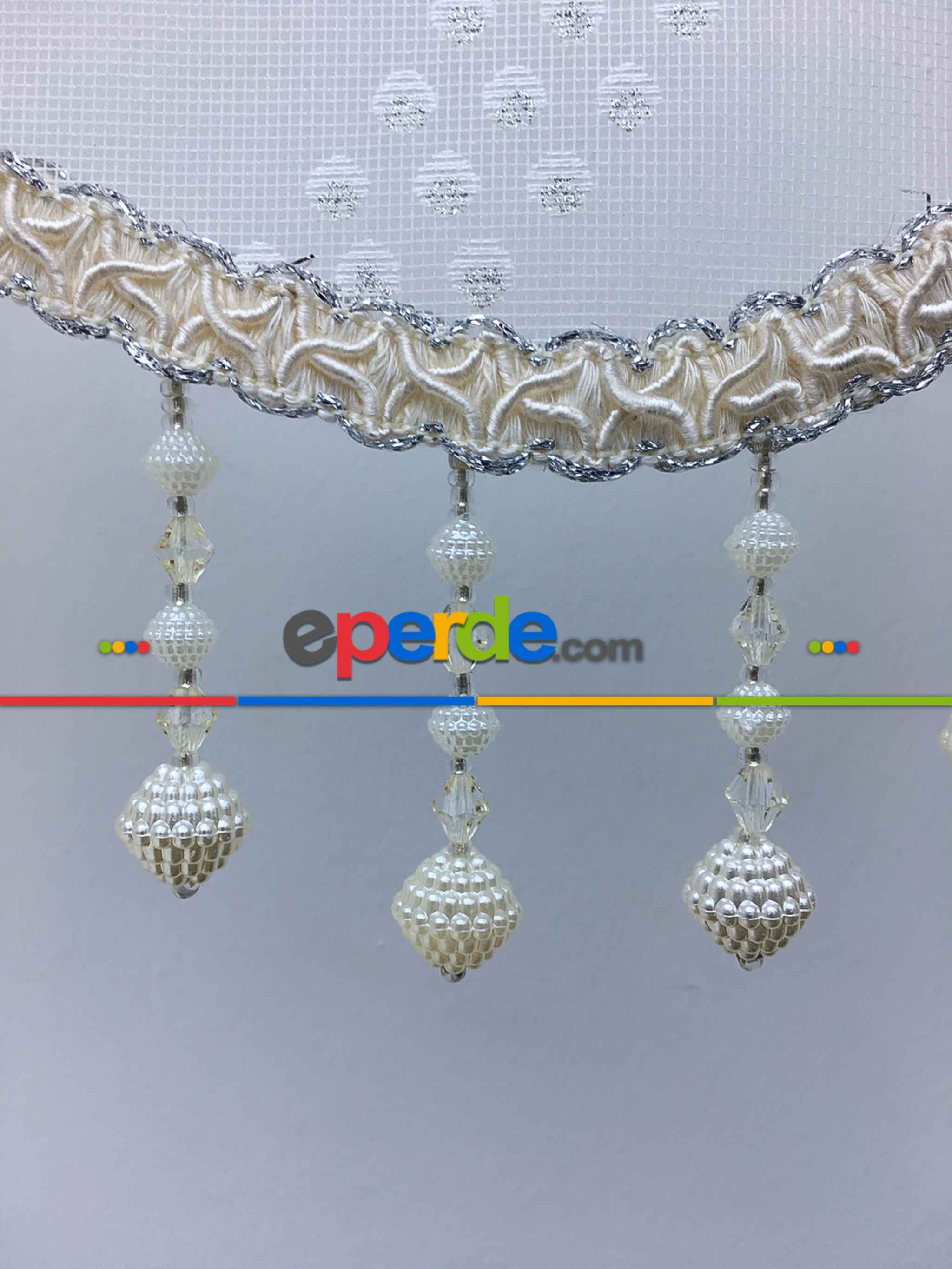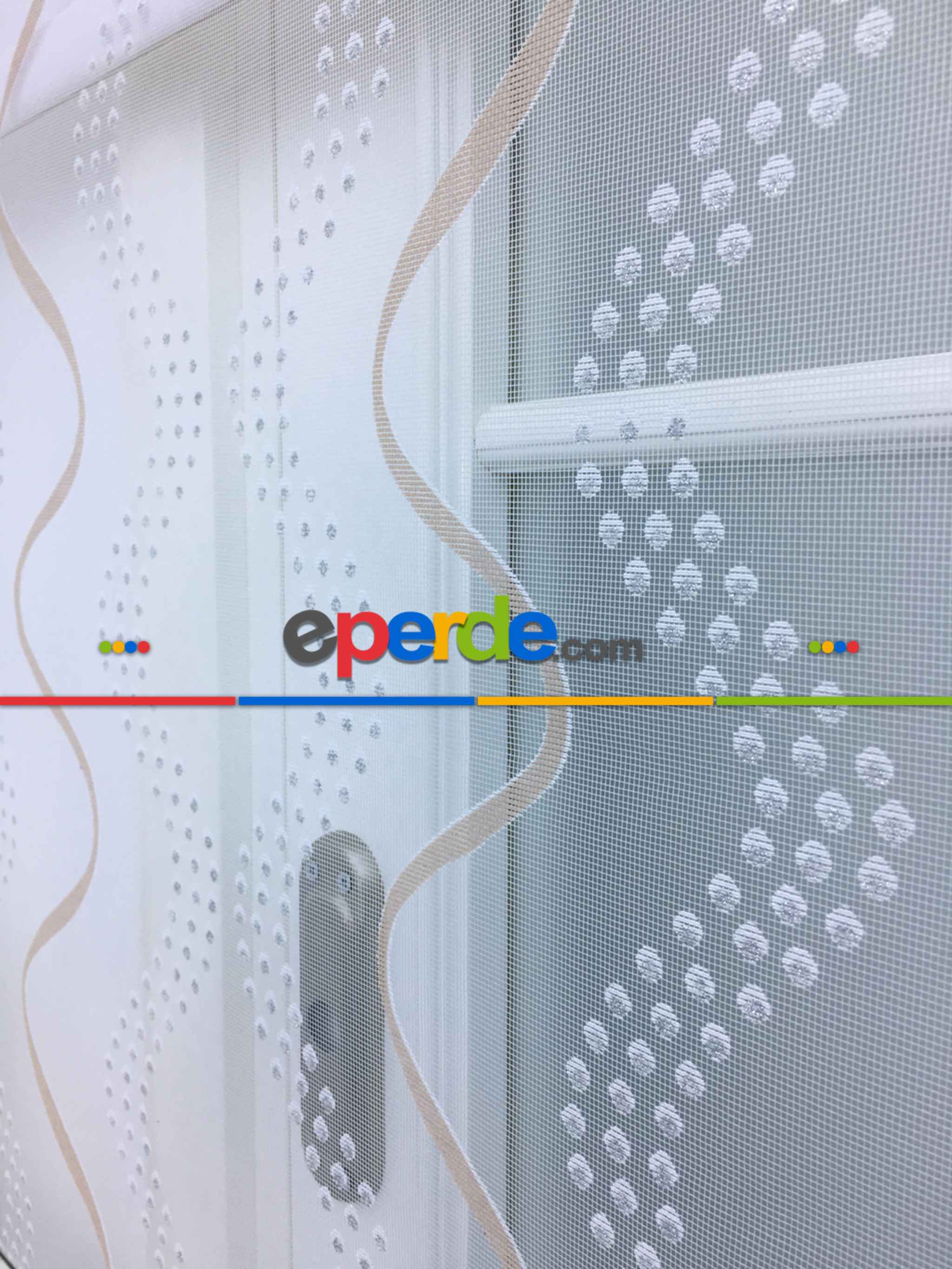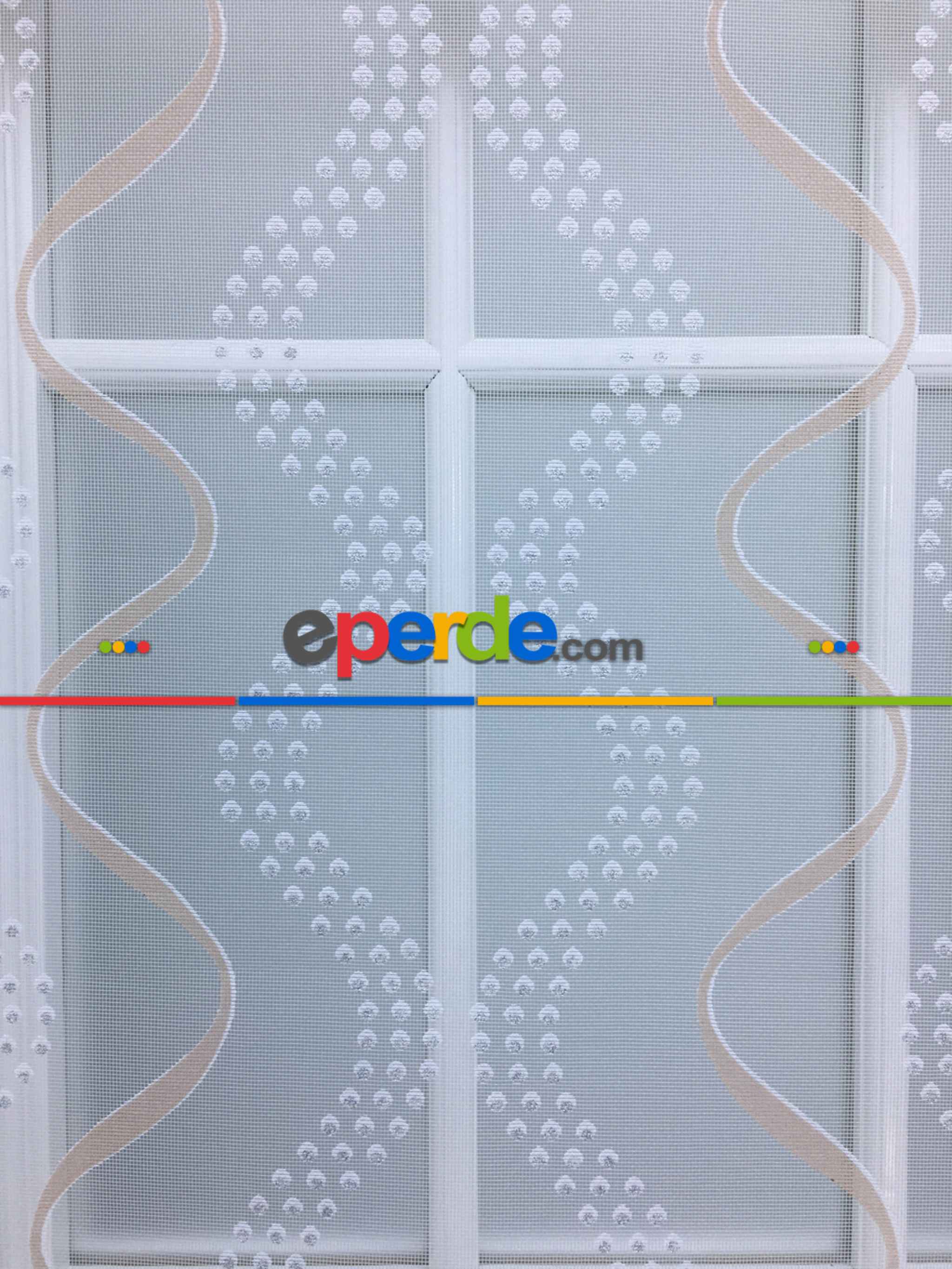 Desenli Çiftli Sistem Tül Stor Perde- Krem-gümüş Simli » Eperde