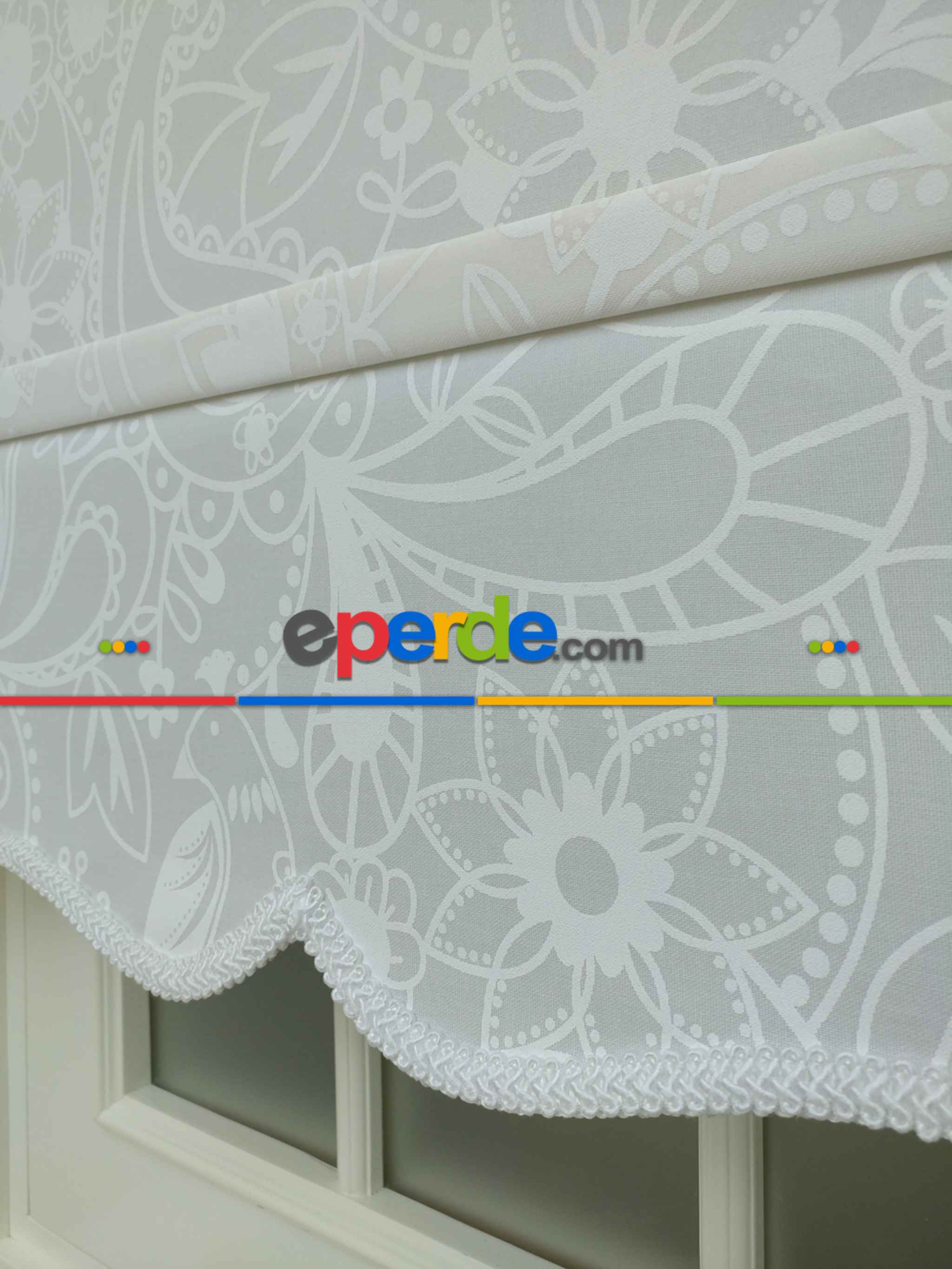 Desenli Mutfak Stor Perde- Beyaz Ürün Açıklaması