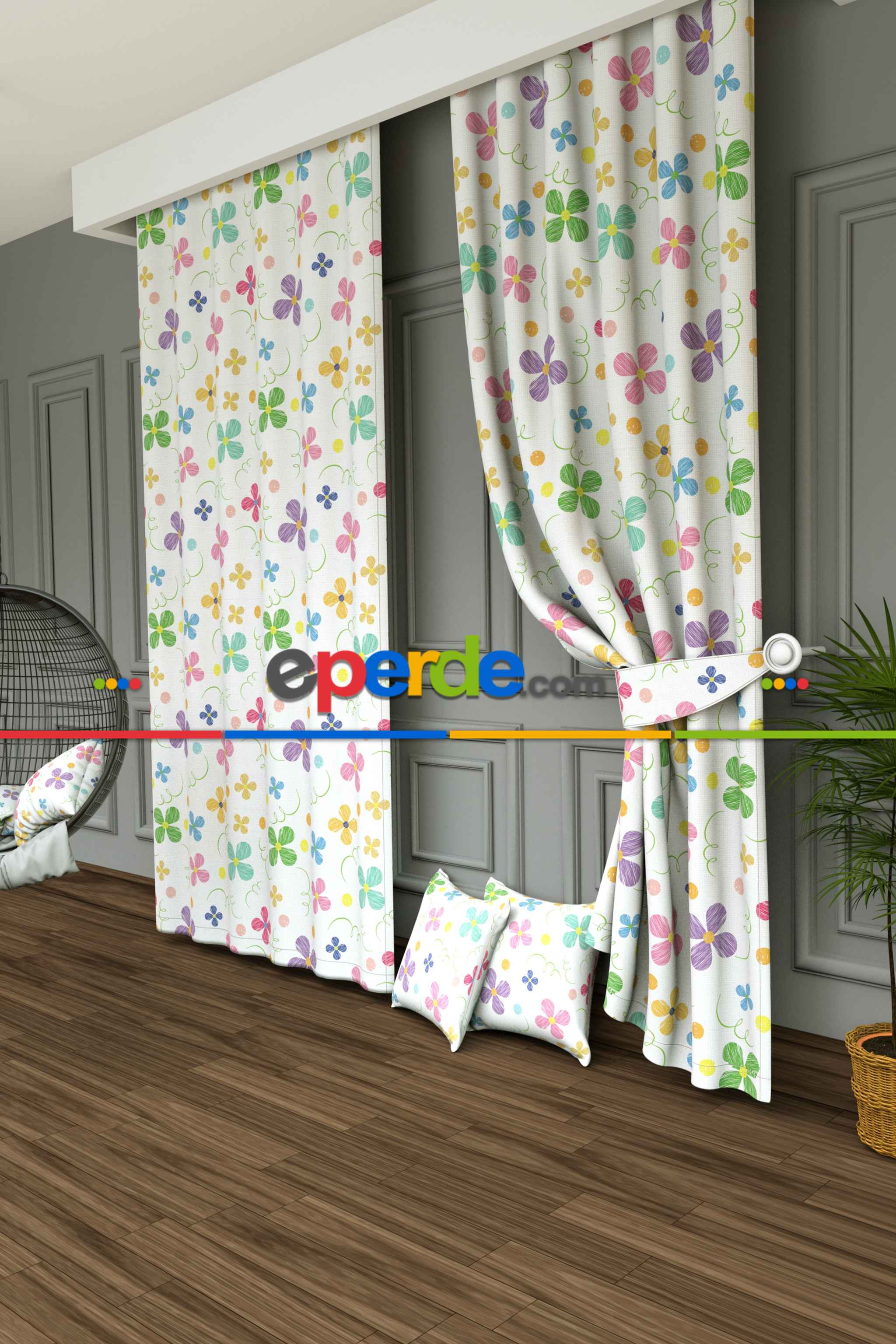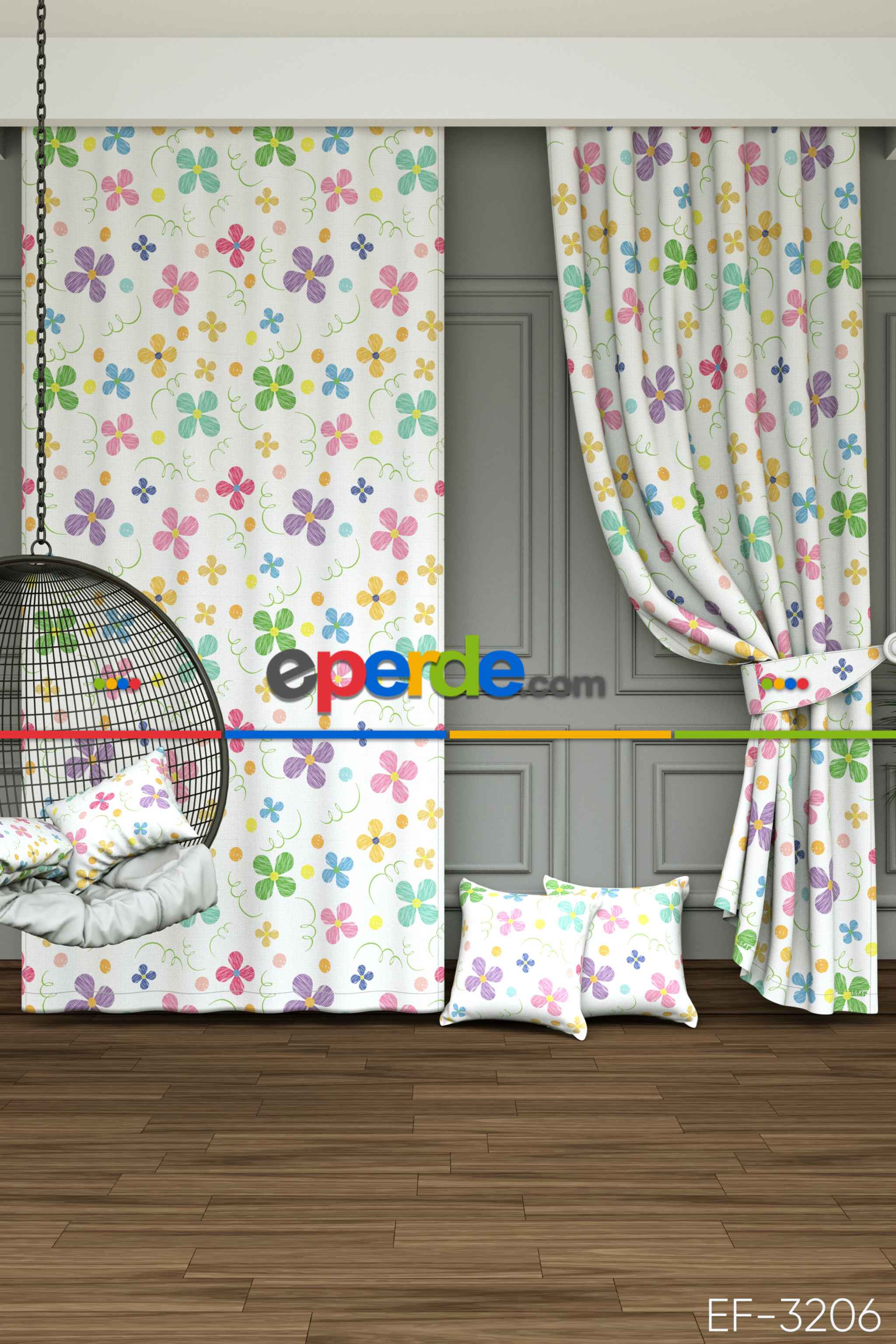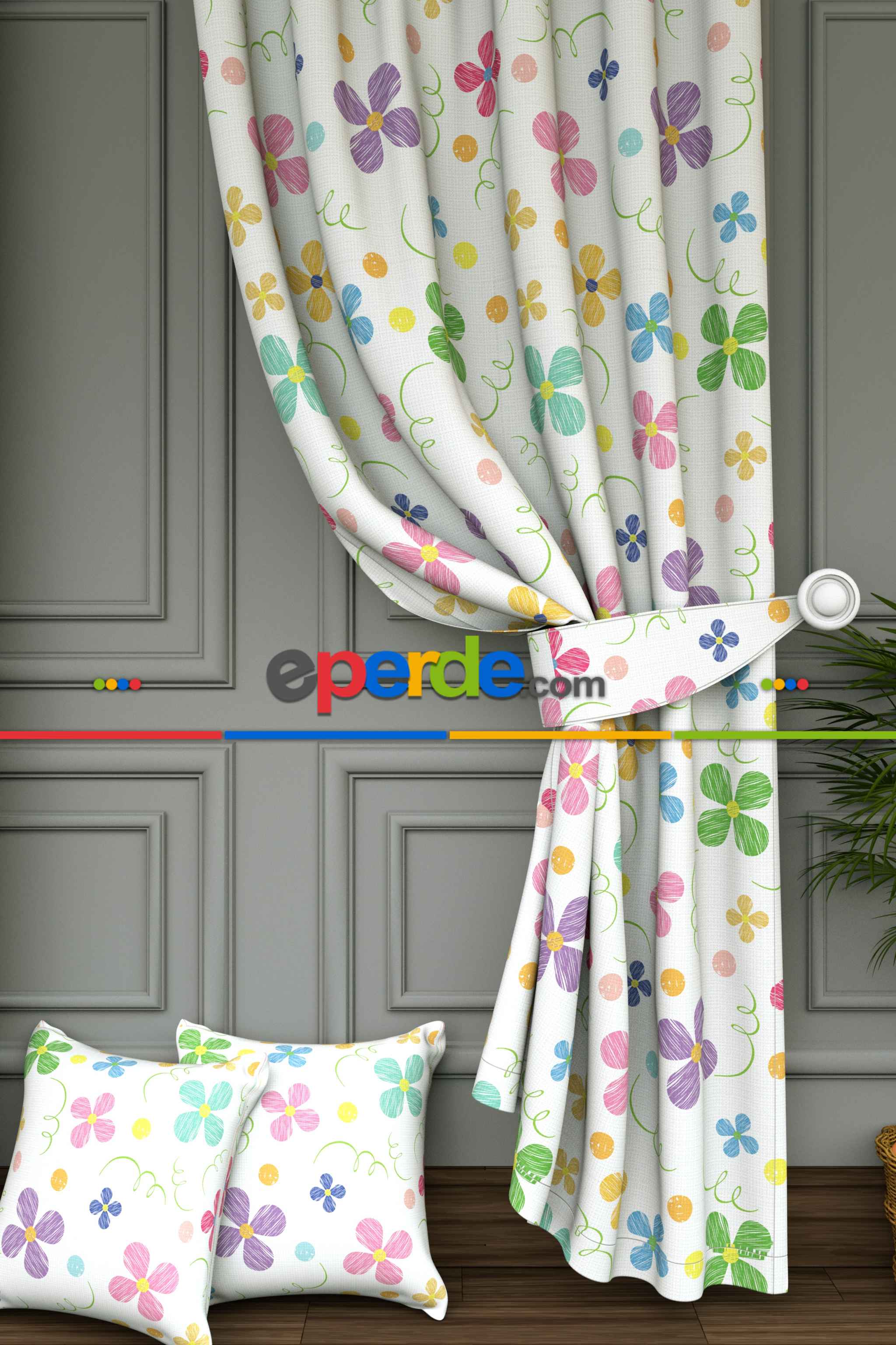 Dökümlü Kumaştan Rengarenk Çiçek Baskılı Fon Perde
