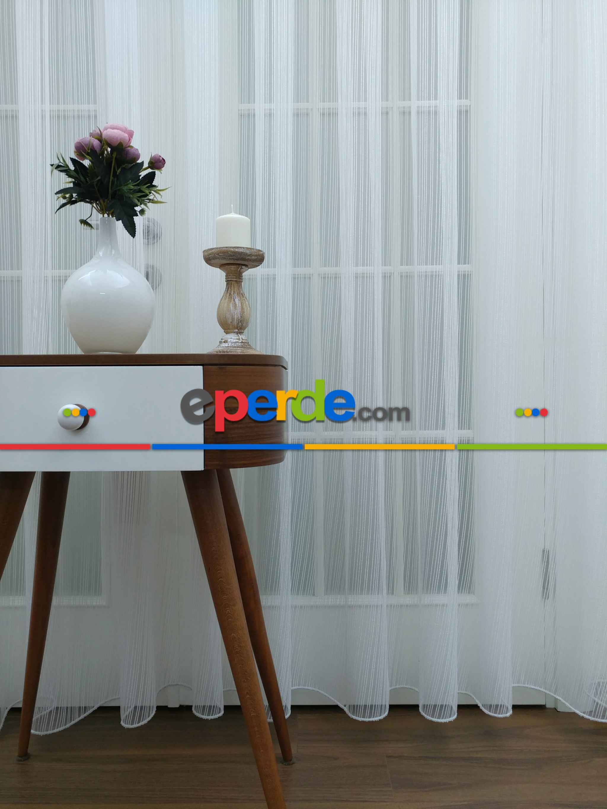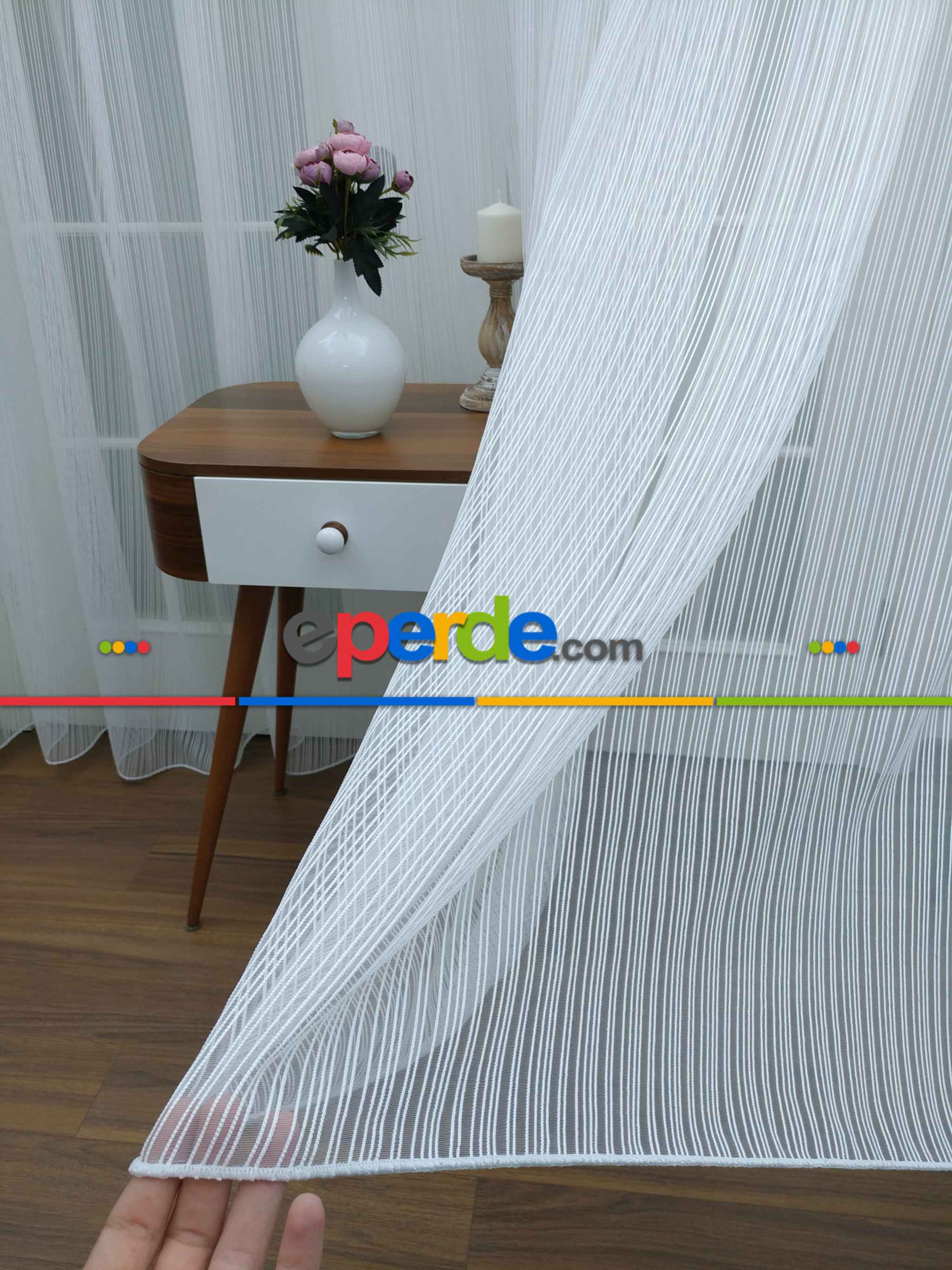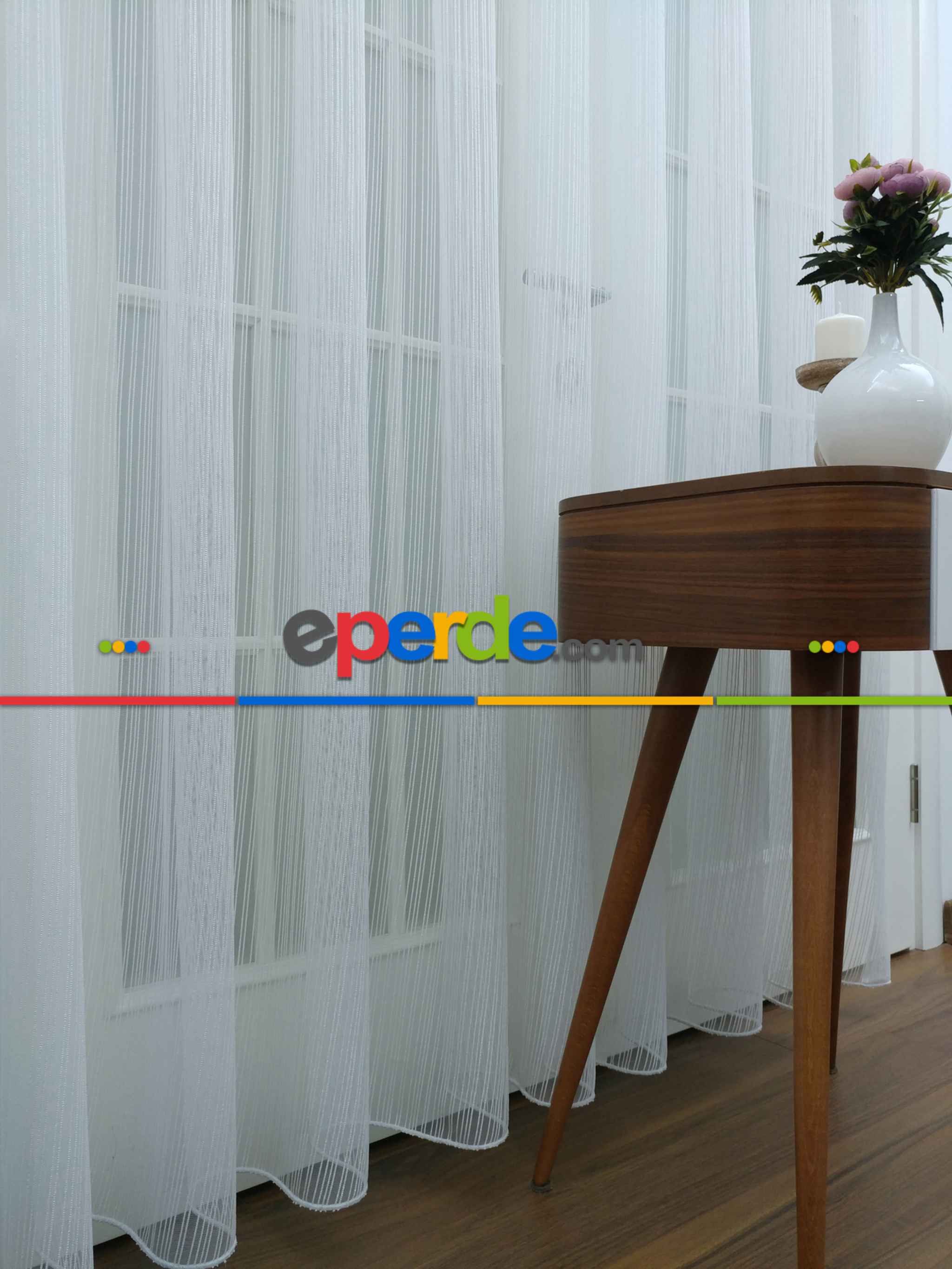 Düz Boyuna Çizgili Tül Perde- Ekru - Kurşunlu Tül » Eperde