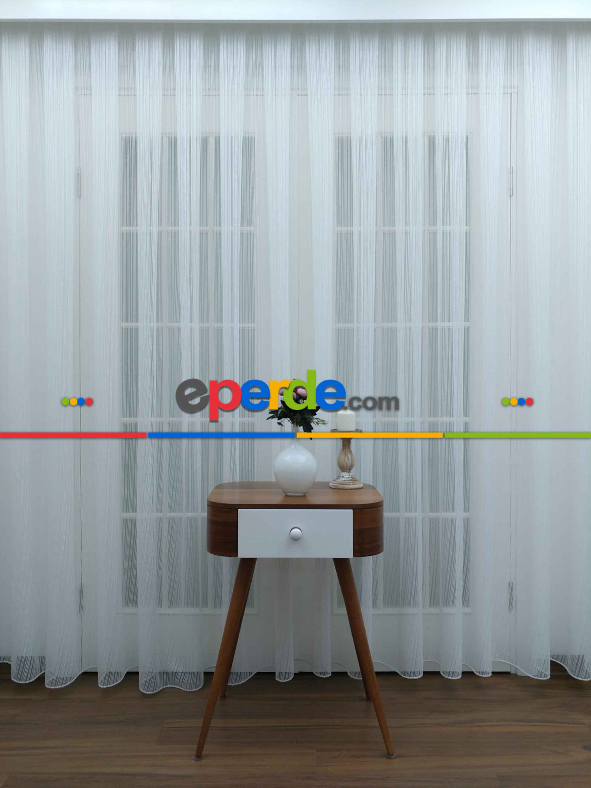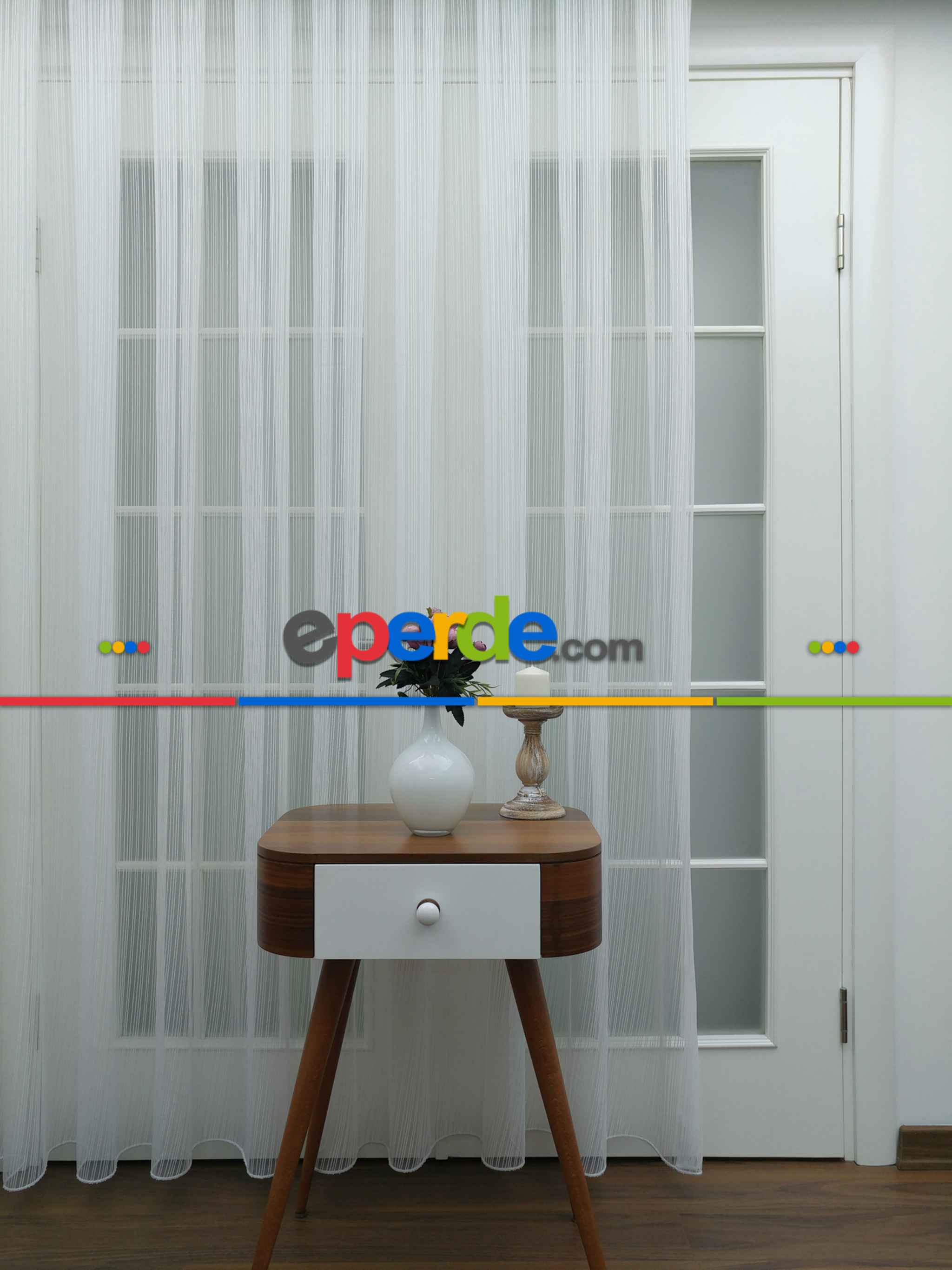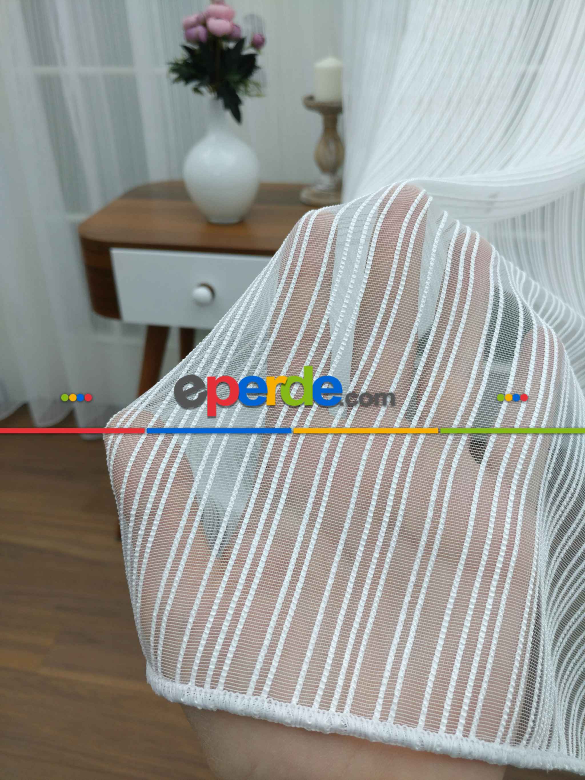 Düz Boyuna Çizgili Tül Perde- Ekru - Kurşunlu Tül » Eperde