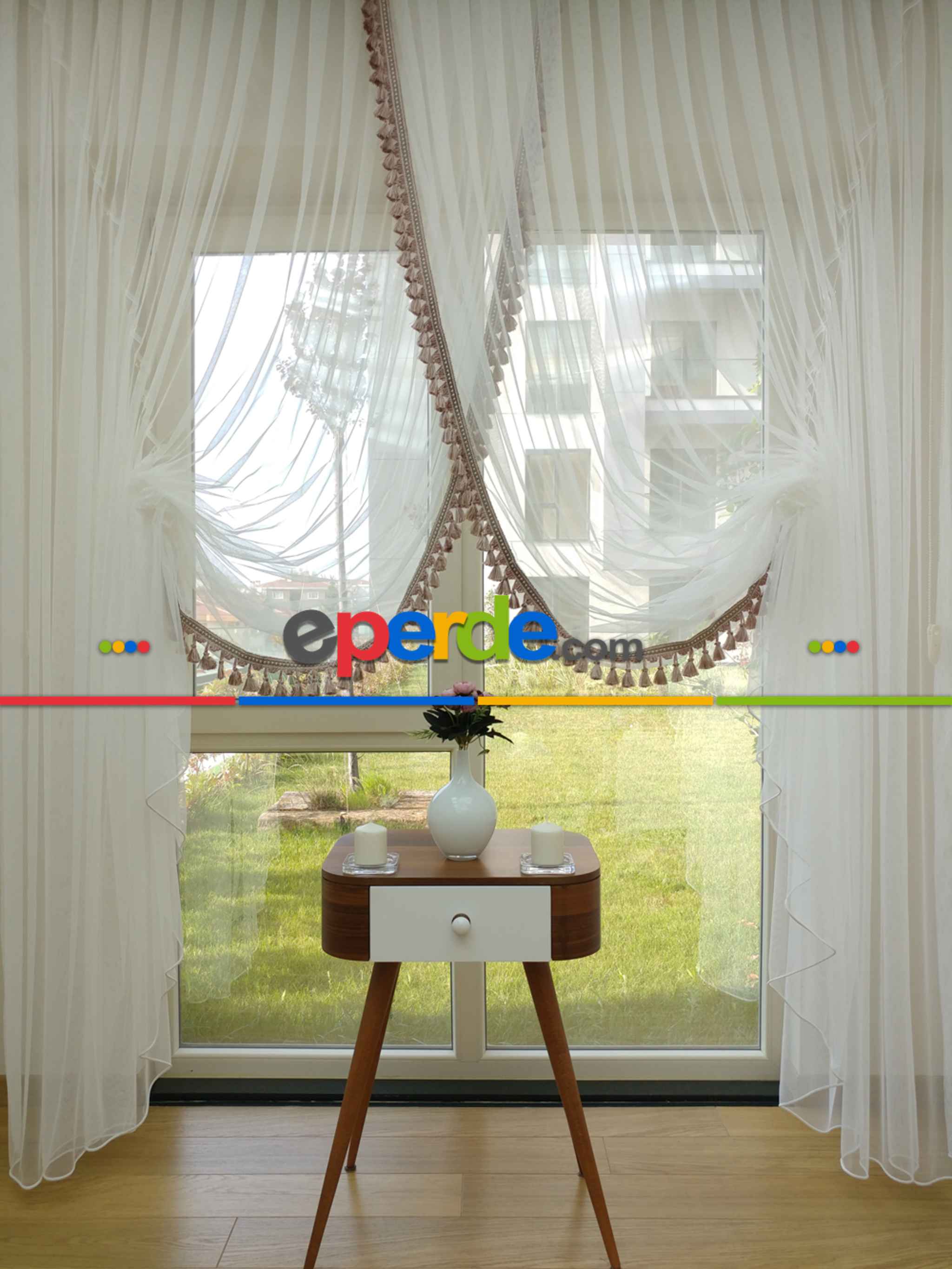 Düz Tül Perde Grek Zemin Ekru- Ekru - Kurşunlu Tül Ödeme Seçenekleri
