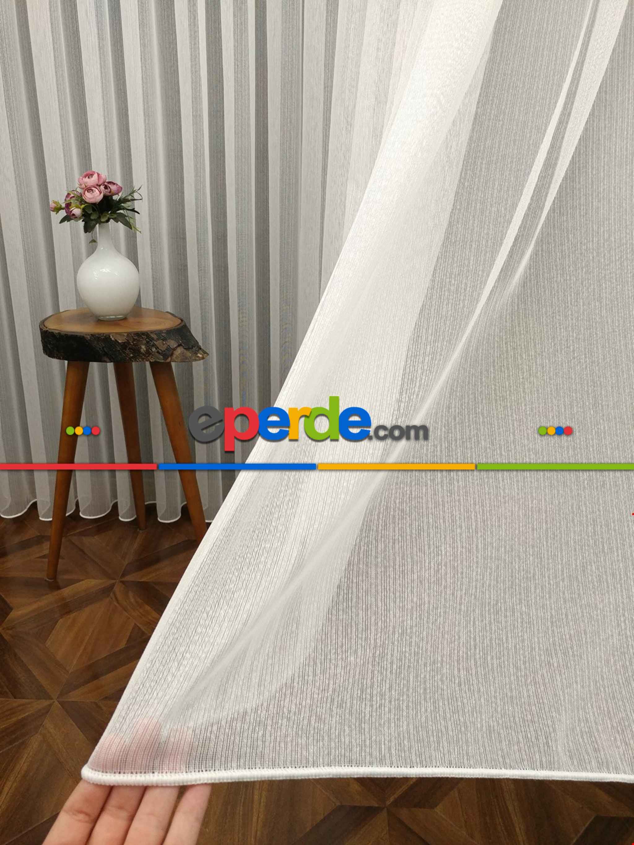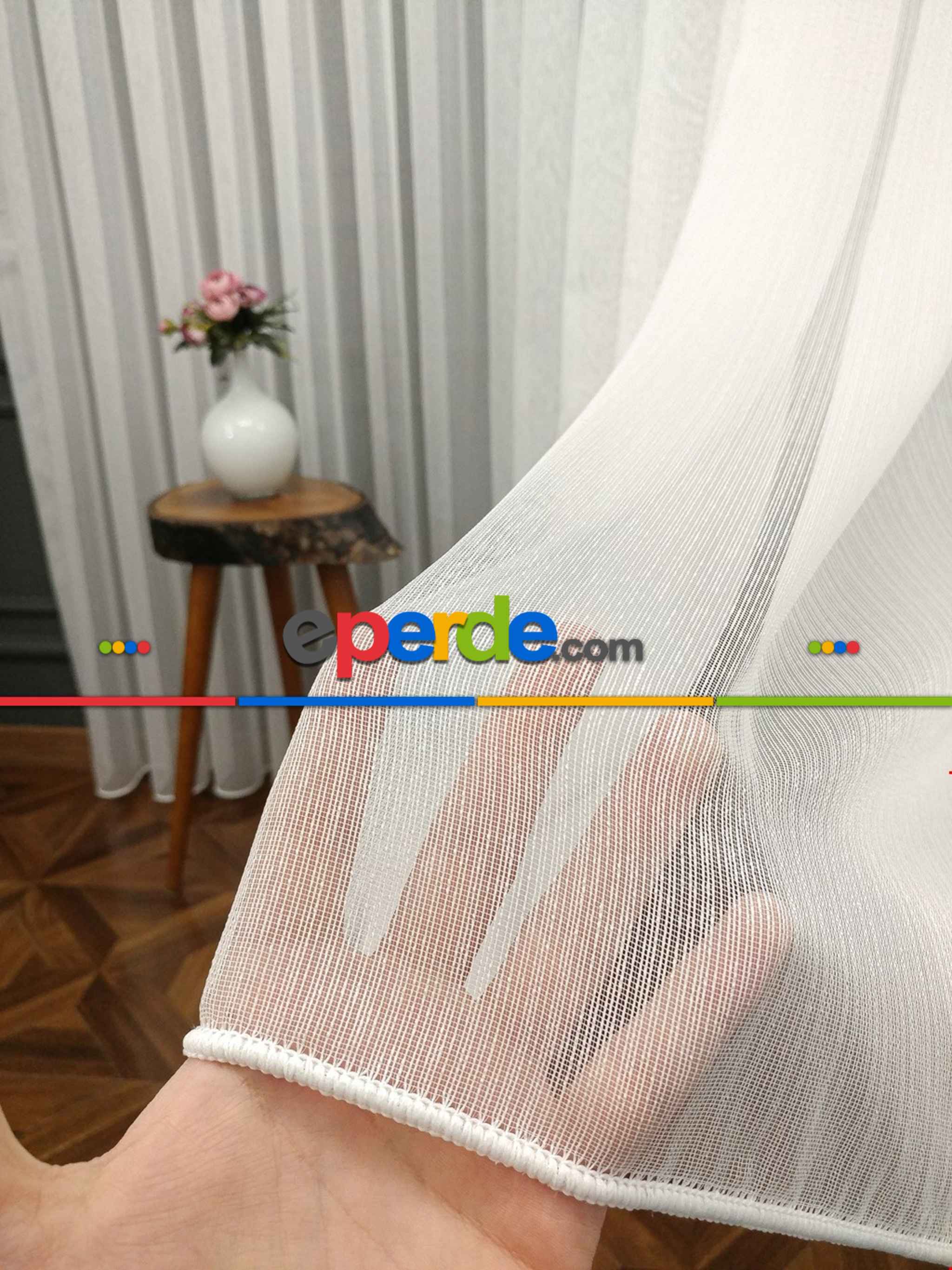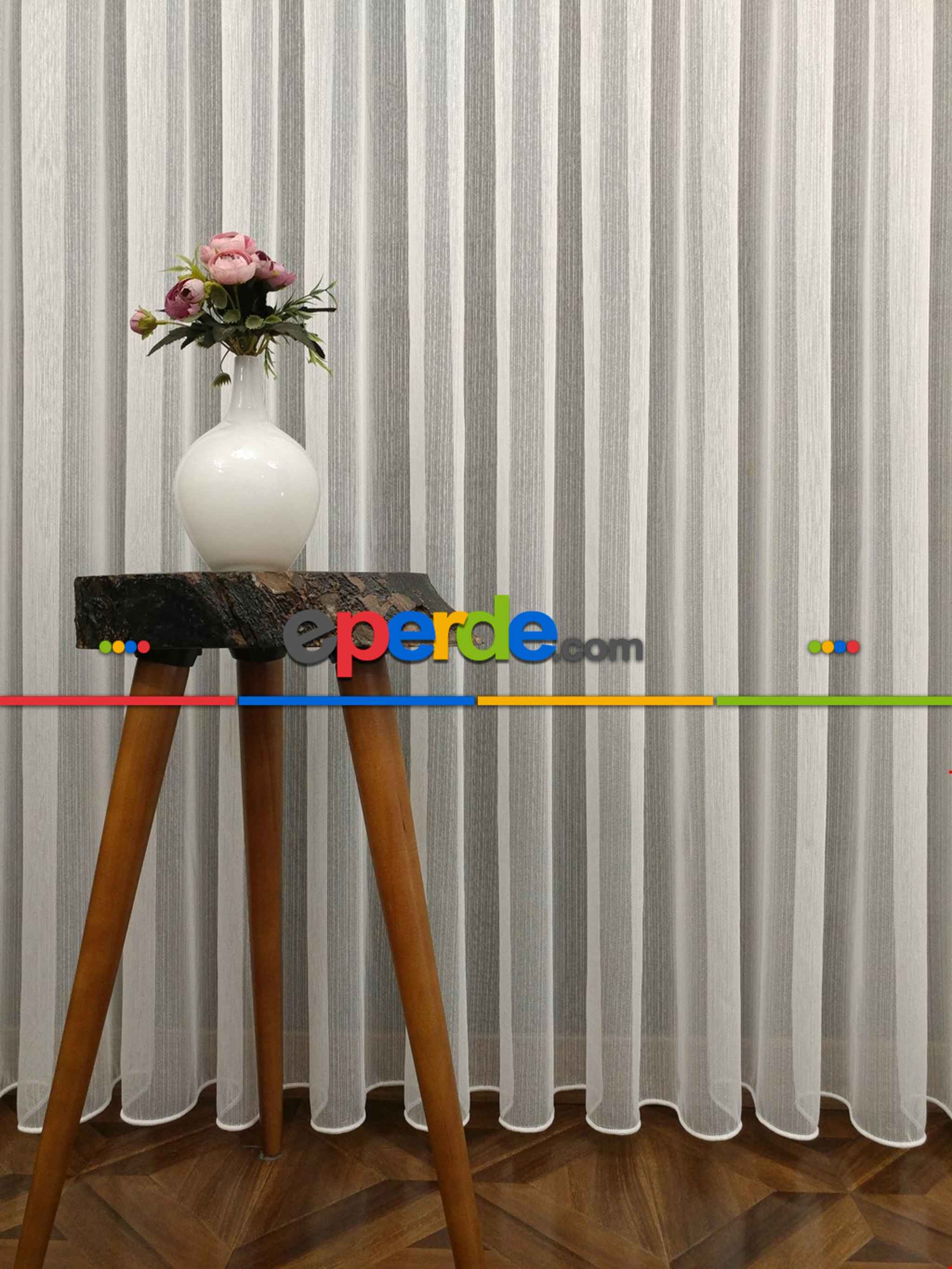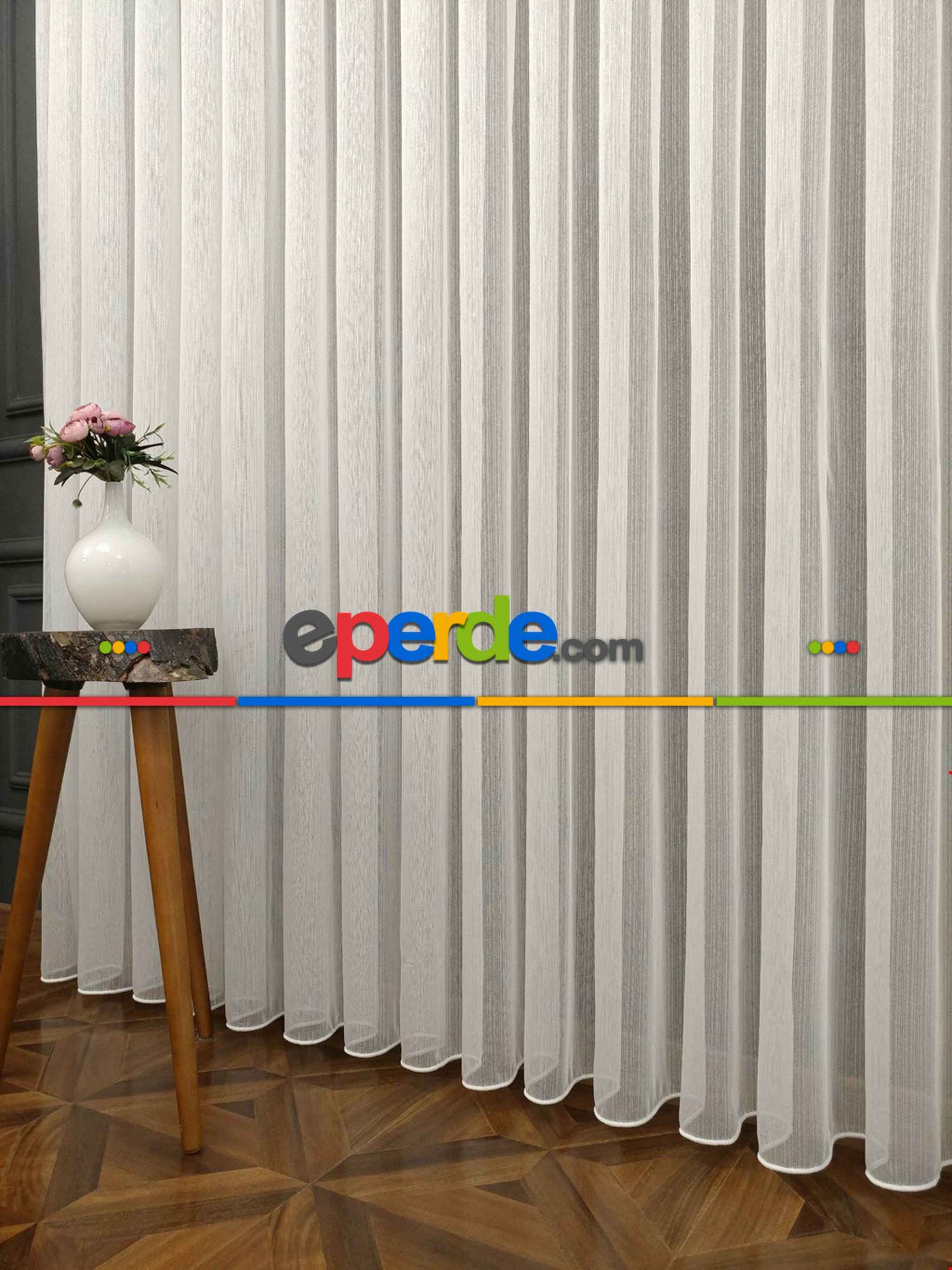 Ekru Boydan Çizgili Düz Armür Tül Perde - Ütü İstemez » Eperde