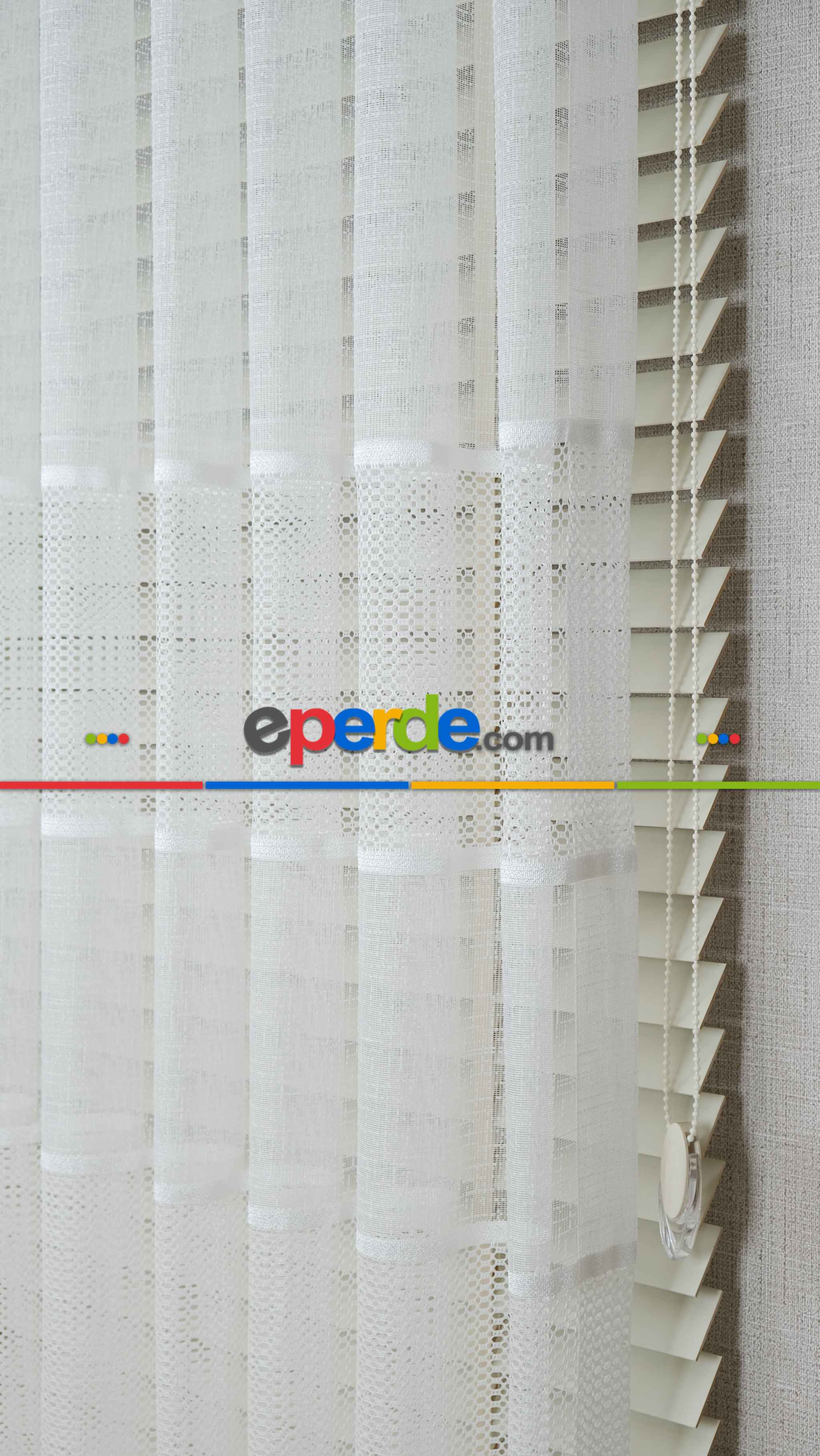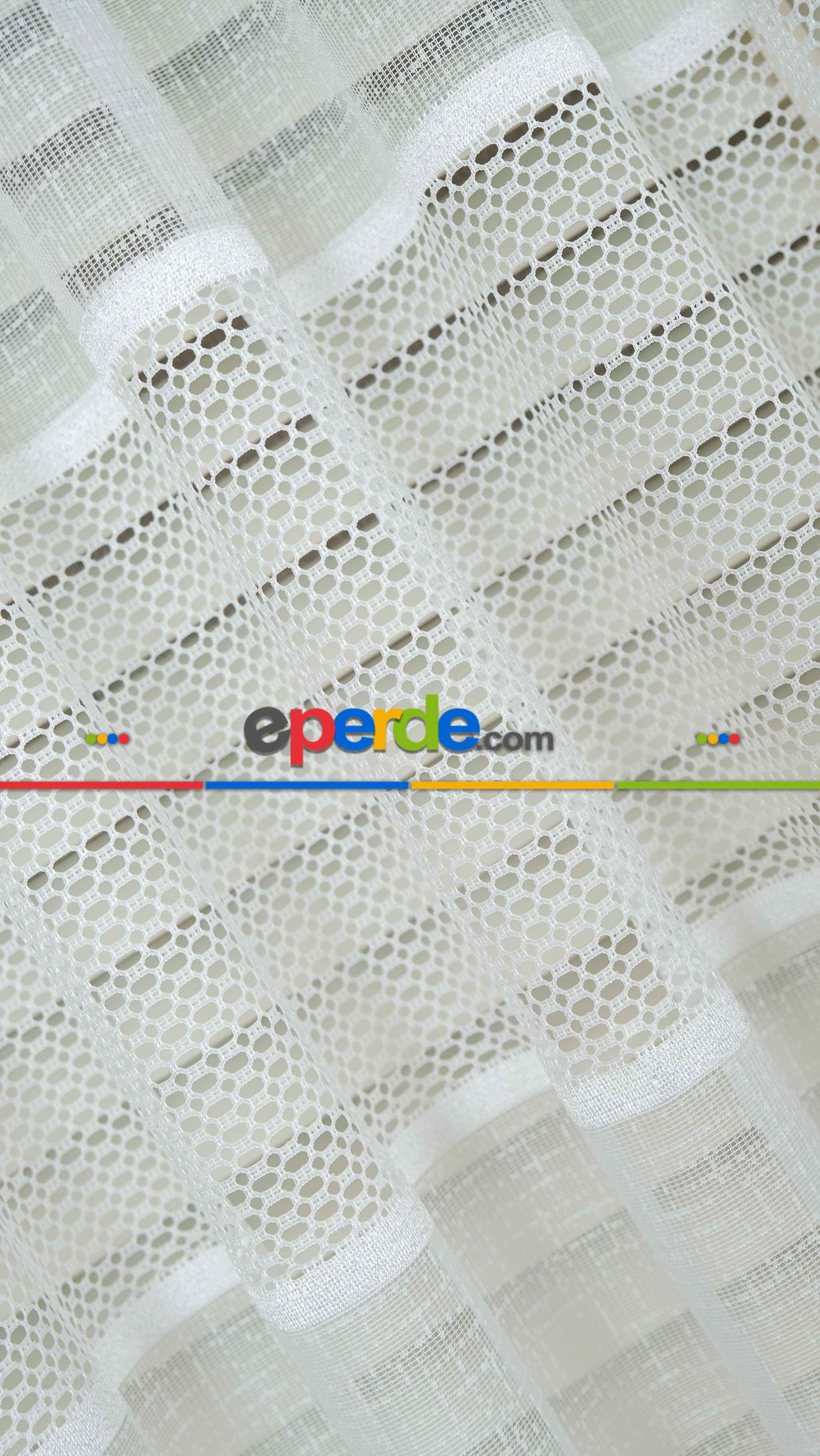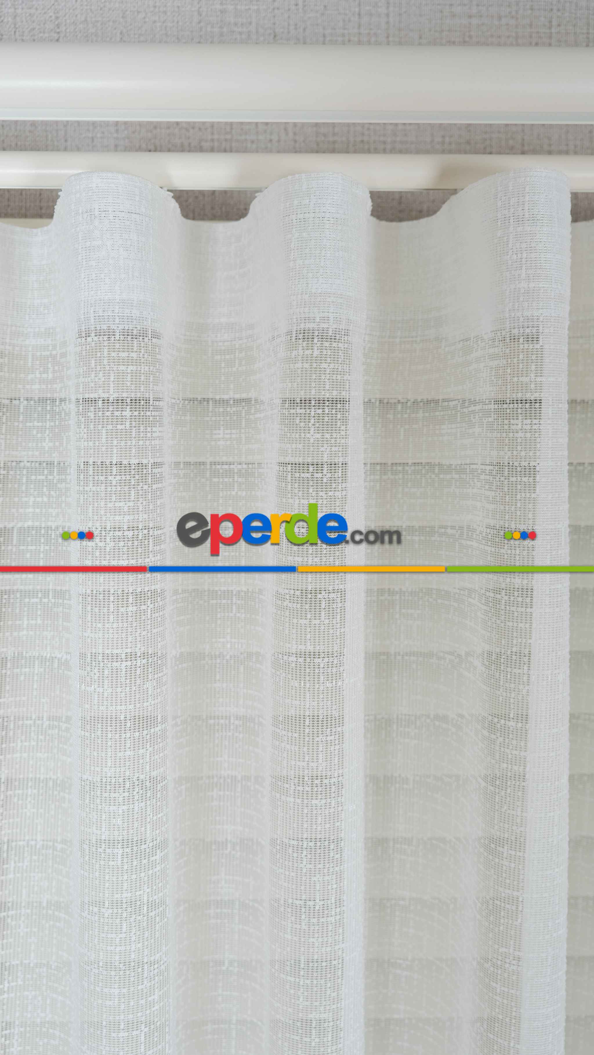 Ekru Çizgili Bantlı Keten Şantuk Tül Perde, Ağır Gramajlı Premium Seri » Eperde