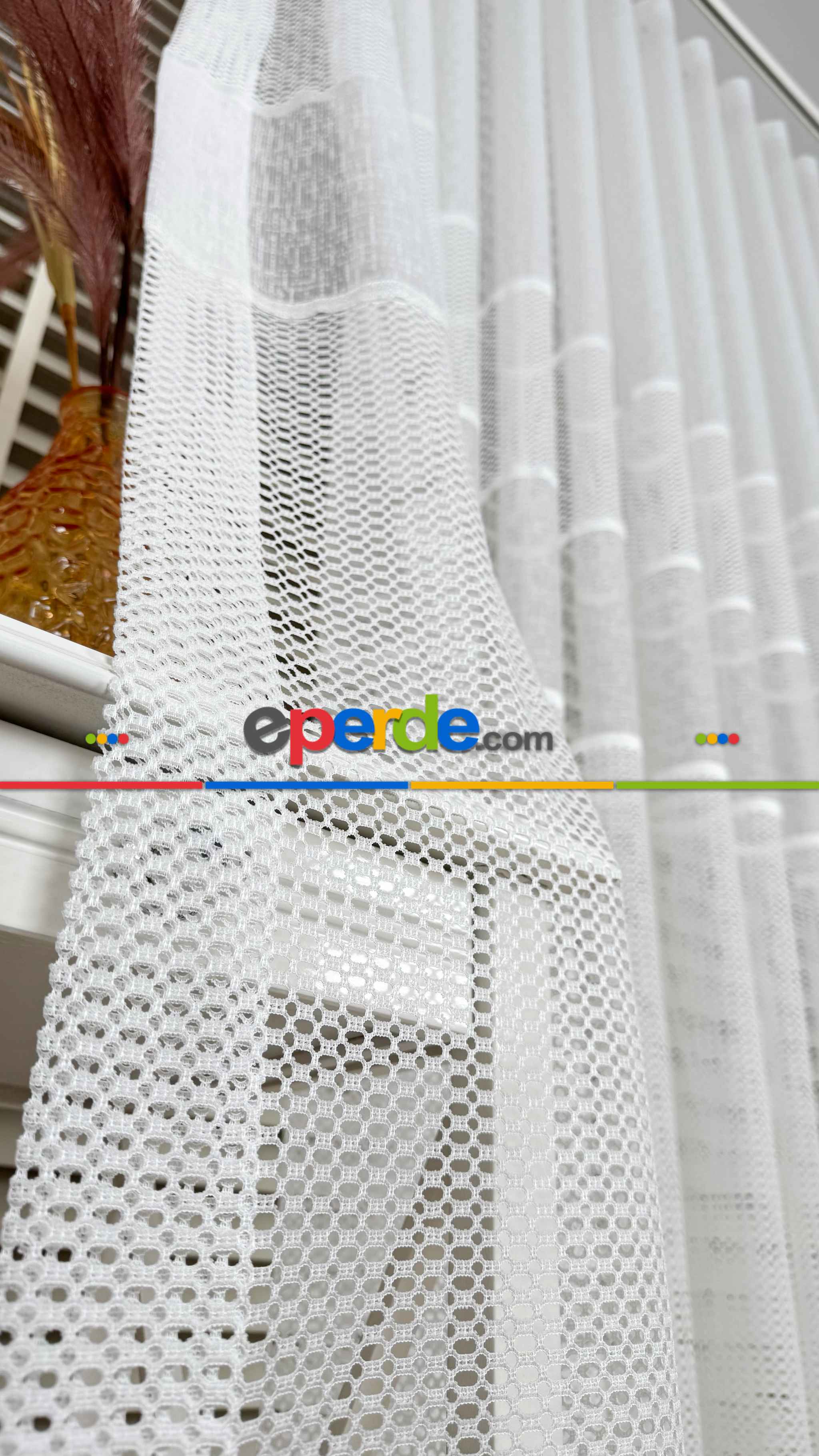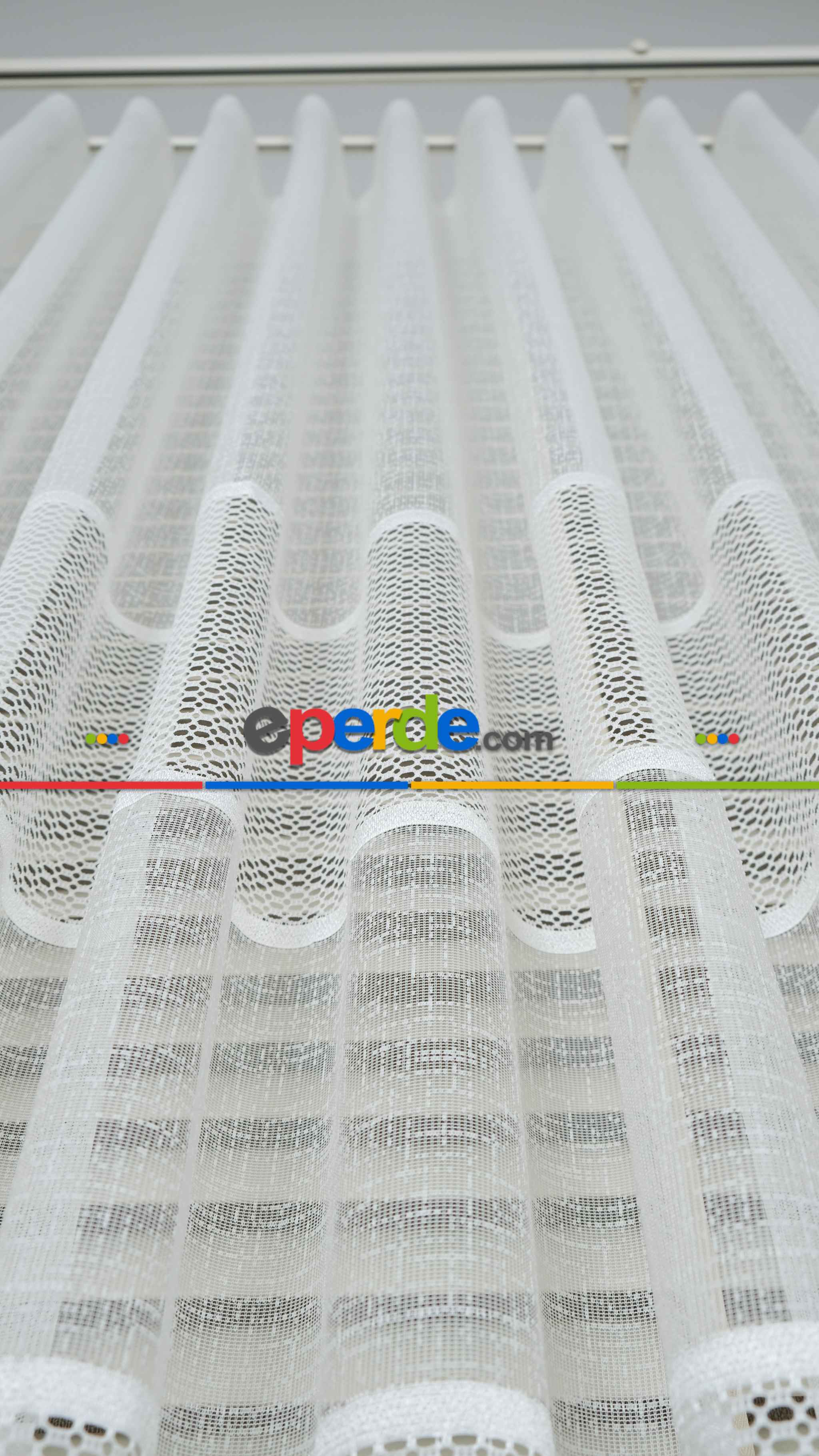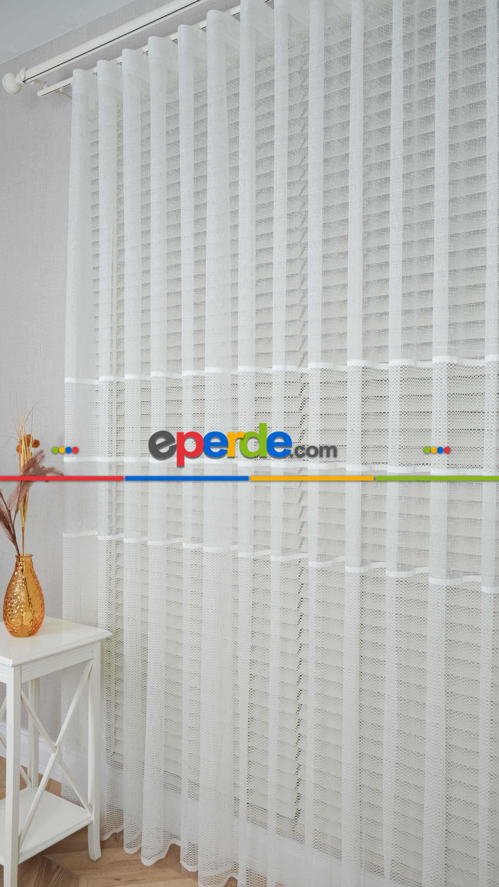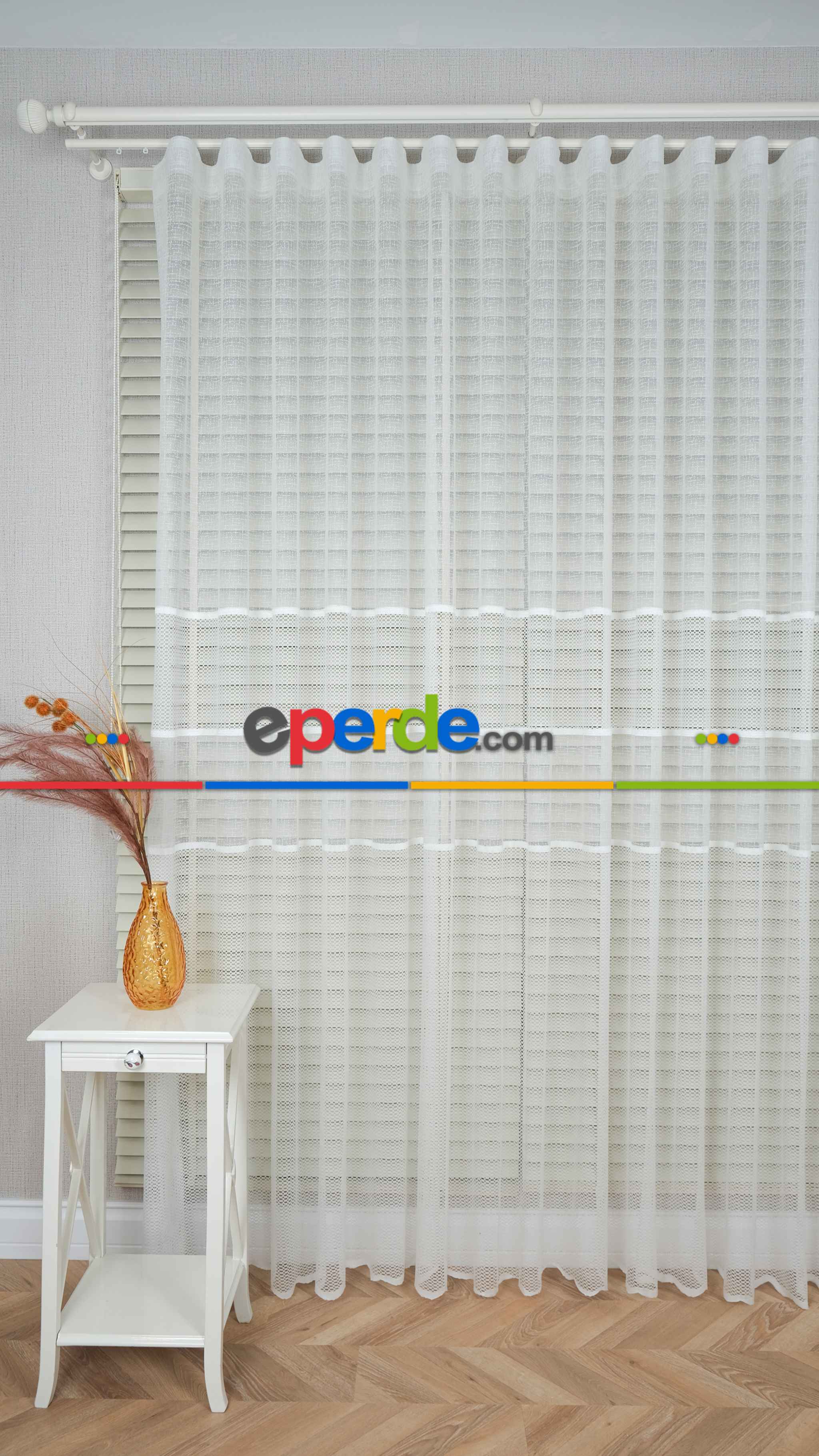 Ekru Çizgili Bantlı Keten Şantuk Tül Perde, Ağır Gramajlı Premium Seri » Eperde