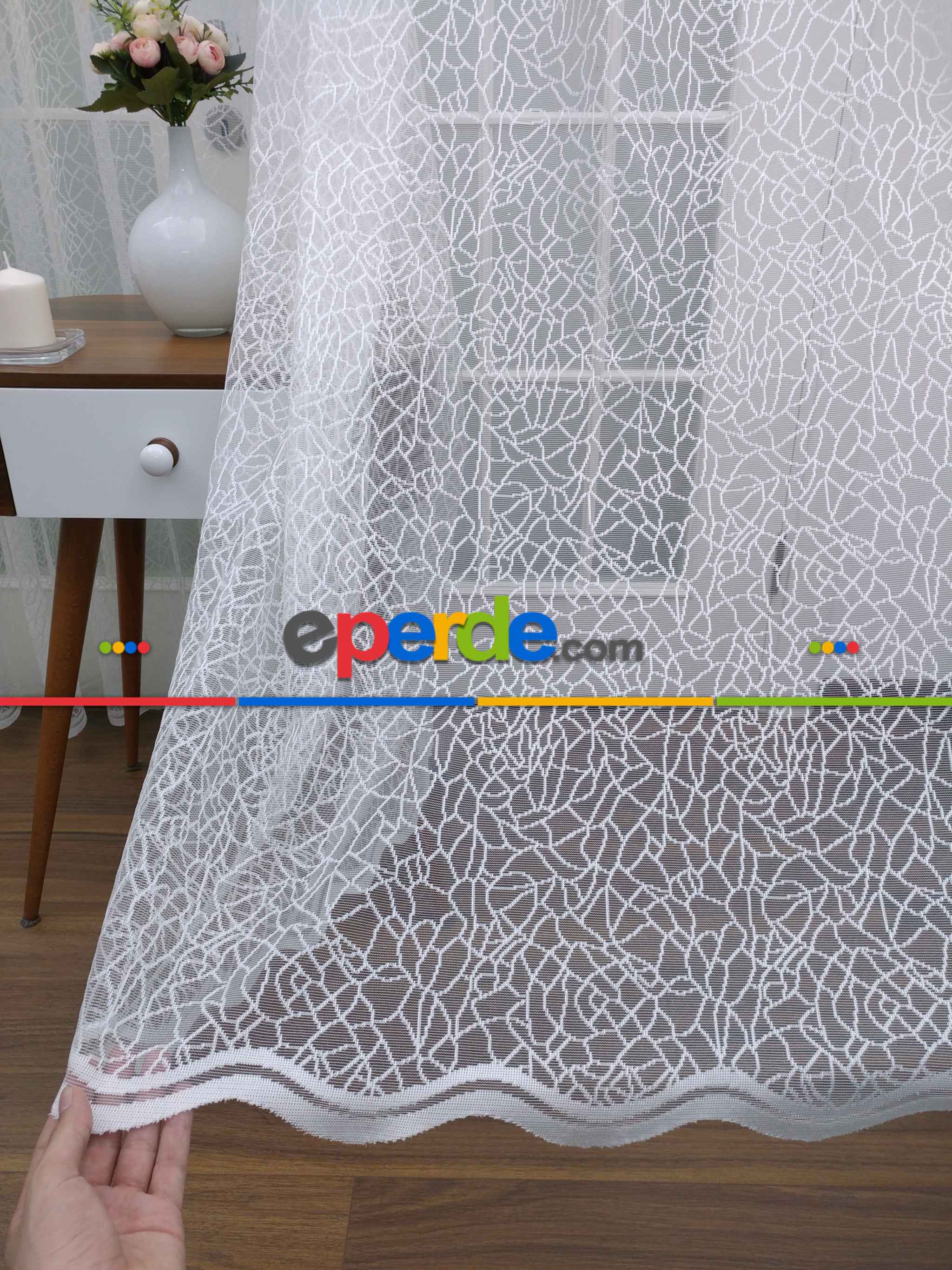 Ekru Desenli Fransız Danteli Tül Perde (geniş En 280cm)- Ekru