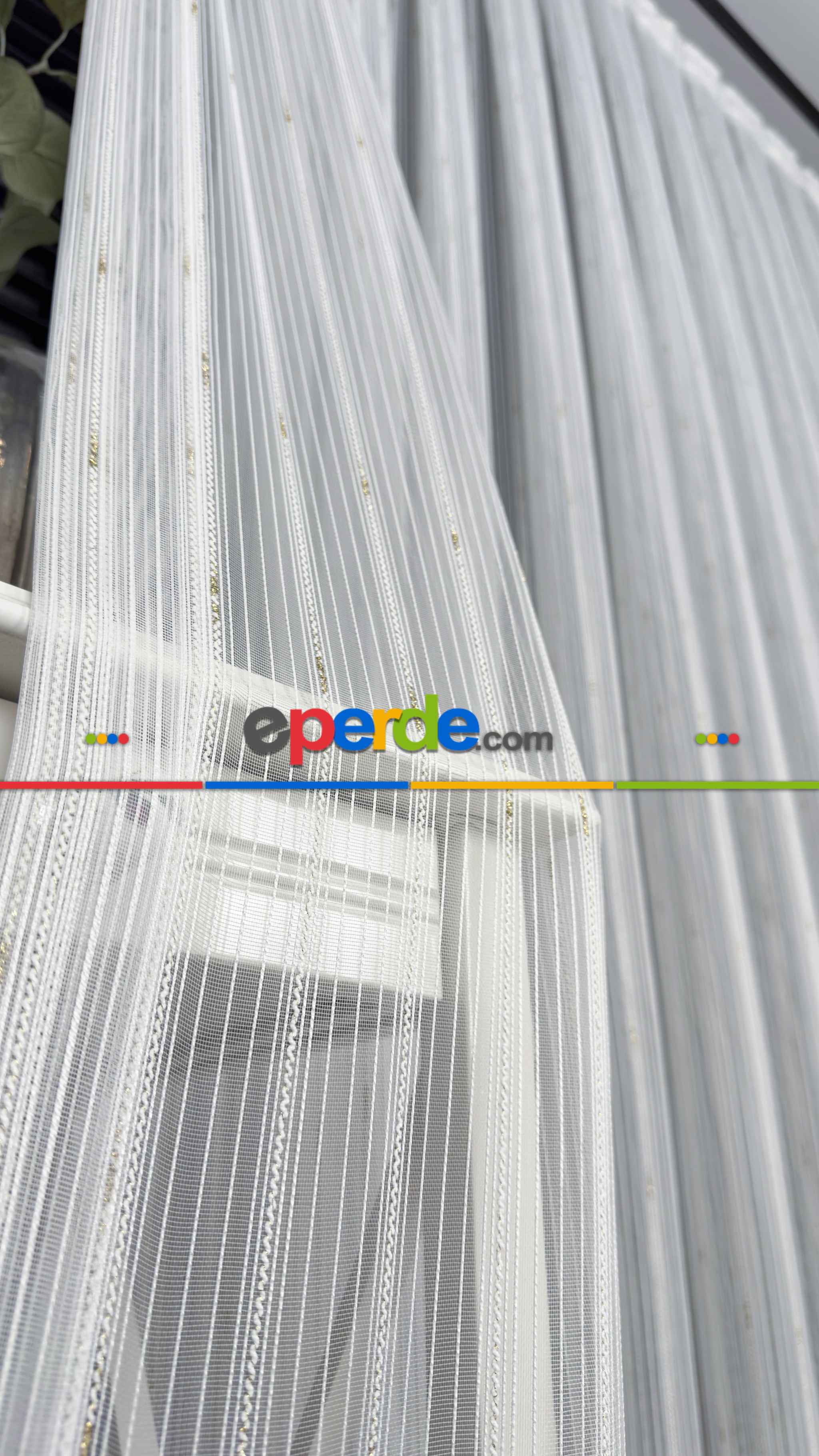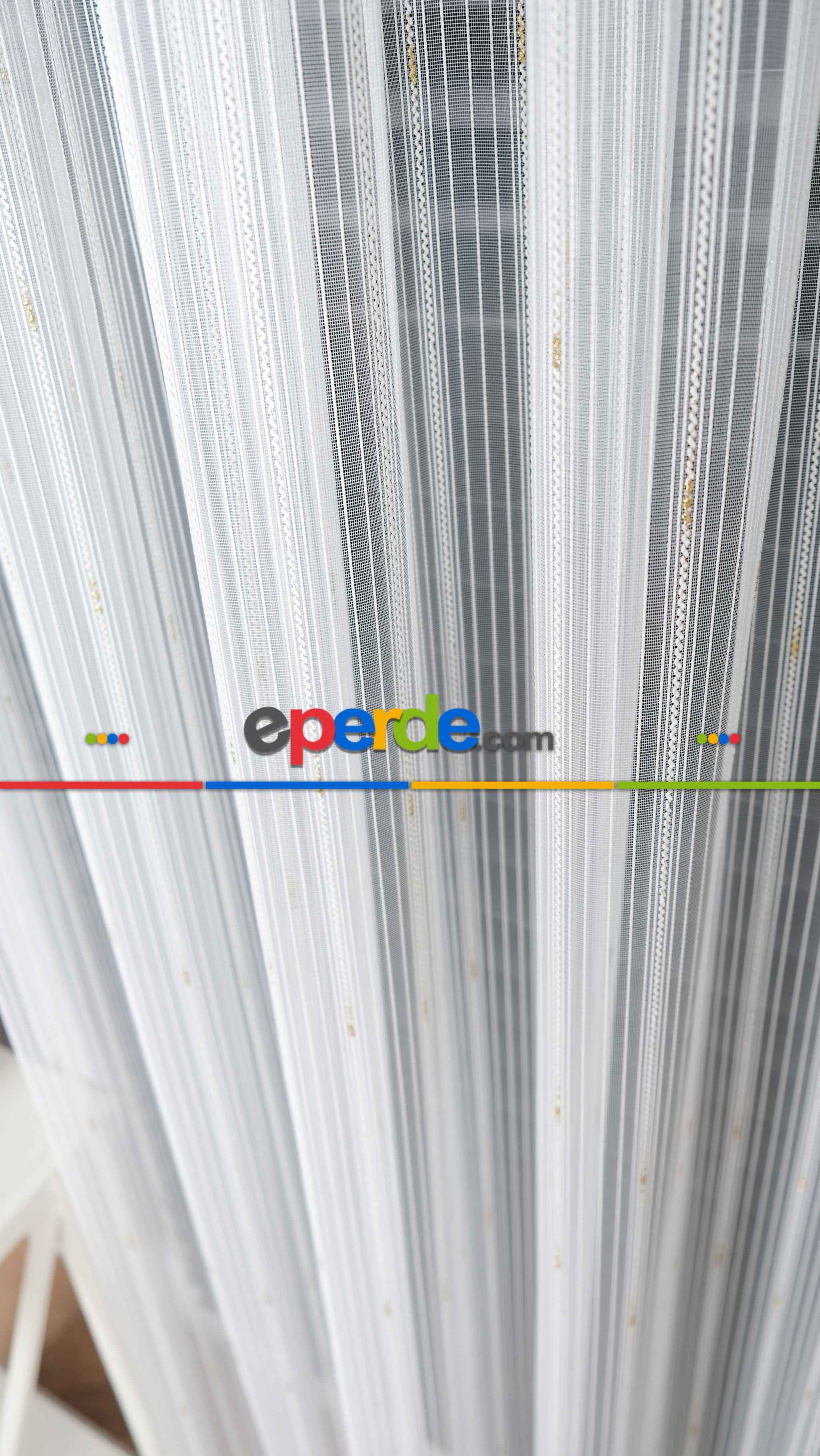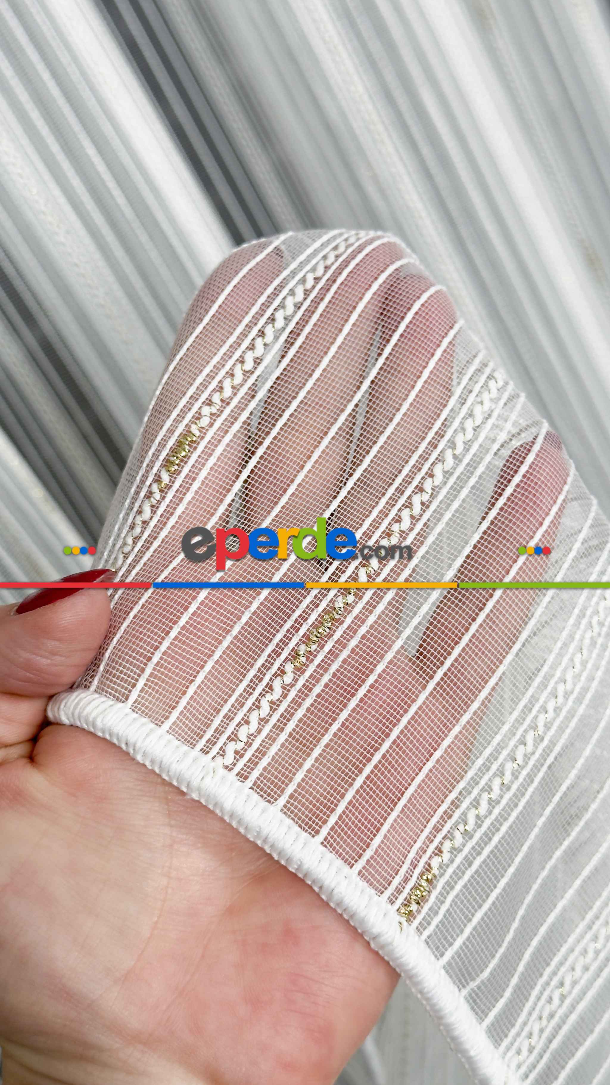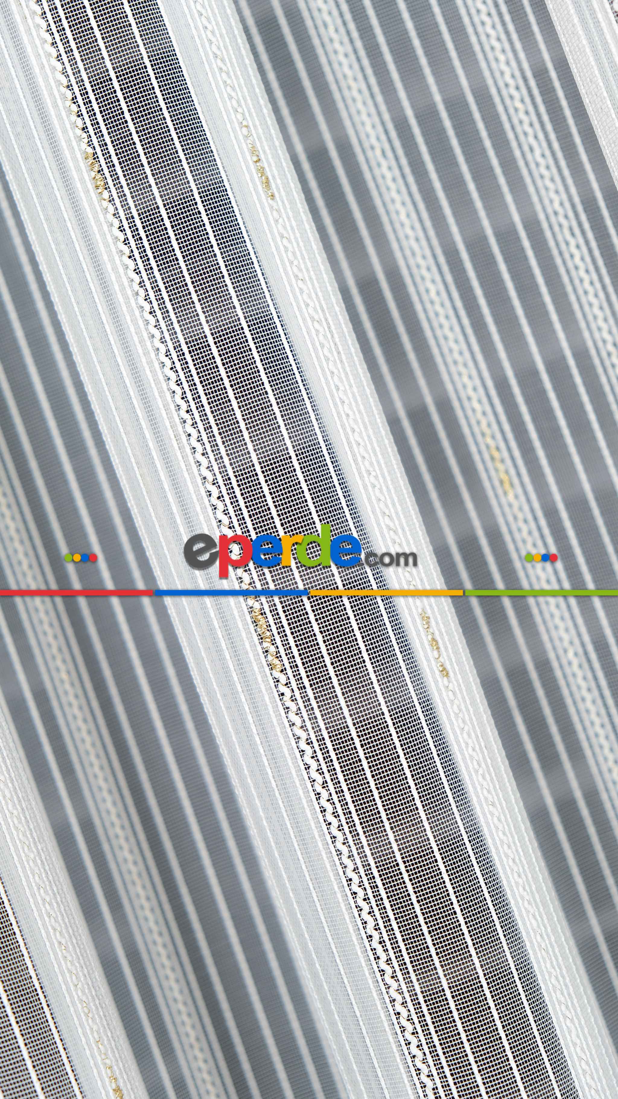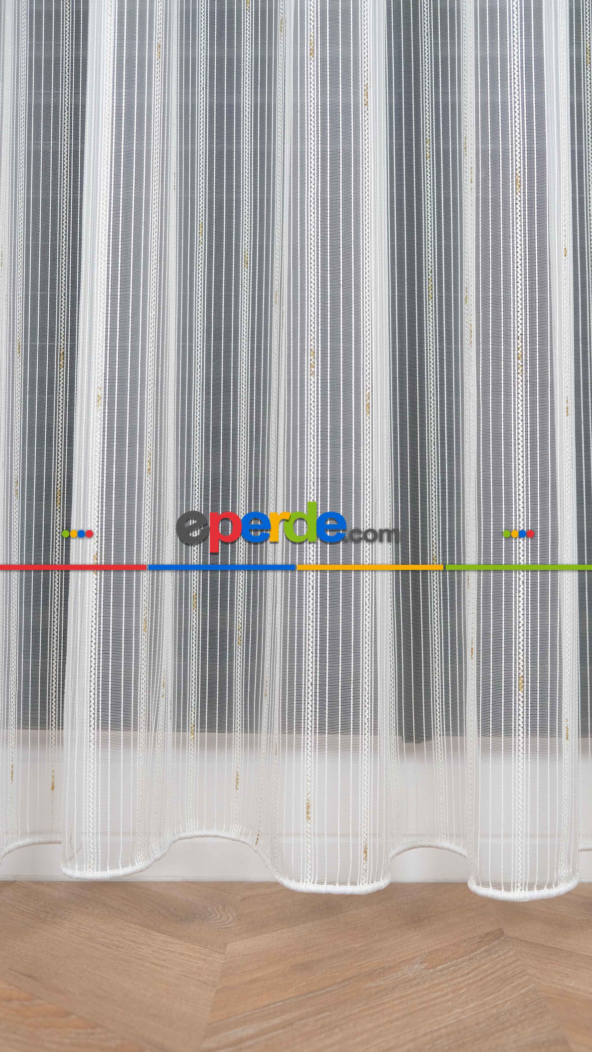 Ekru Zincir Çizgilli Altın Simli Tül Perde Ürün Açıklaması